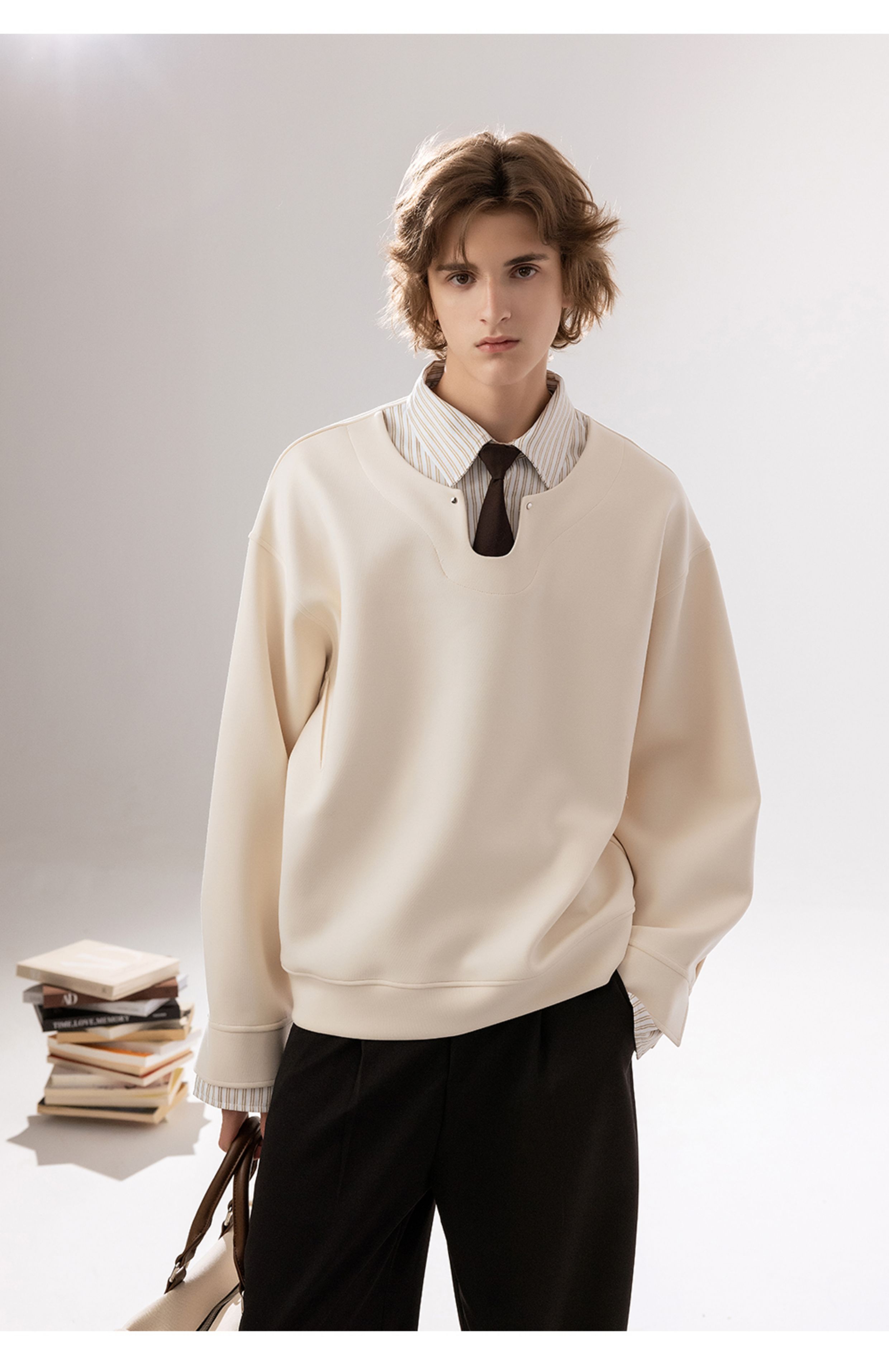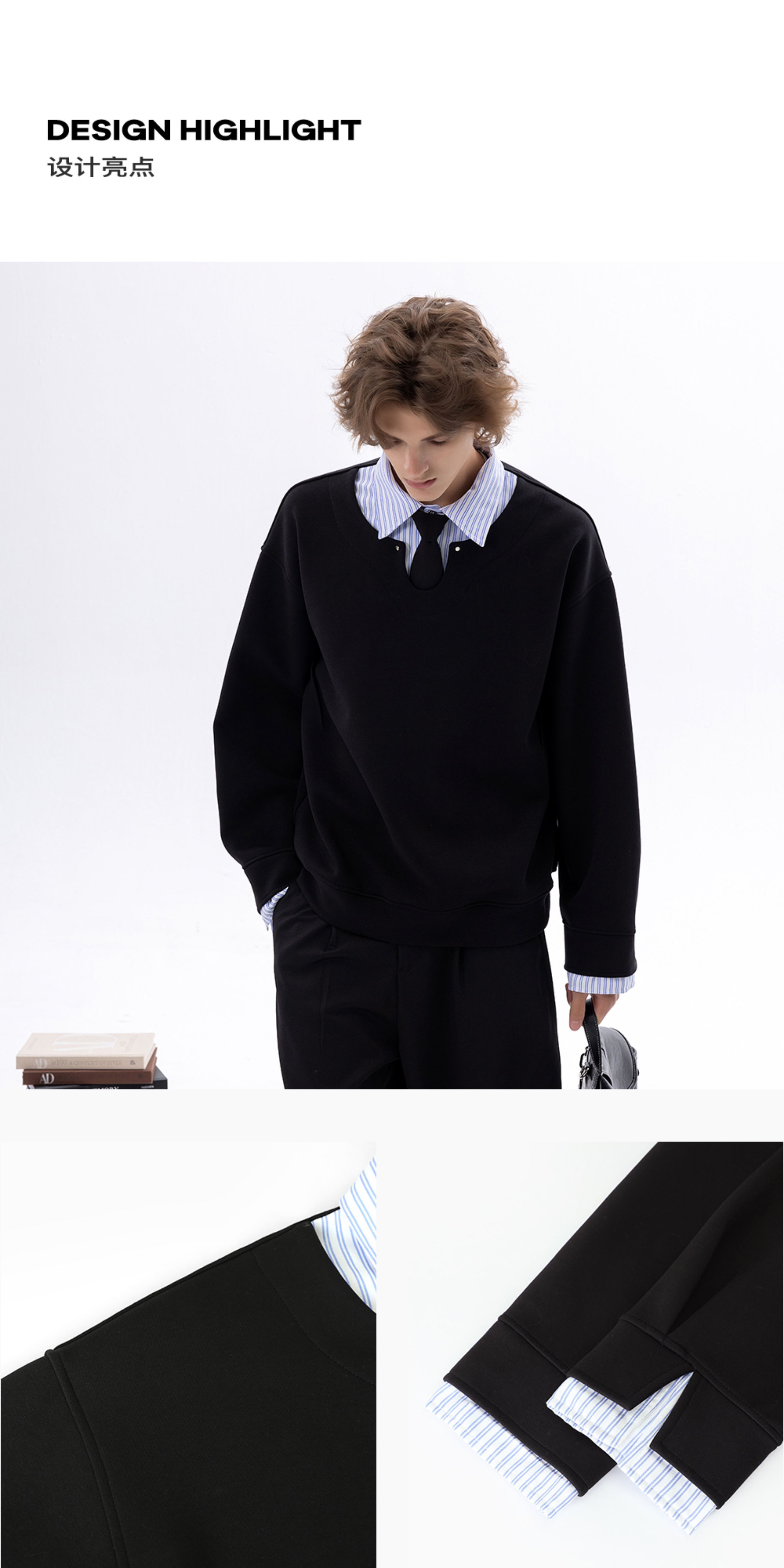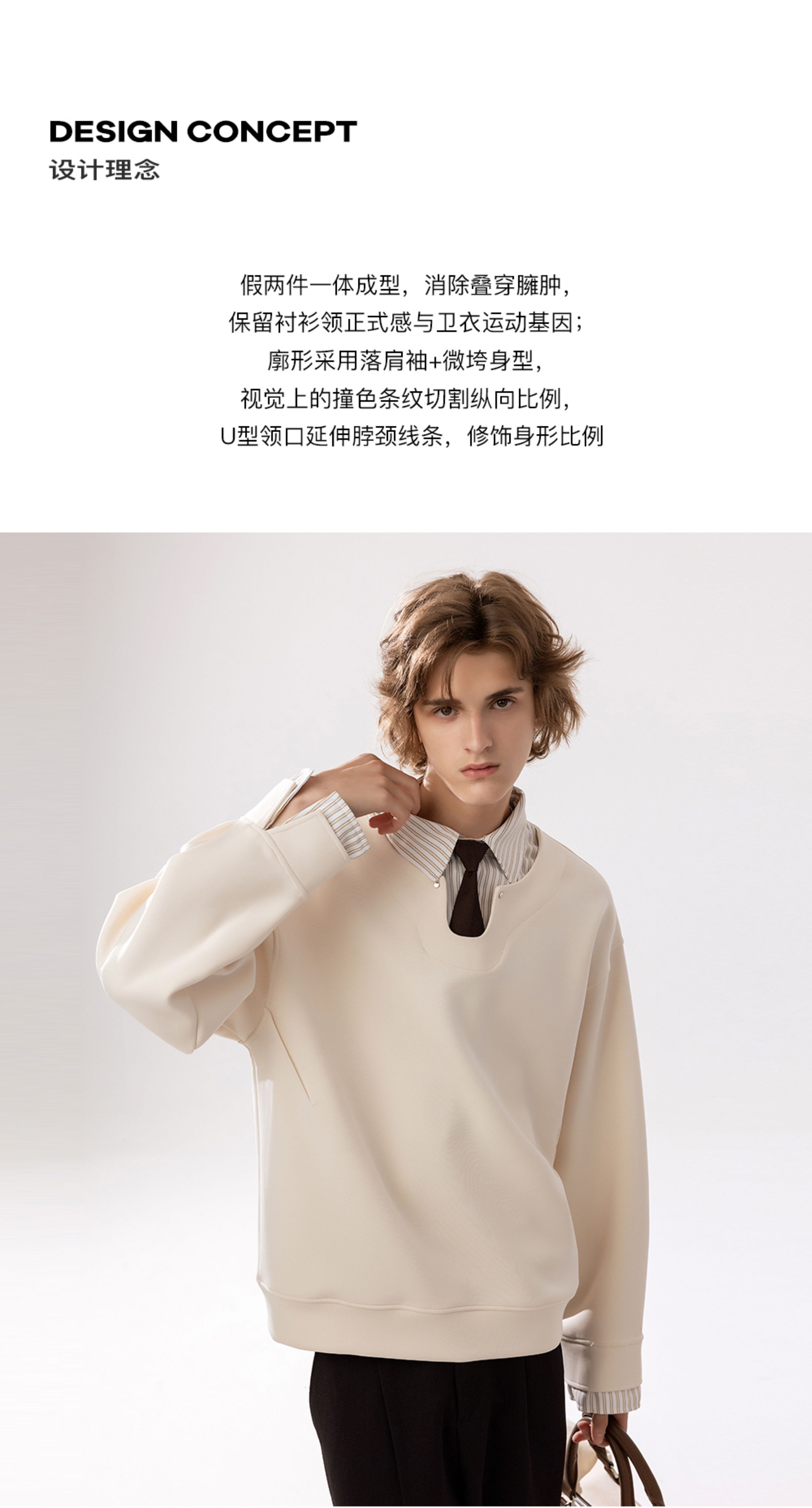 CHOR 原創美式復古假兩件襯衫領長袖衛衣男秋冬季上衣簡約高級感
