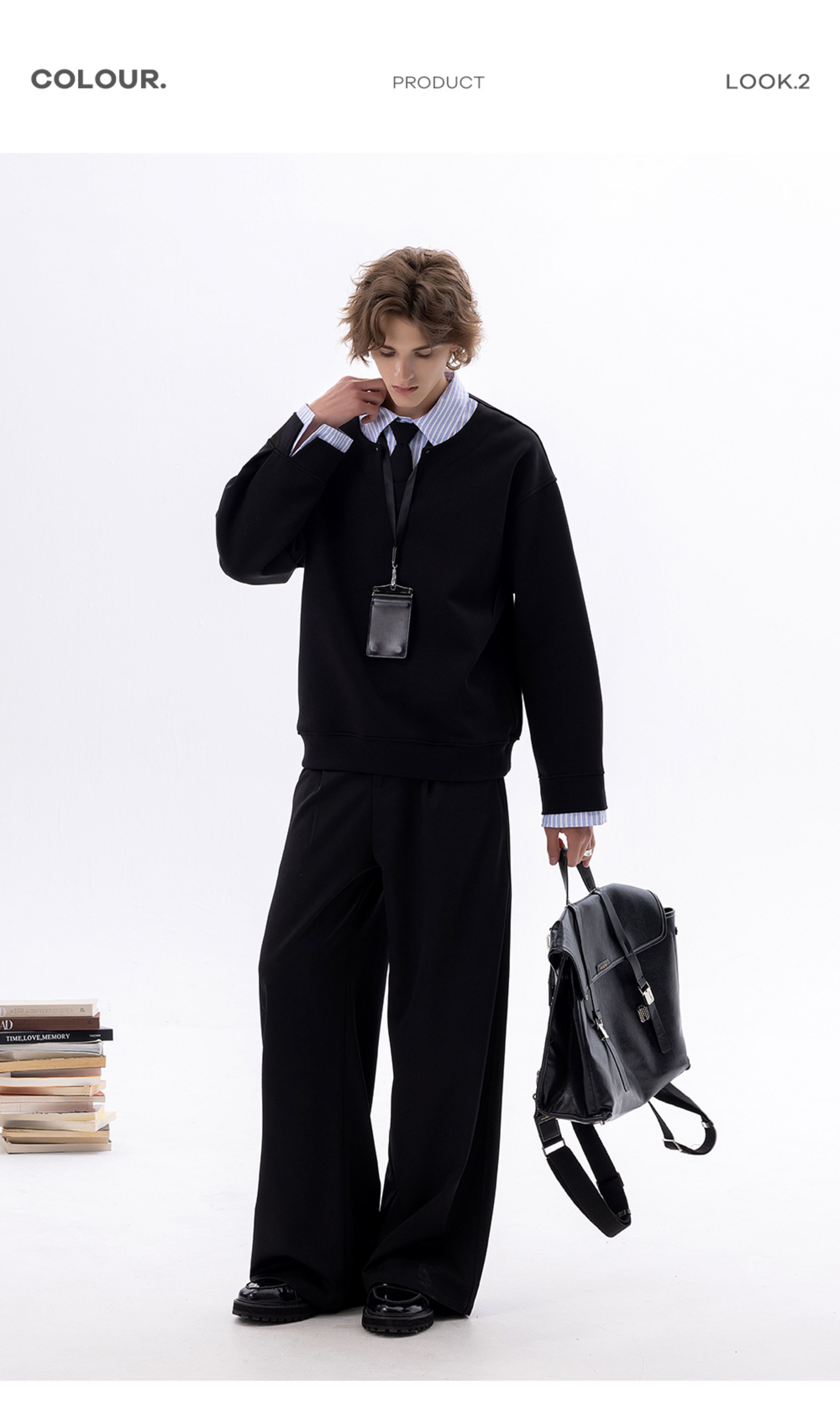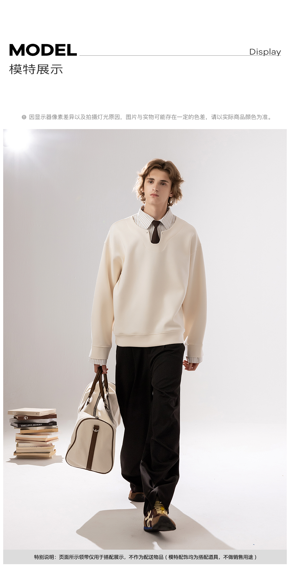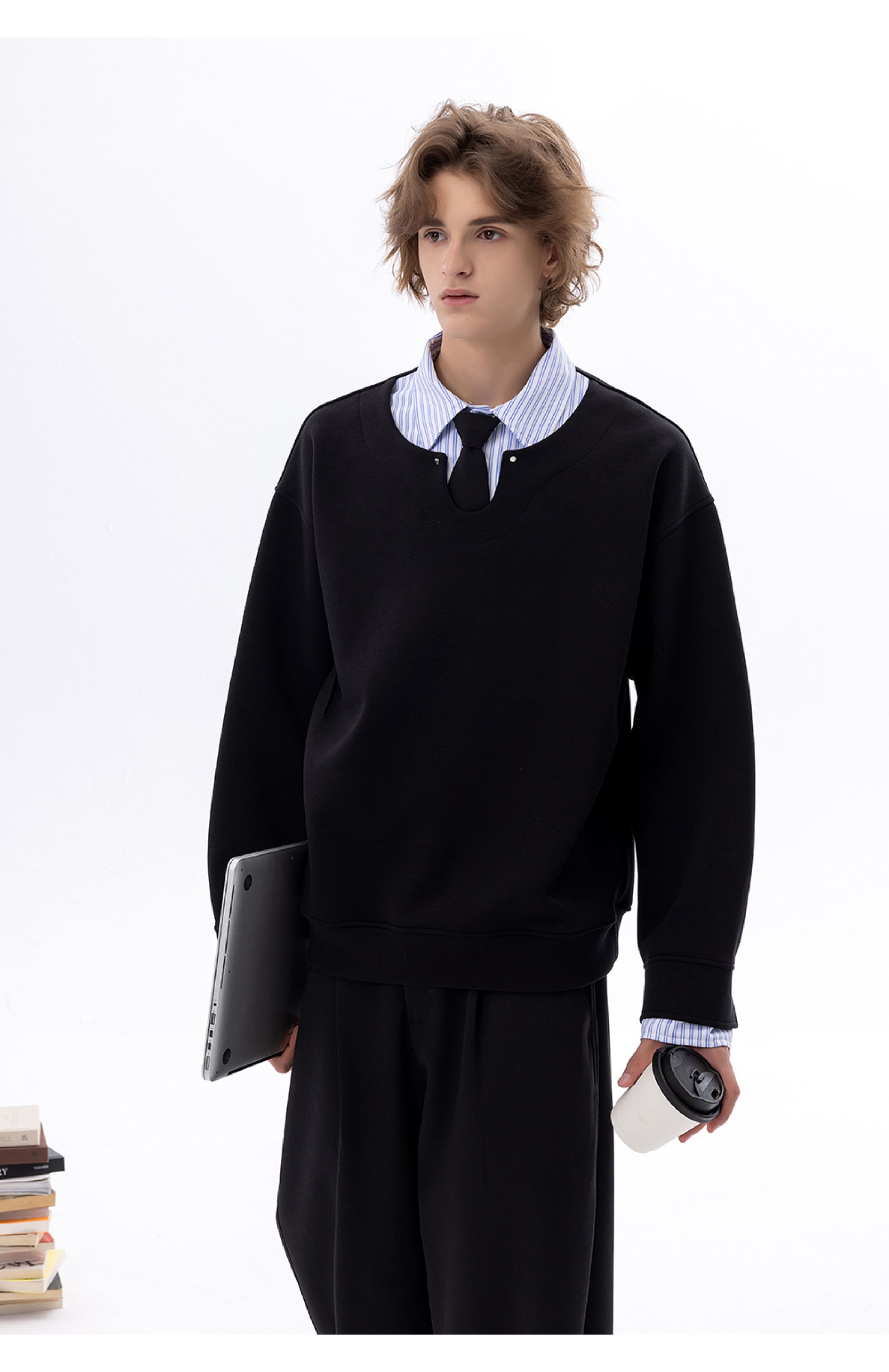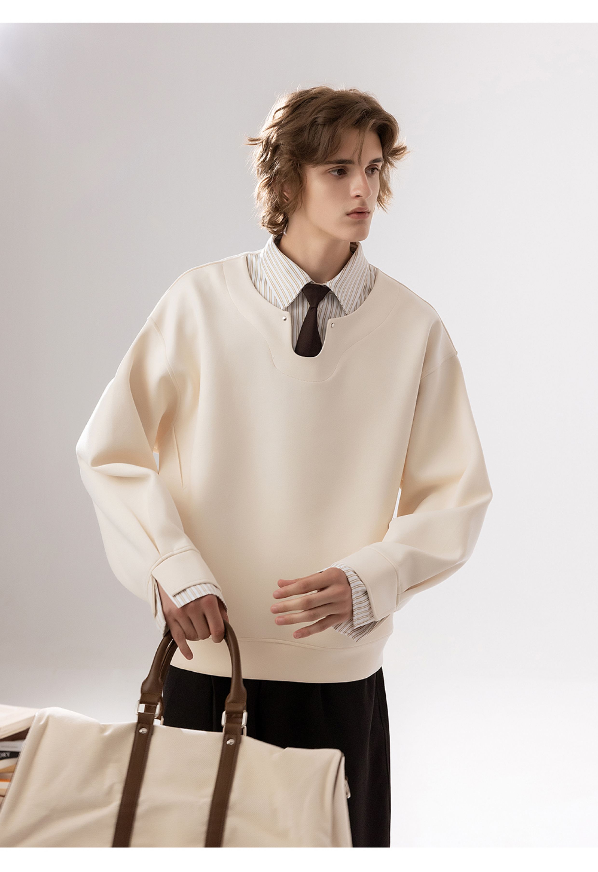 CHOR 原創美式復古假兩件襯衫領長袖衛衣男秋冬季上衣簡約高級感