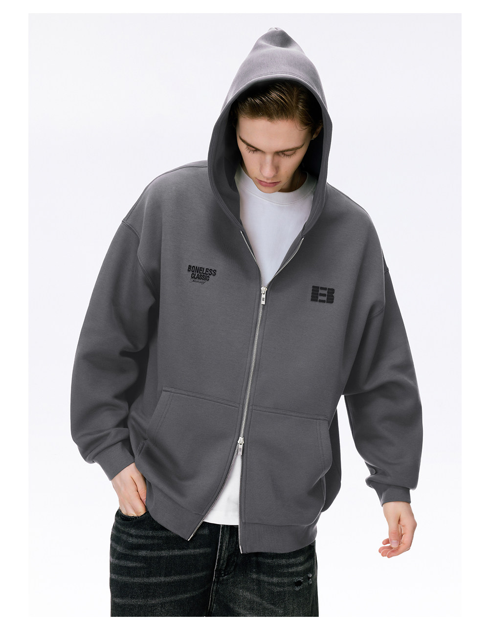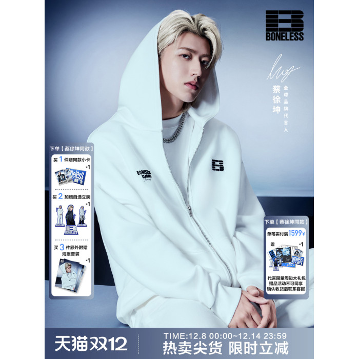 【蔡徐坤同款】BONELESS空氣層牙刷綉拉鍊衛衣寬松百搭連帽外套潮