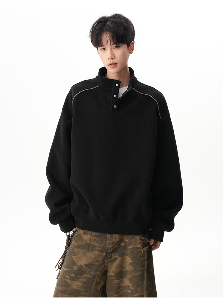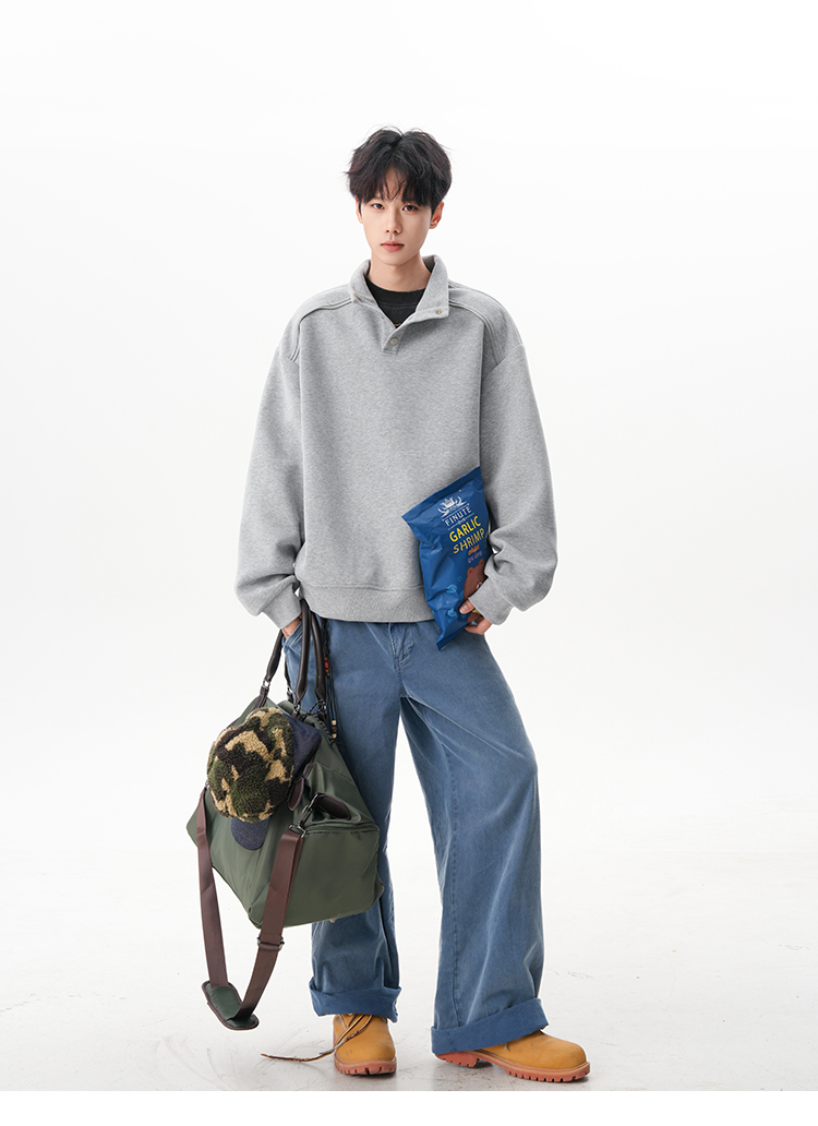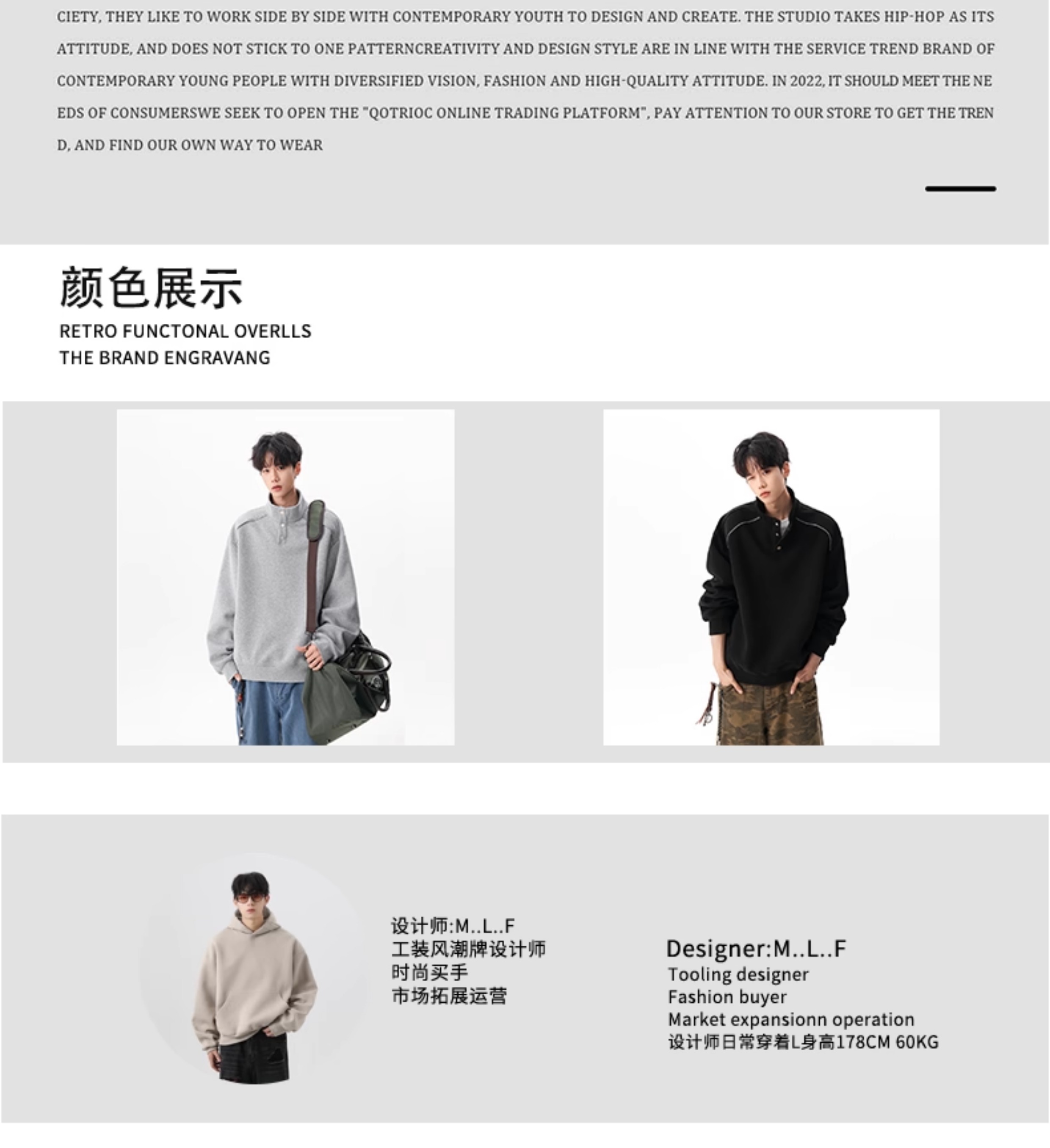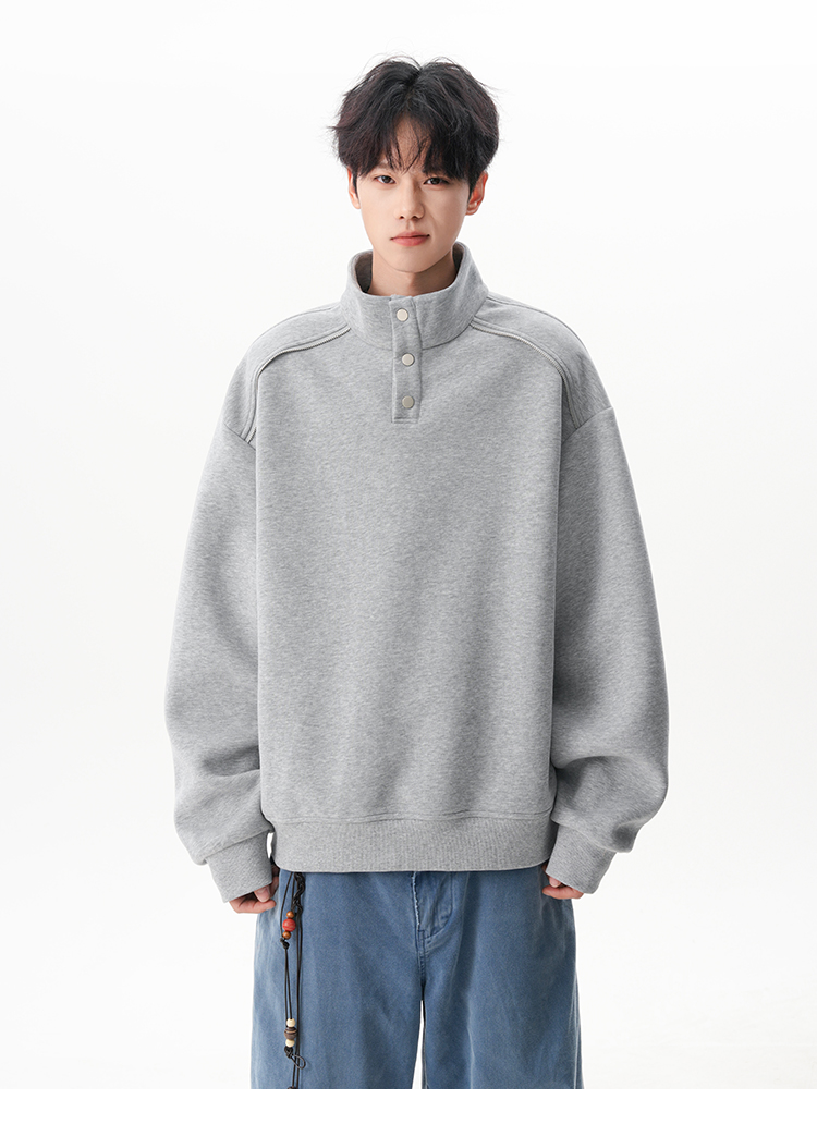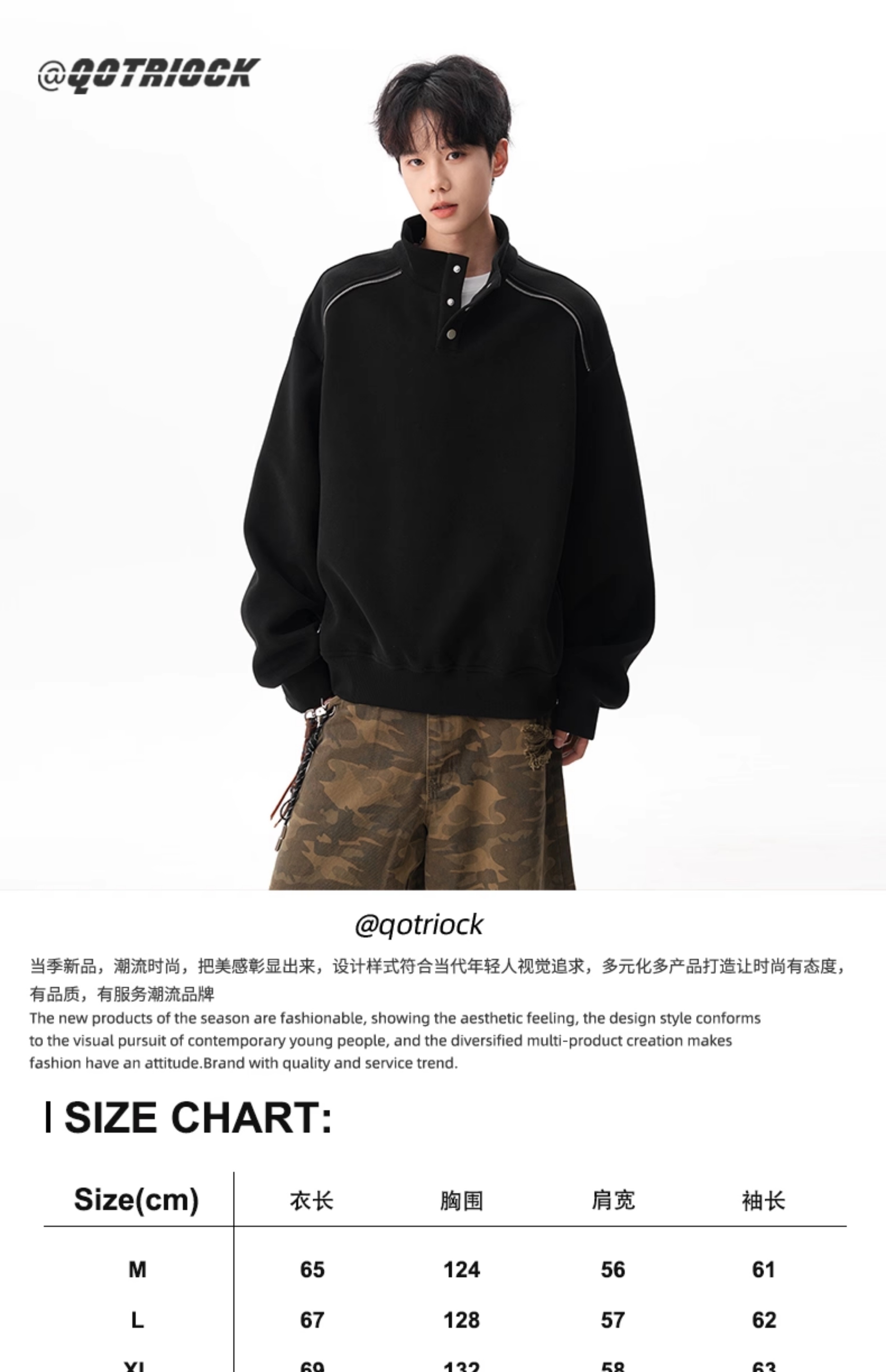 480G重磅美式休閒立領衛衣男女秋季設計感休閒套頭衫寬松運動上衣