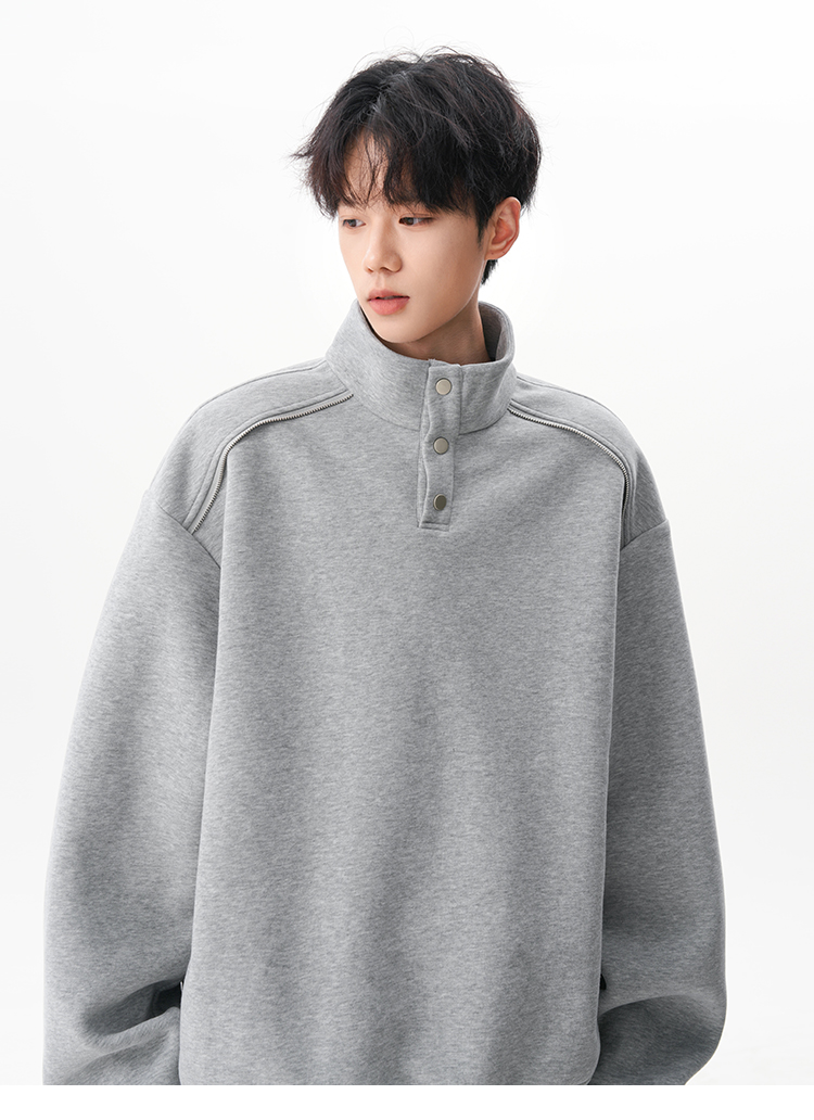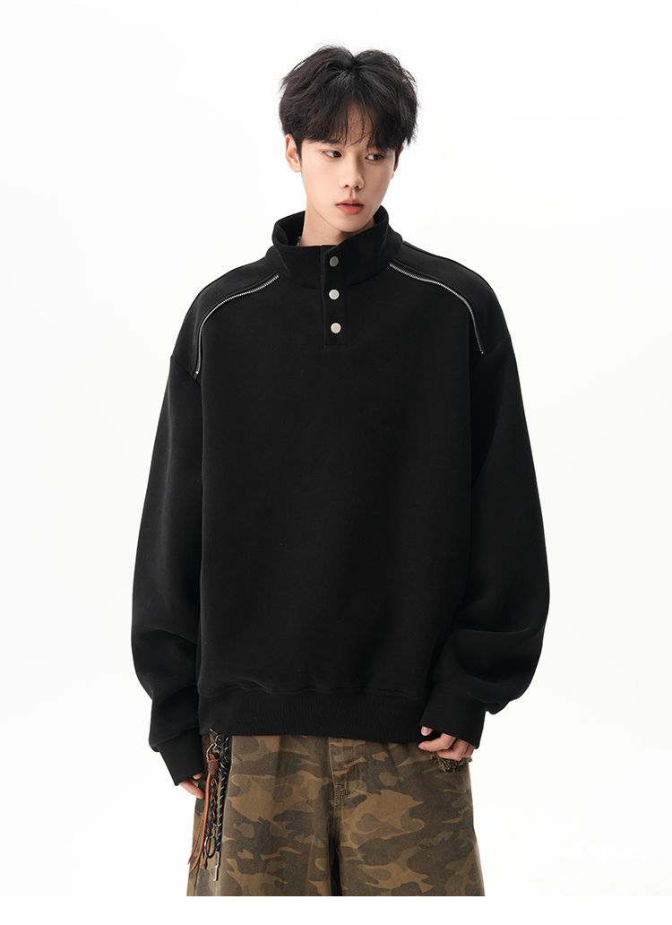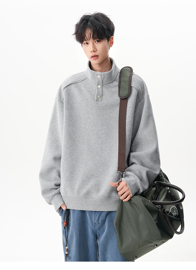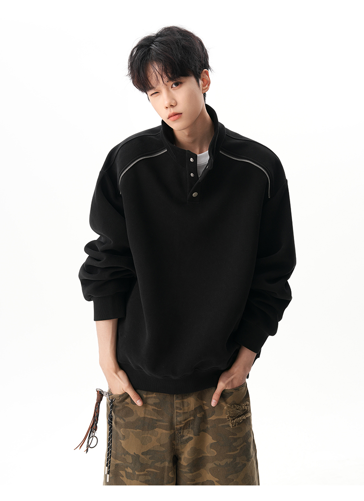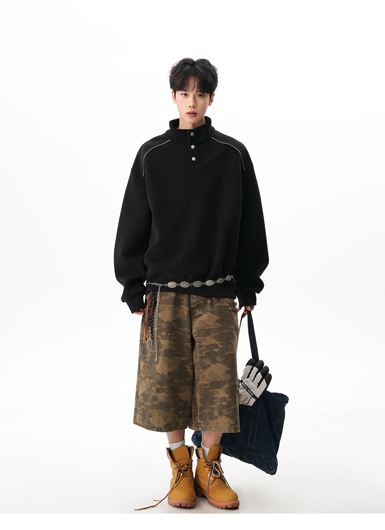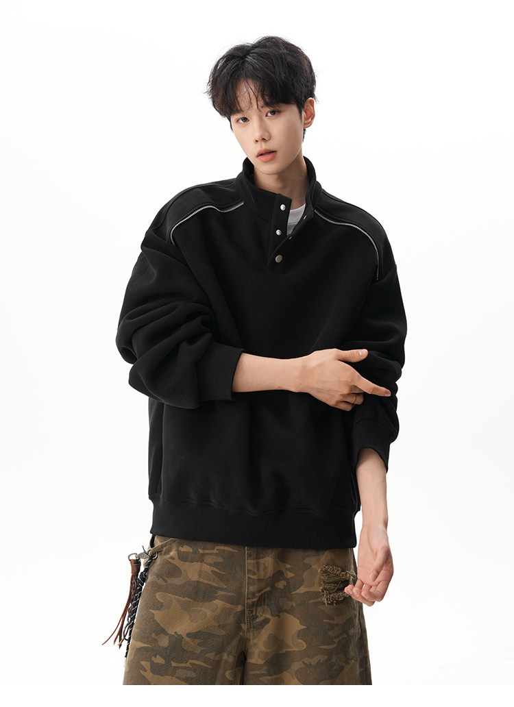 480G重磅美式休閒立領衛衣男女秋季設計感休閒套頭衫寬松運動上衣