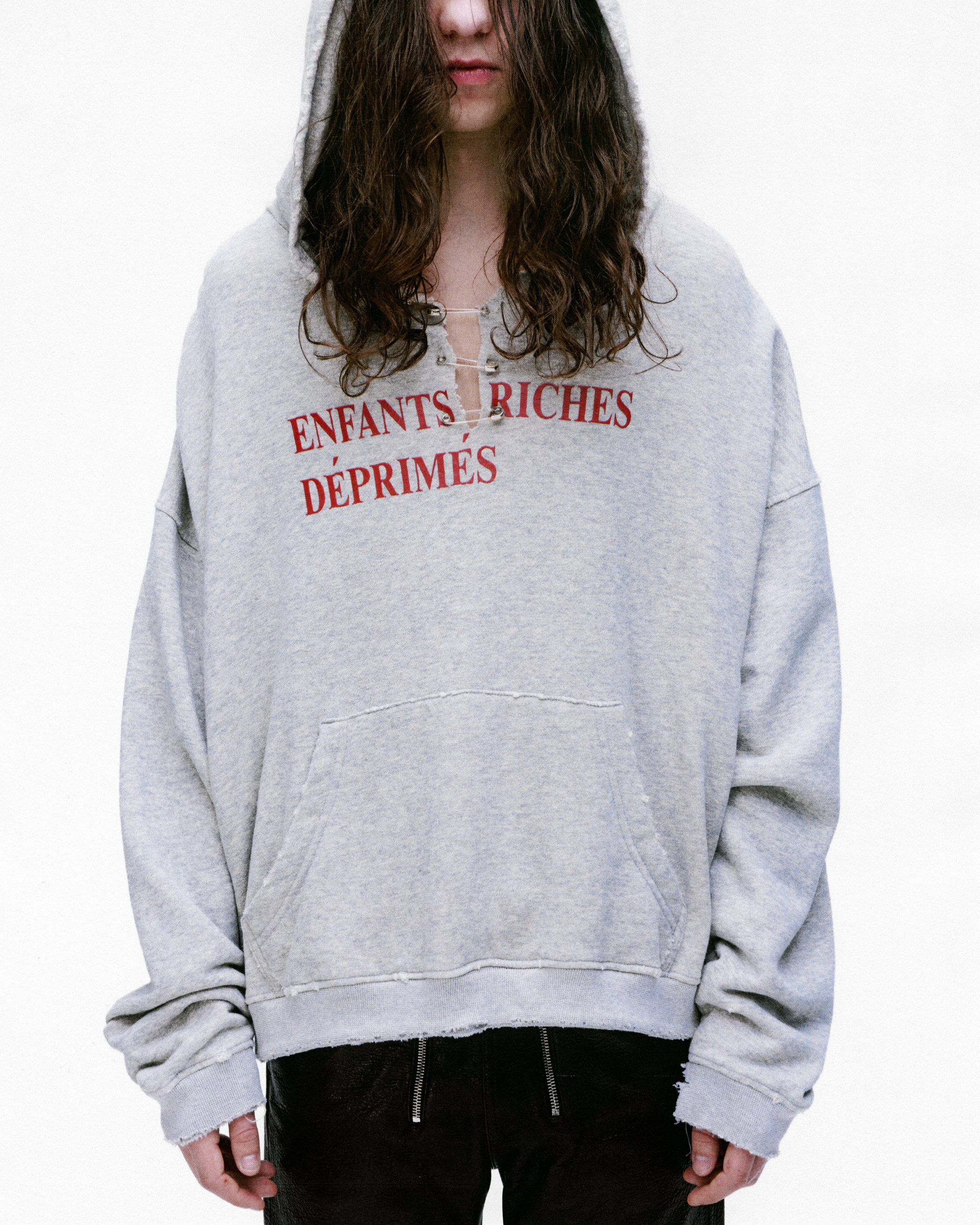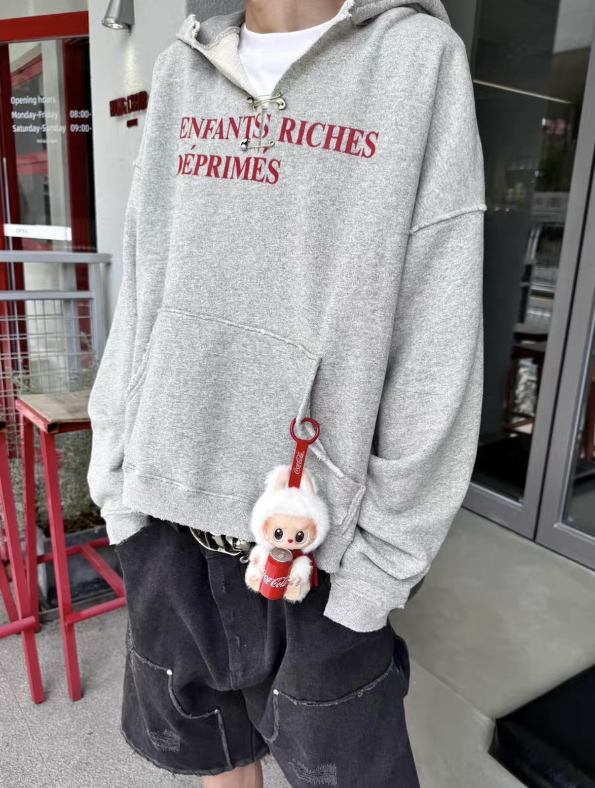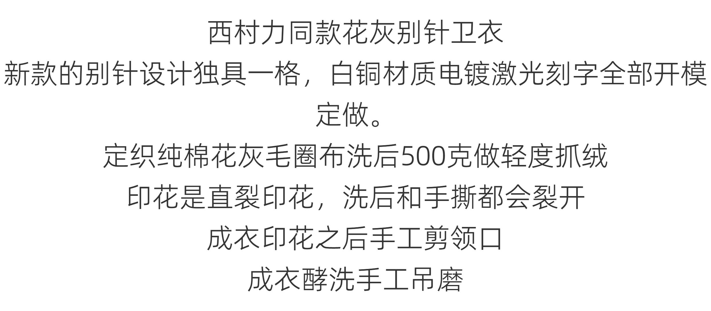 西村力erd25ss官網限定花灰金屬別針破壞標語boxy水洗做舊帽衫