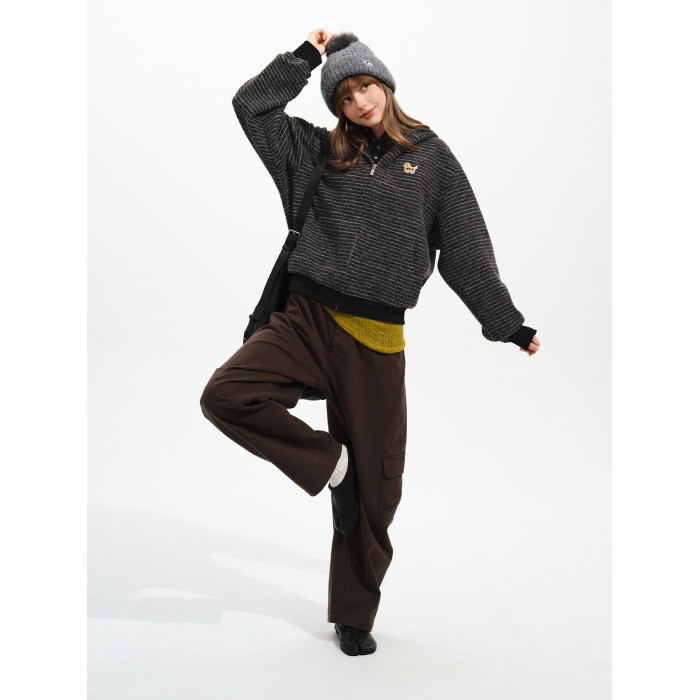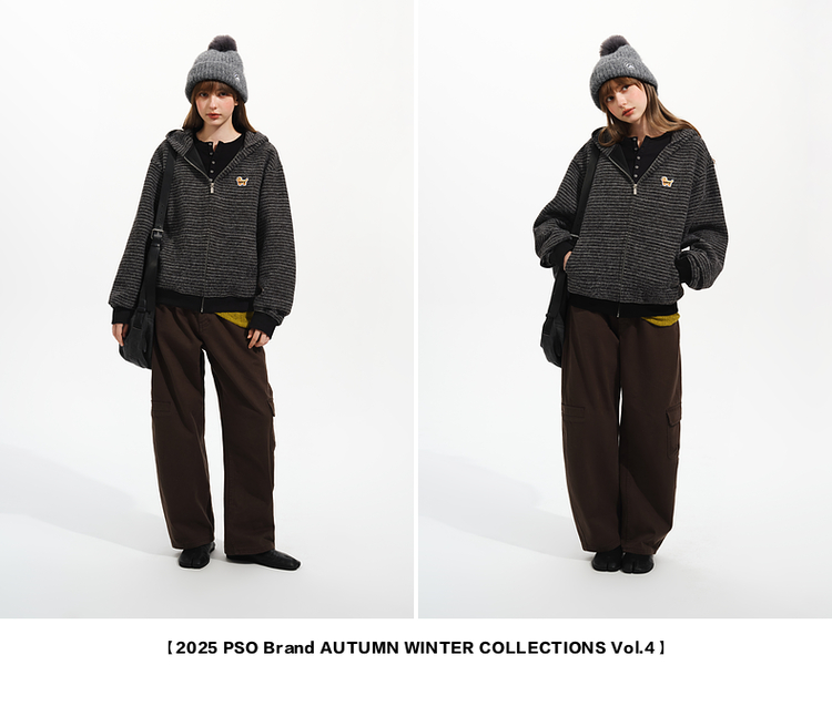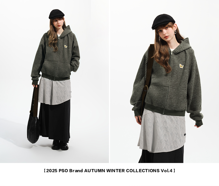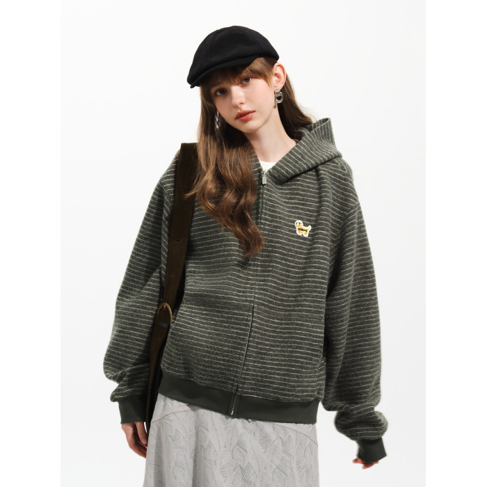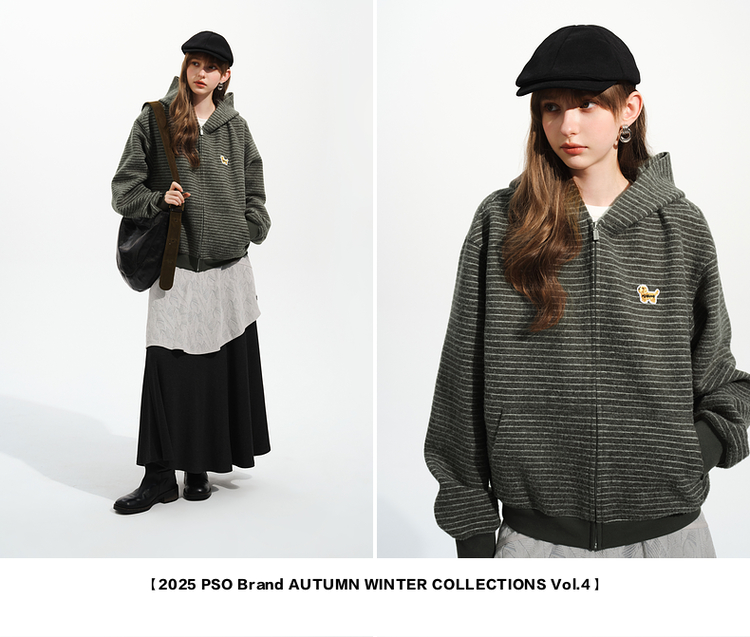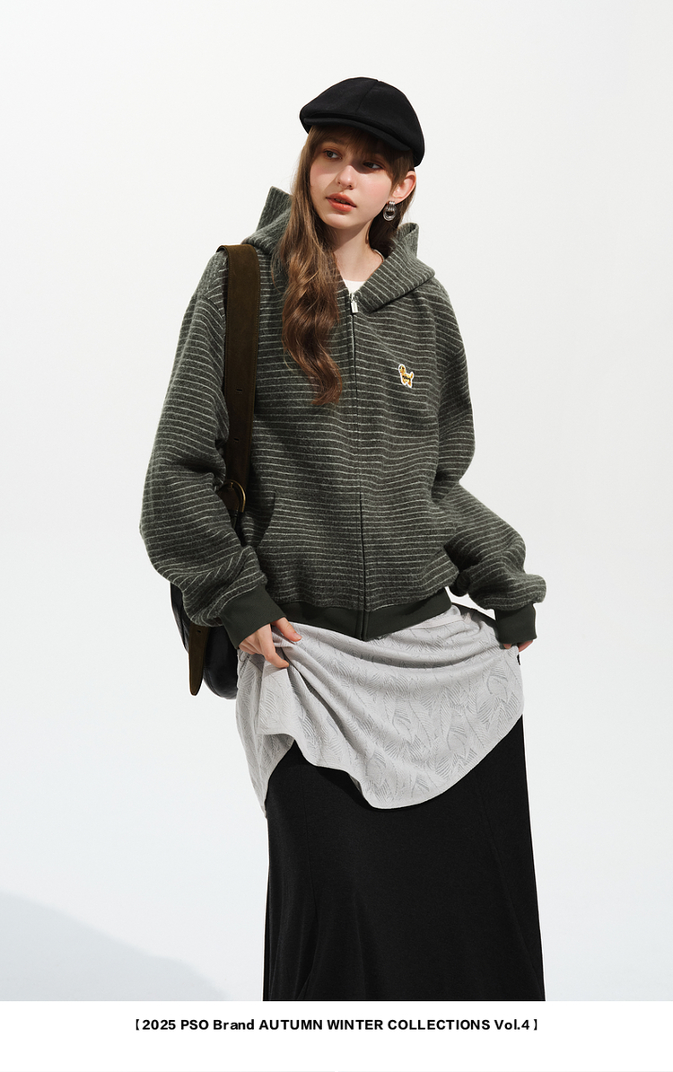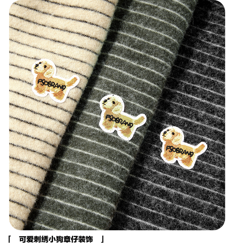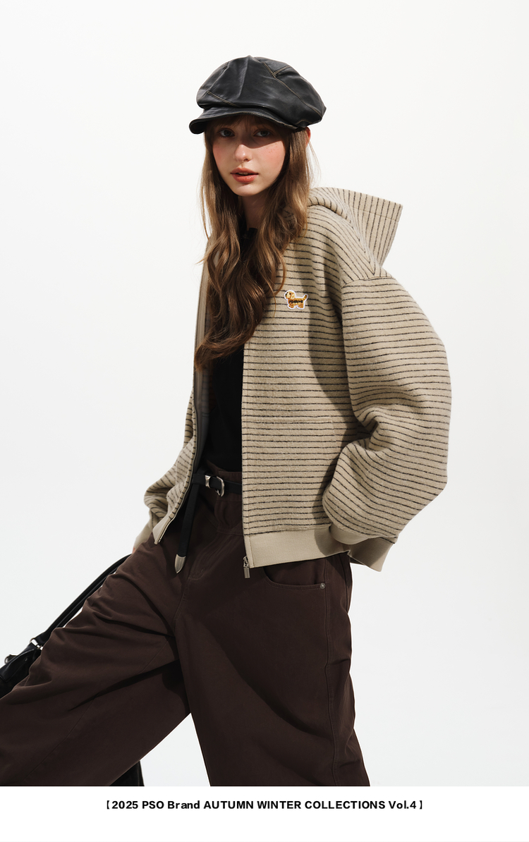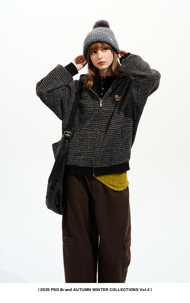 PSO Brand男裝女裝針織刺綉小狗條紋連帽開衫重磅衛衣秋冬季外套