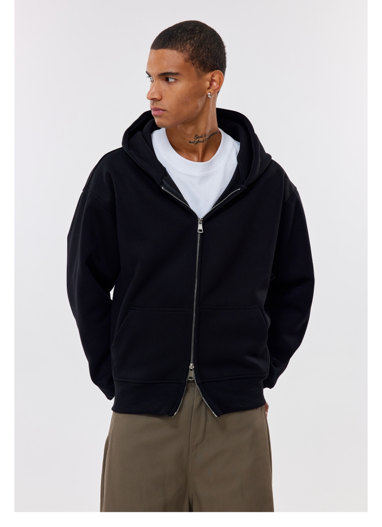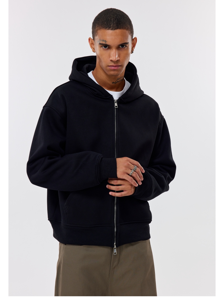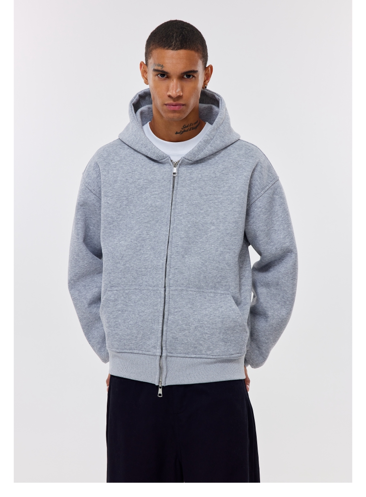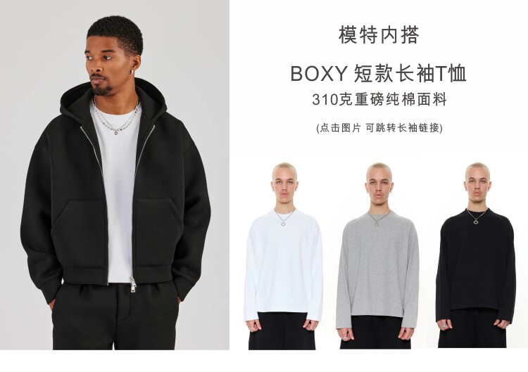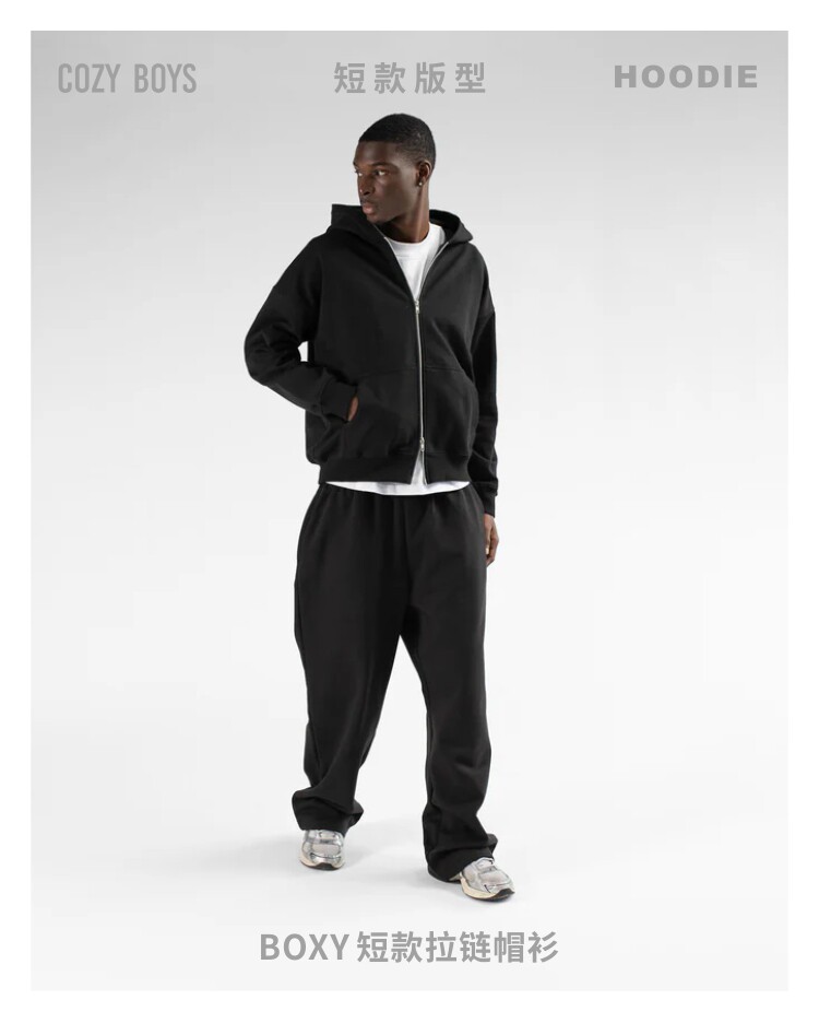 COZY BOYS美式boxy短款連帽衛衣Cleanfit秋冬拉鍊500g開衫外套男