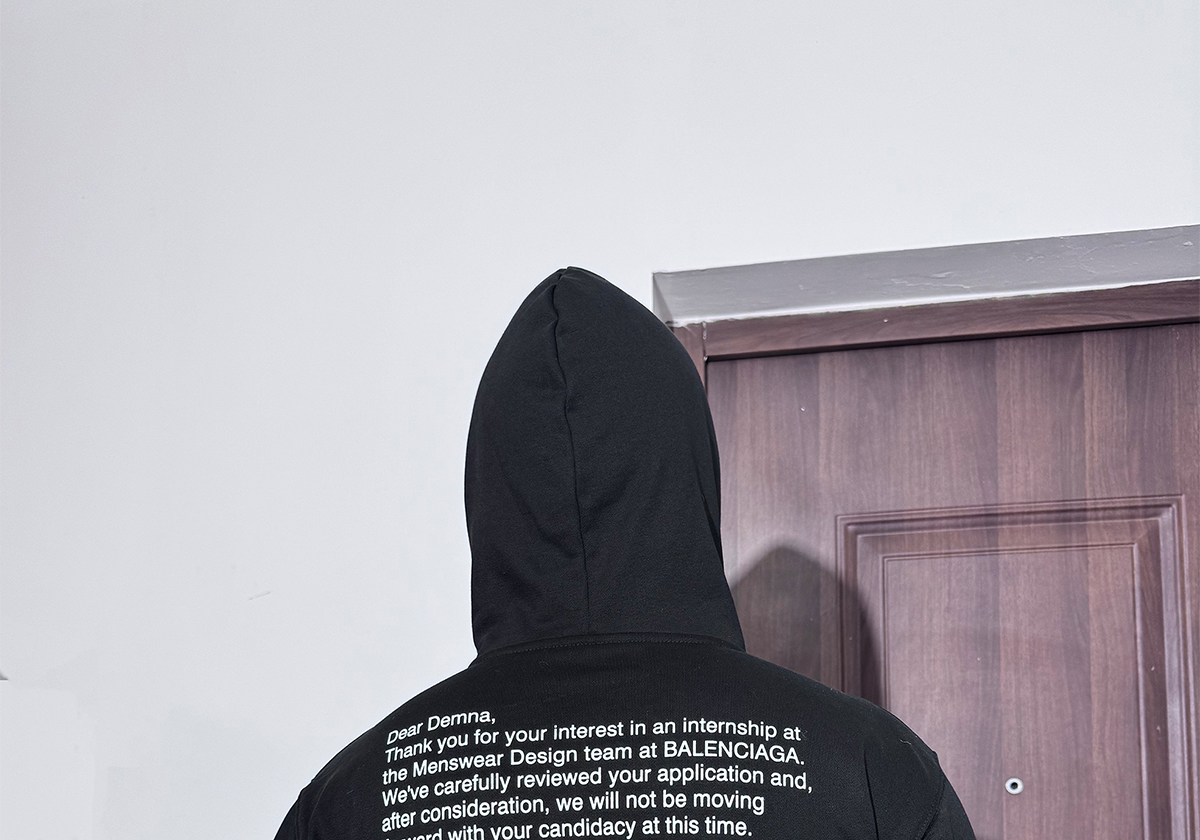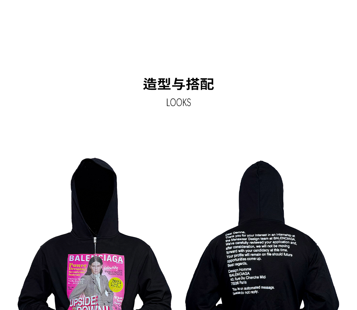 *RYE CHASIN致敬Demna設計師BLC*G拒絕信作品集雜志修身連帽衛衣