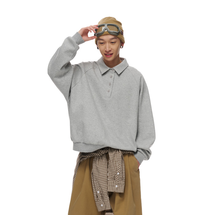 BELLKENIDEA 翻領POLO珠地衛衣復古寬松休閒通勤中性風上衣男女