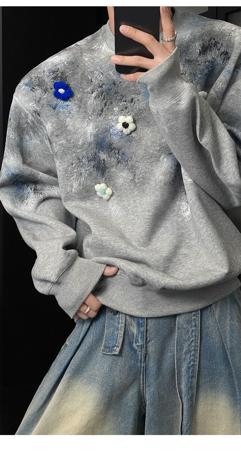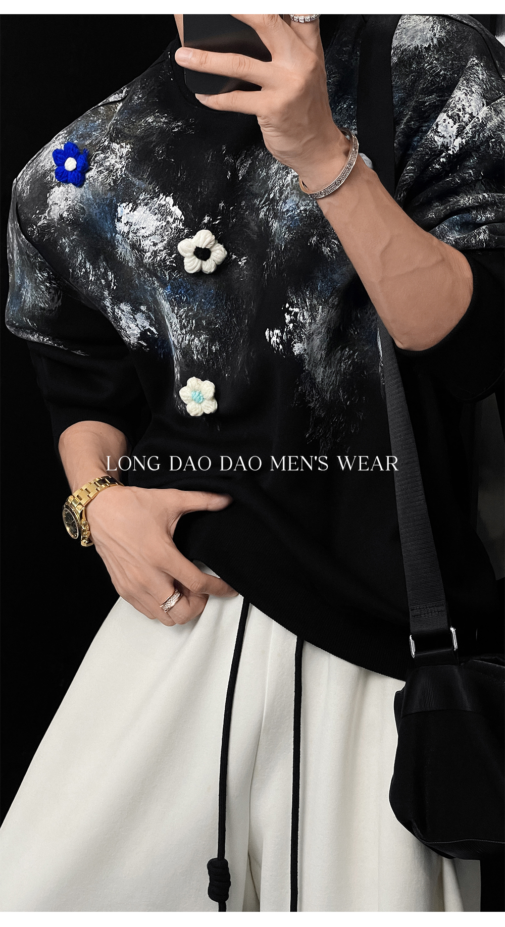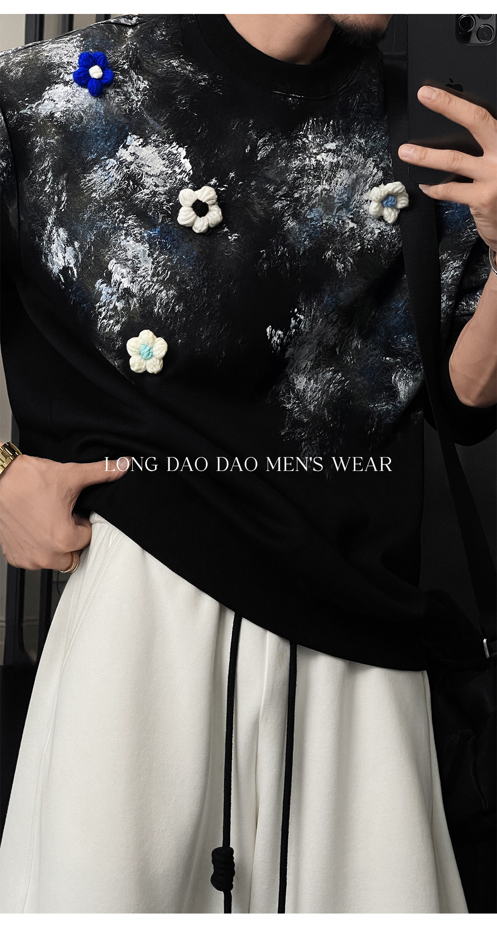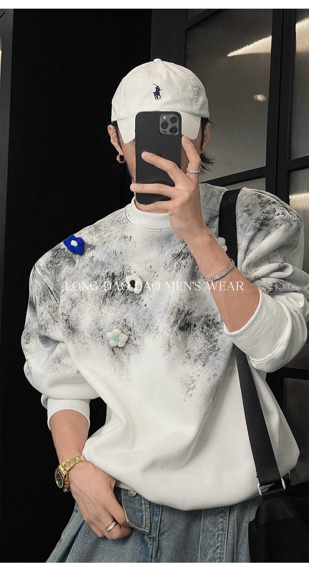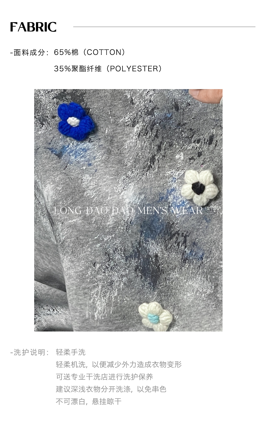 龍叨叨秋季新品美式潮牌小衆設計款衛衣男oversize寬松花朵上衣