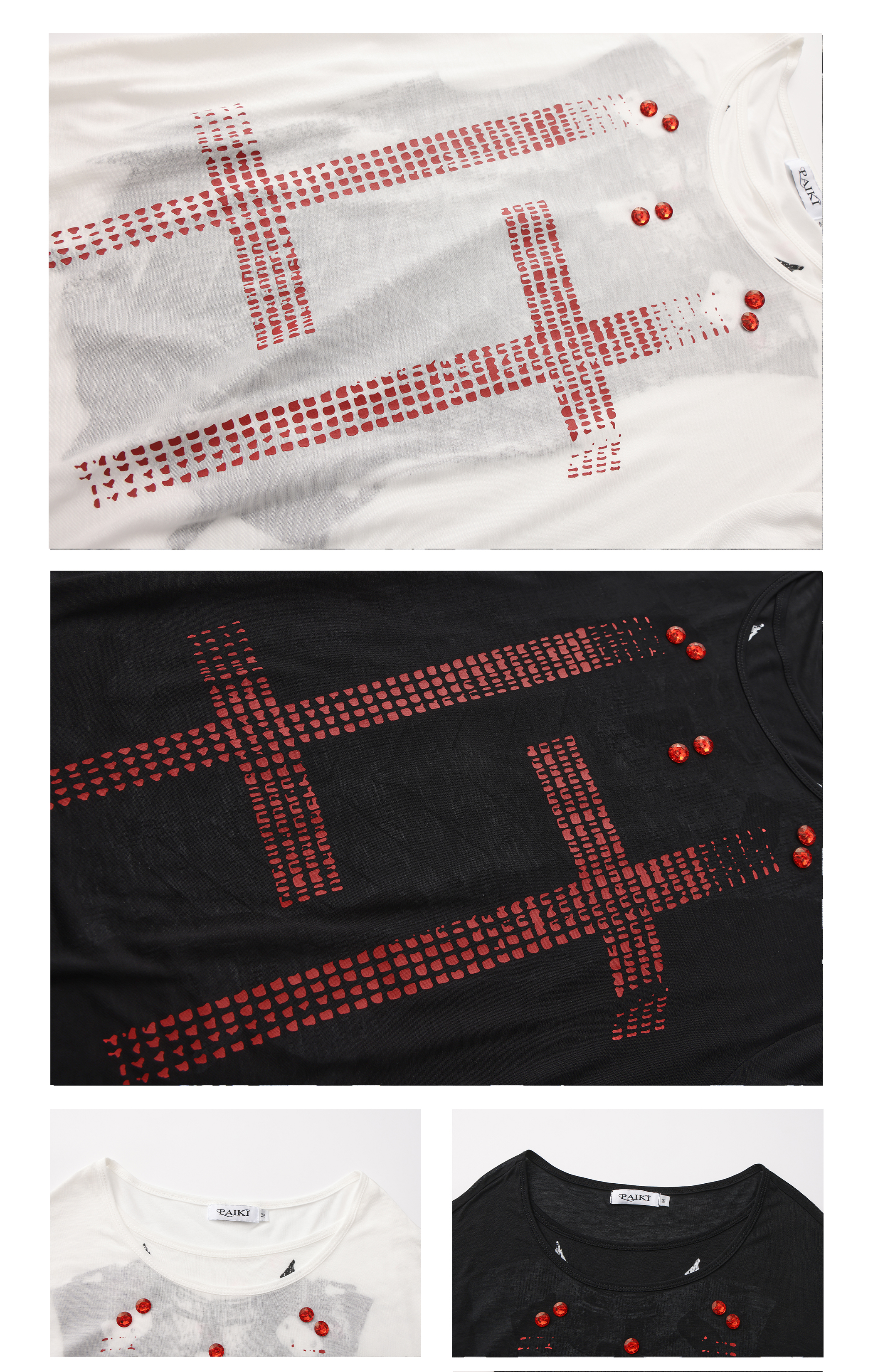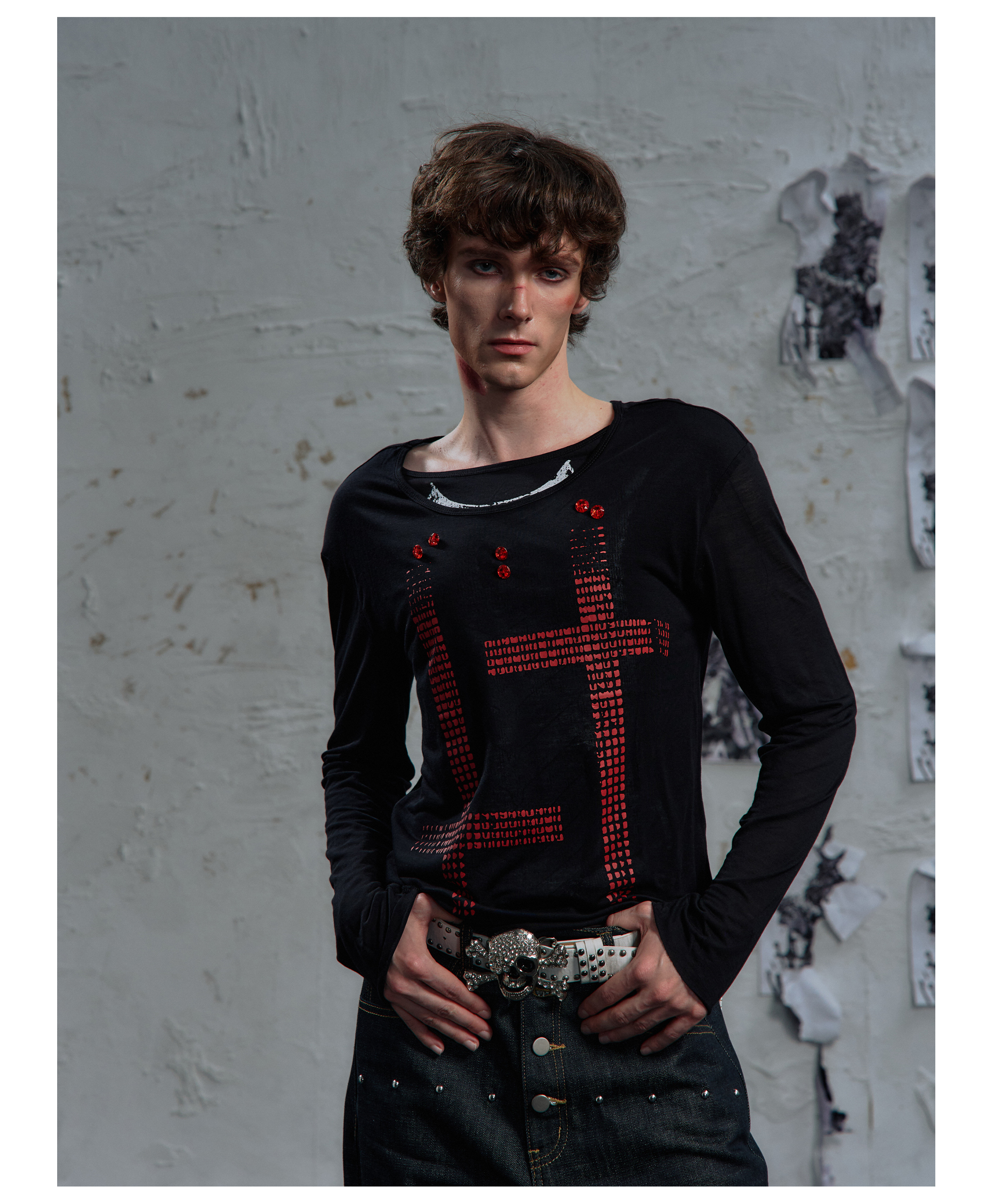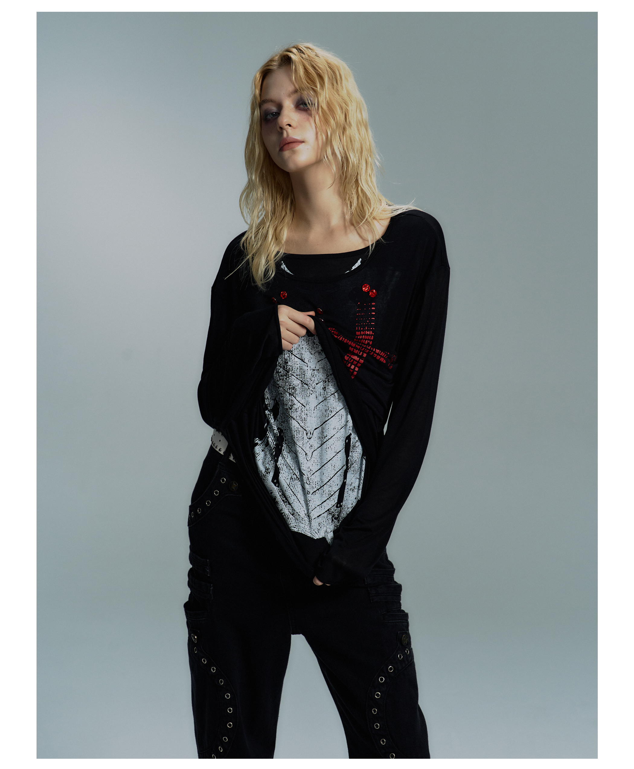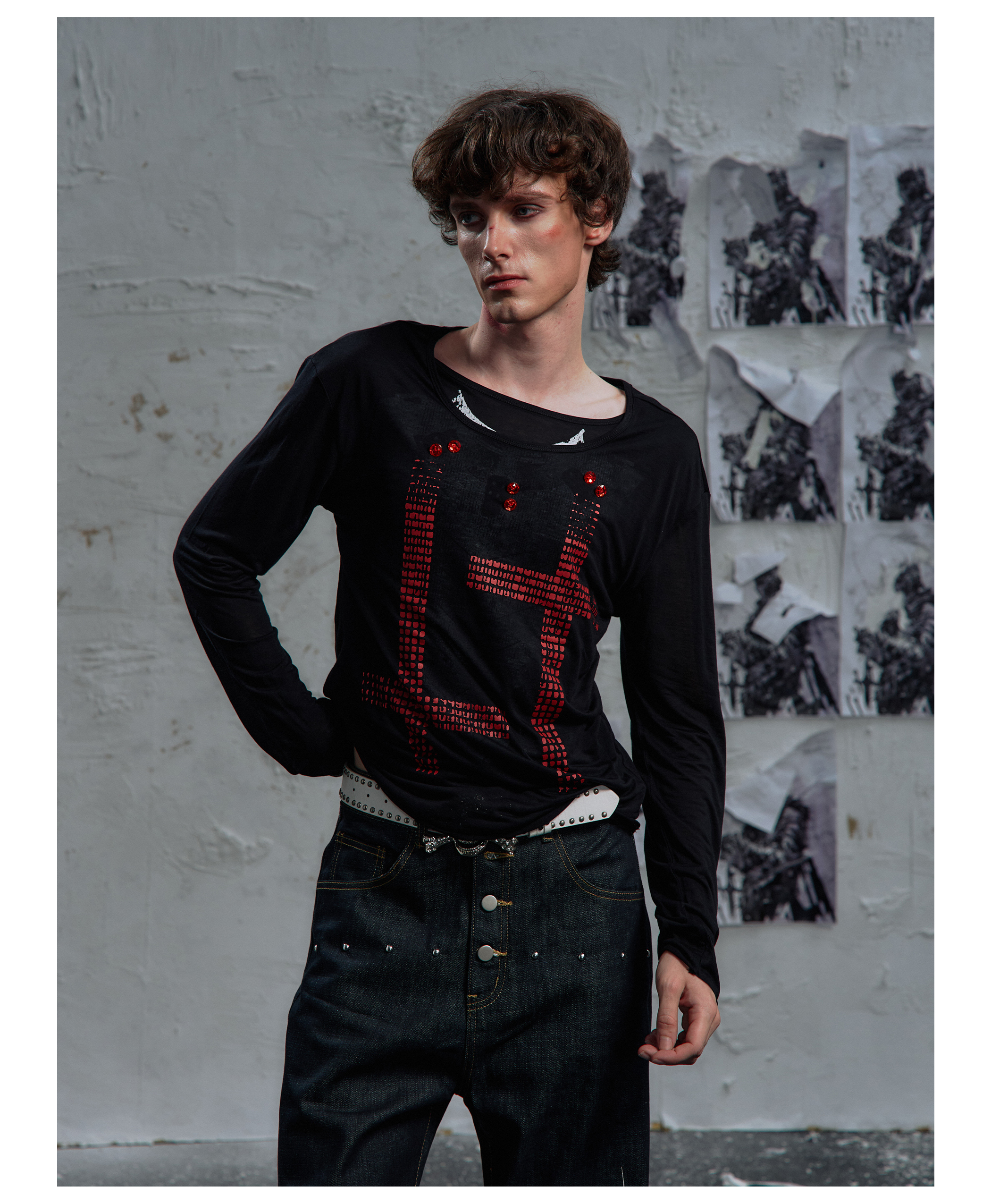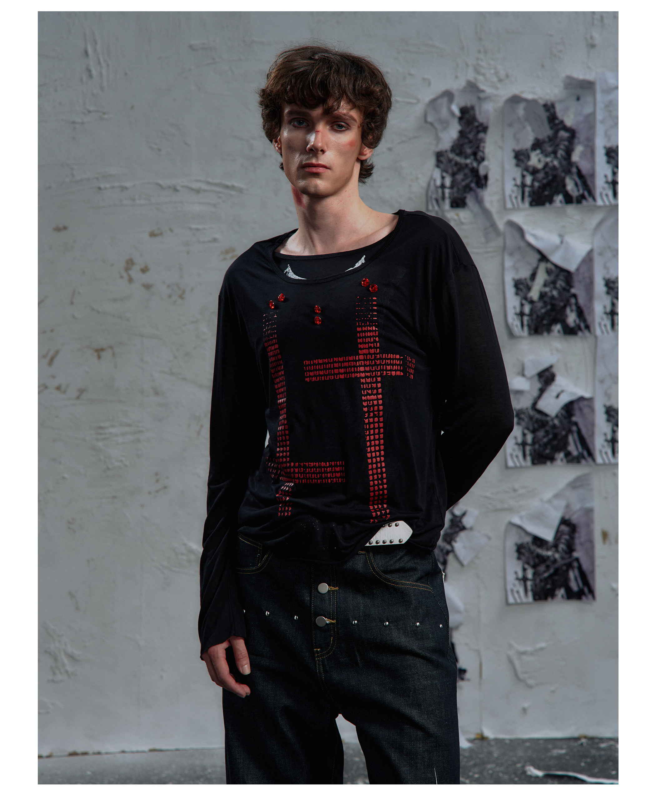 PAIKI「勝利女神號角」紅寶石盾牌十字架假兩件圓領衛衣男女秋冬