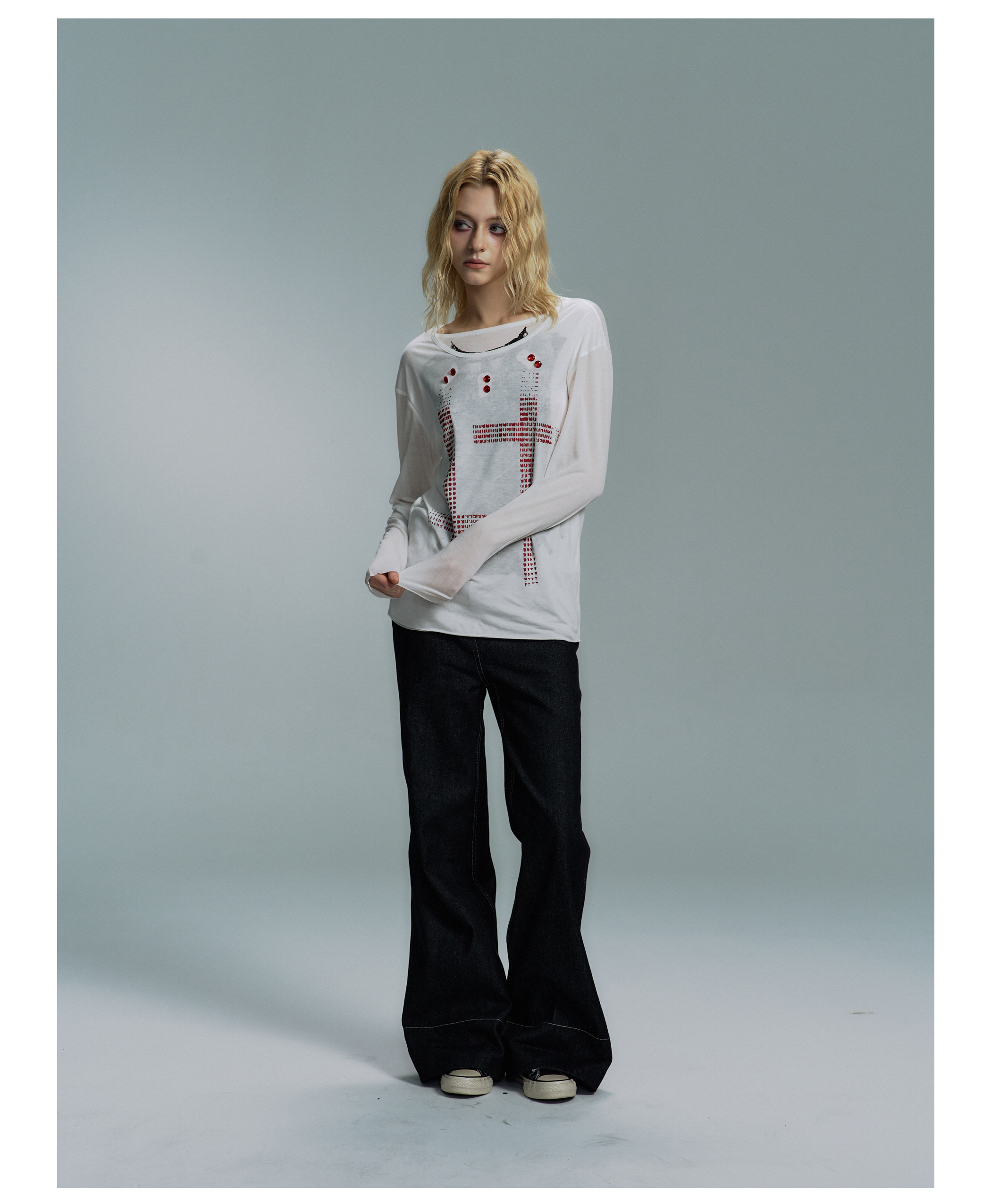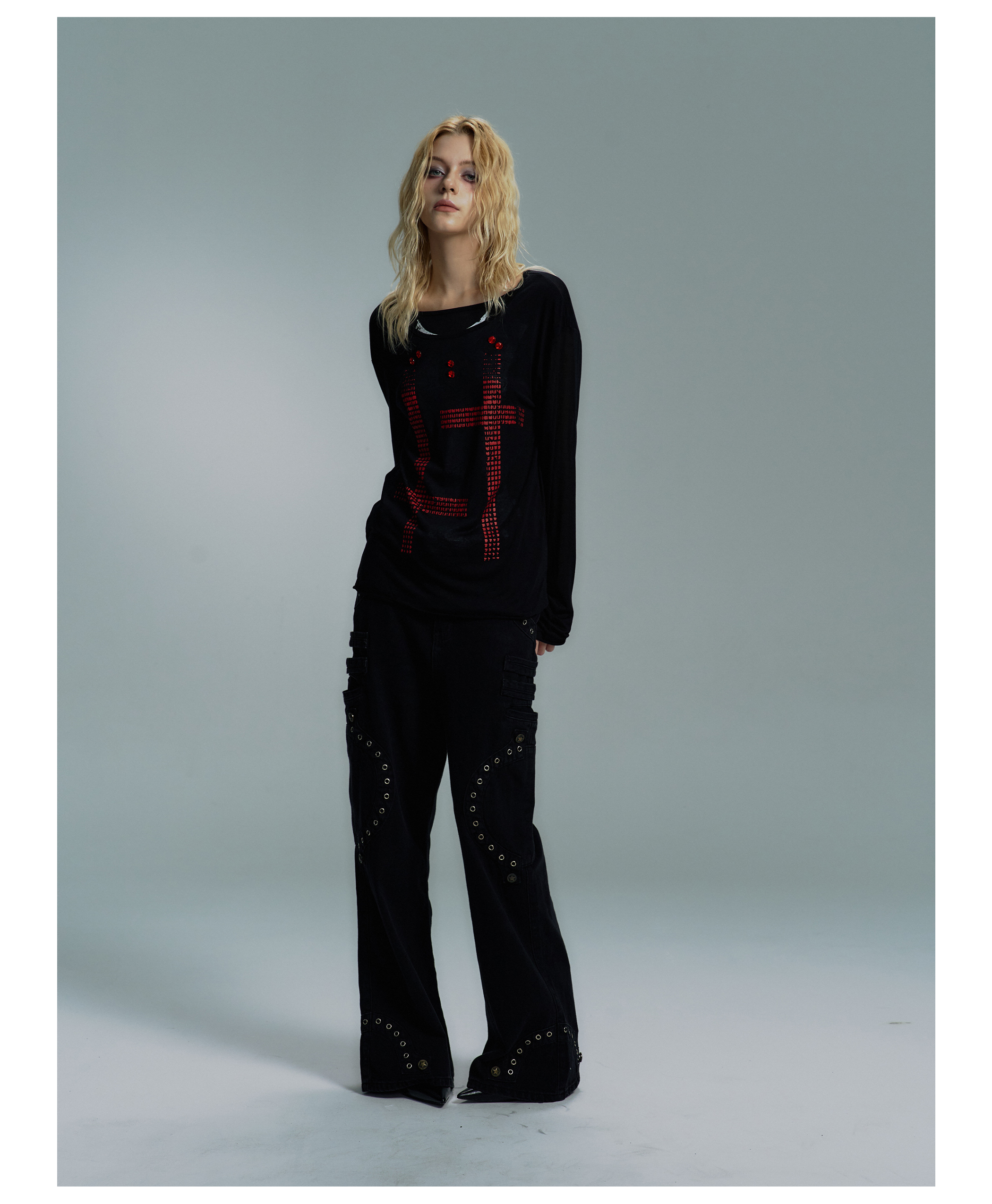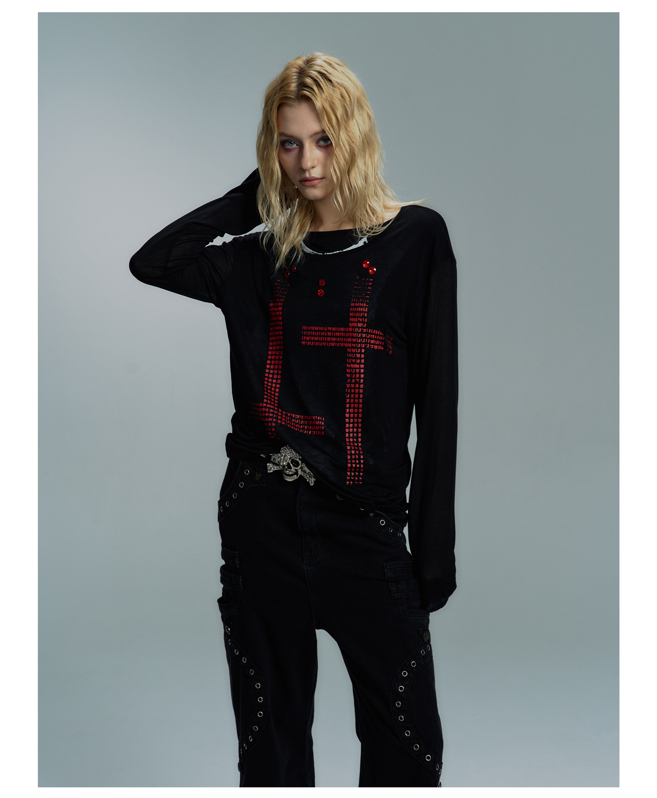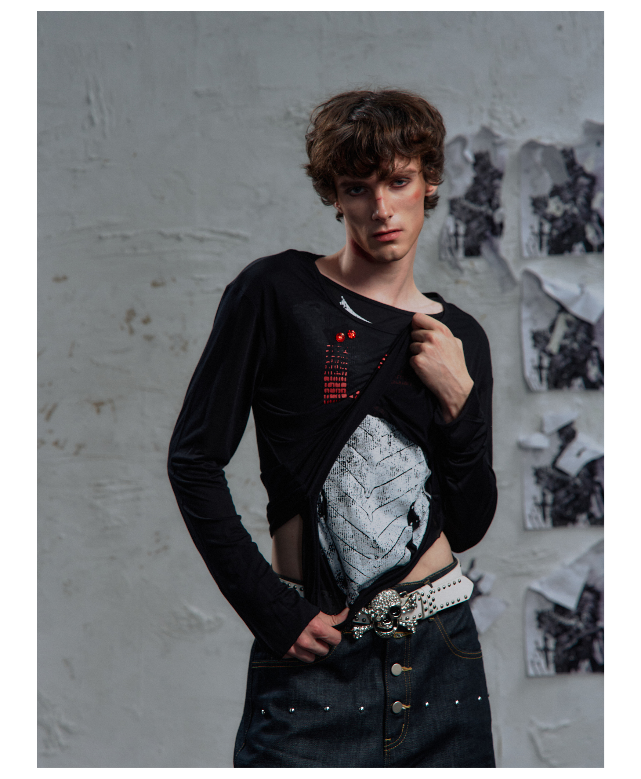 PAIKI「勝利女神號角」紅寶石盾牌十字架假兩件圓領衛衣男女秋冬
