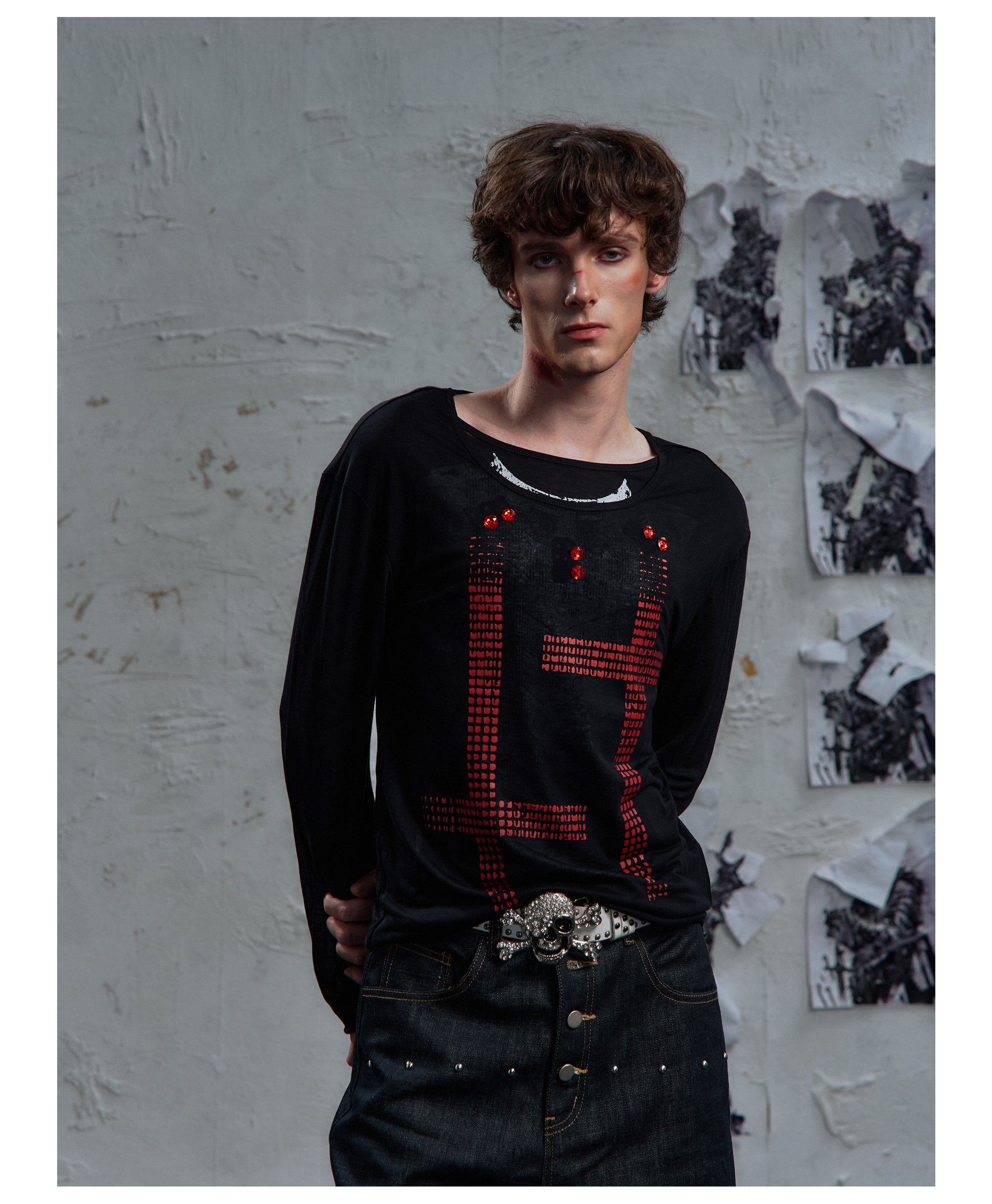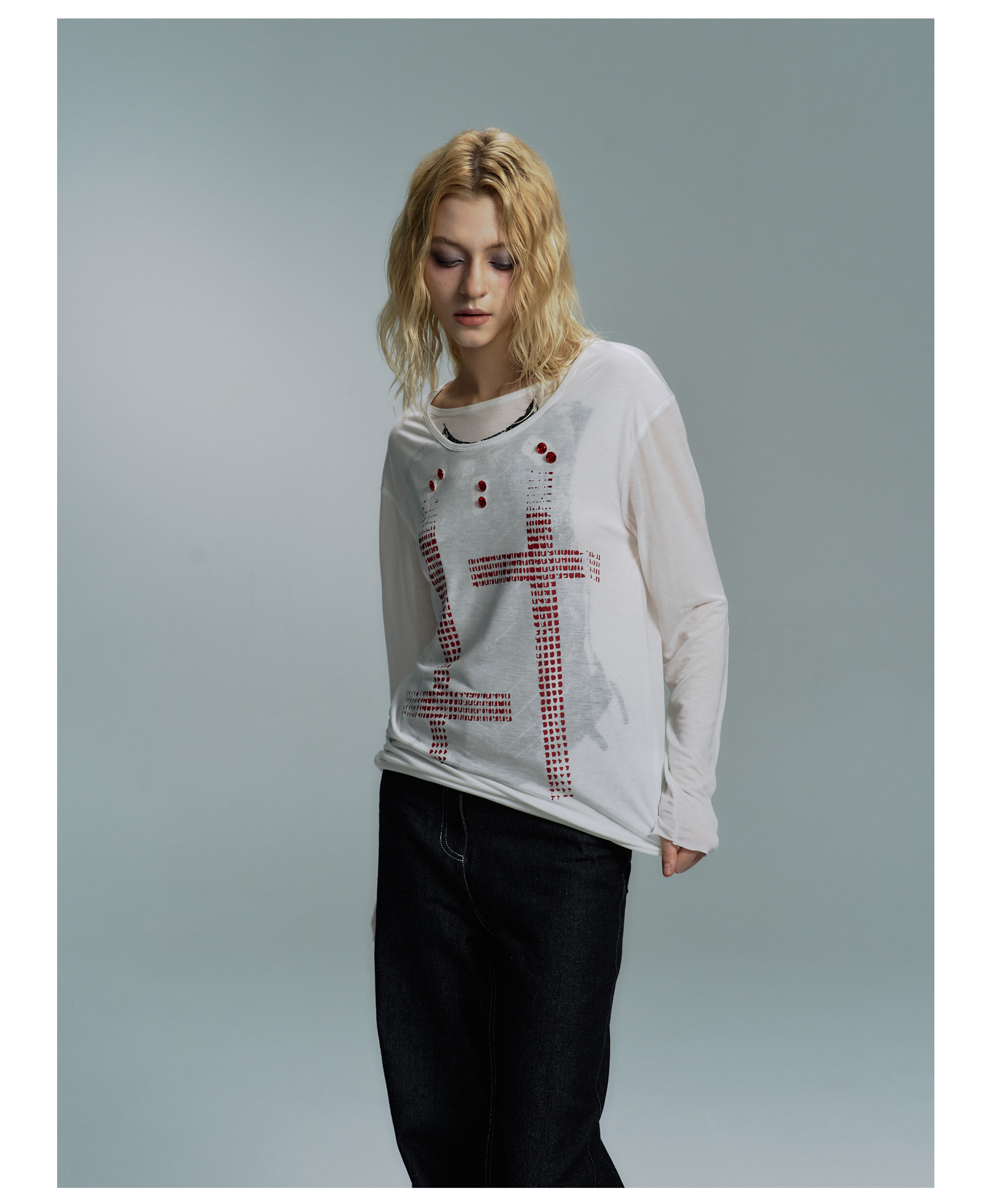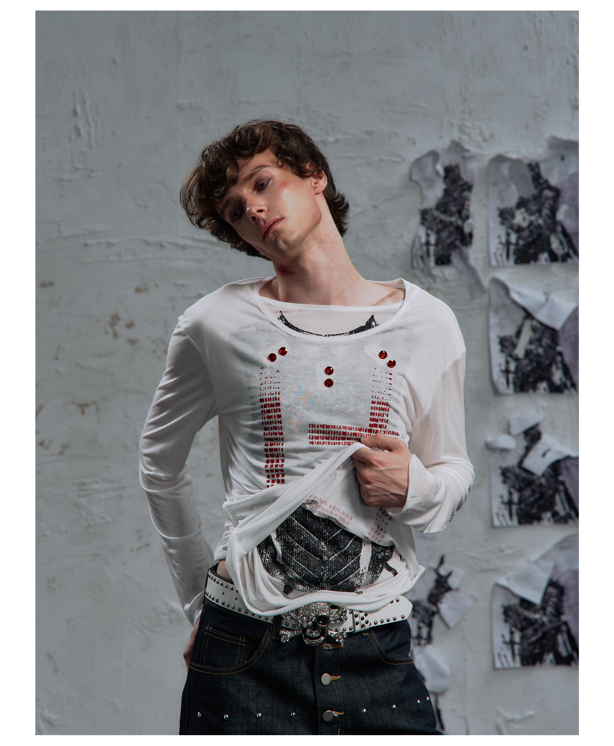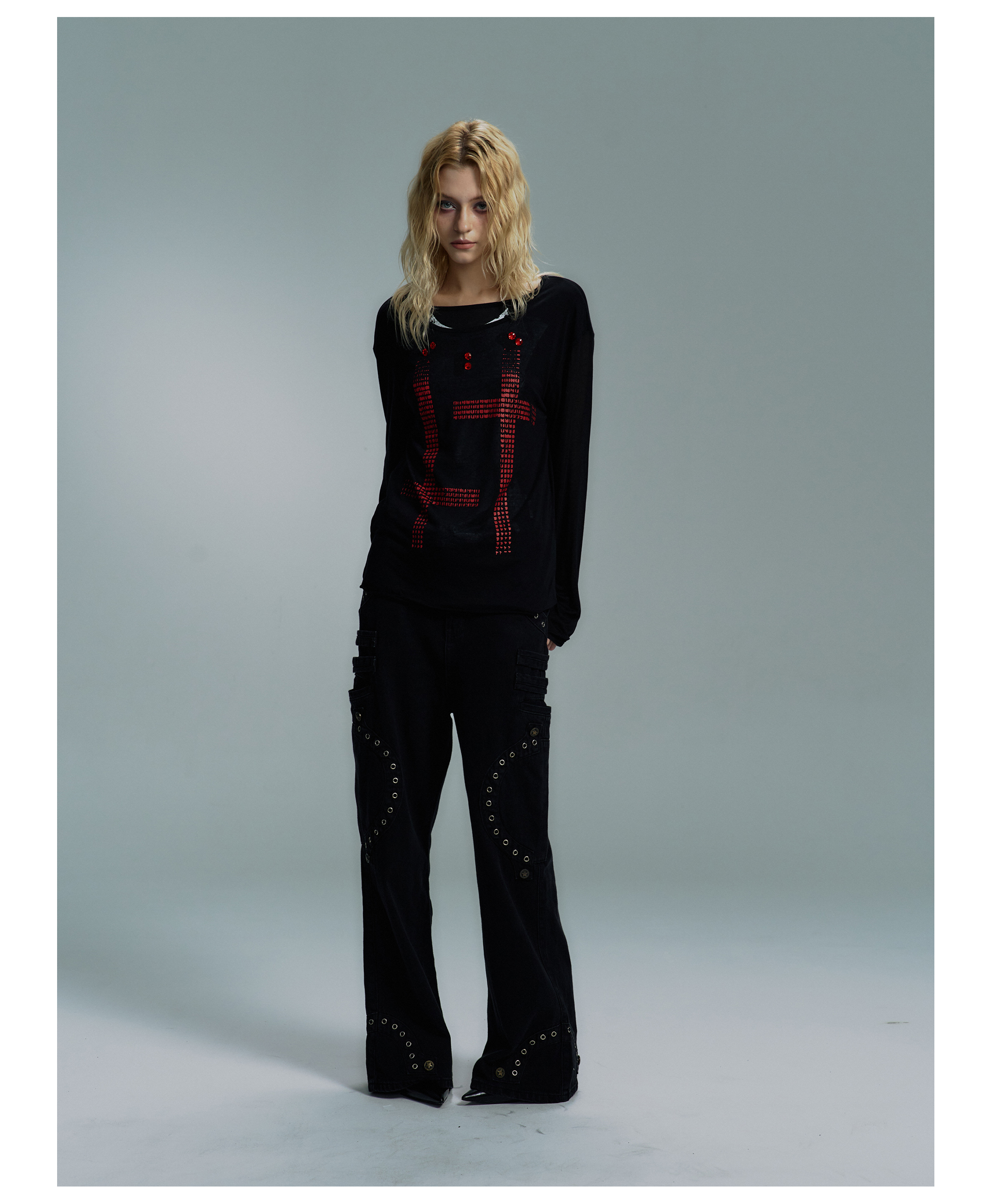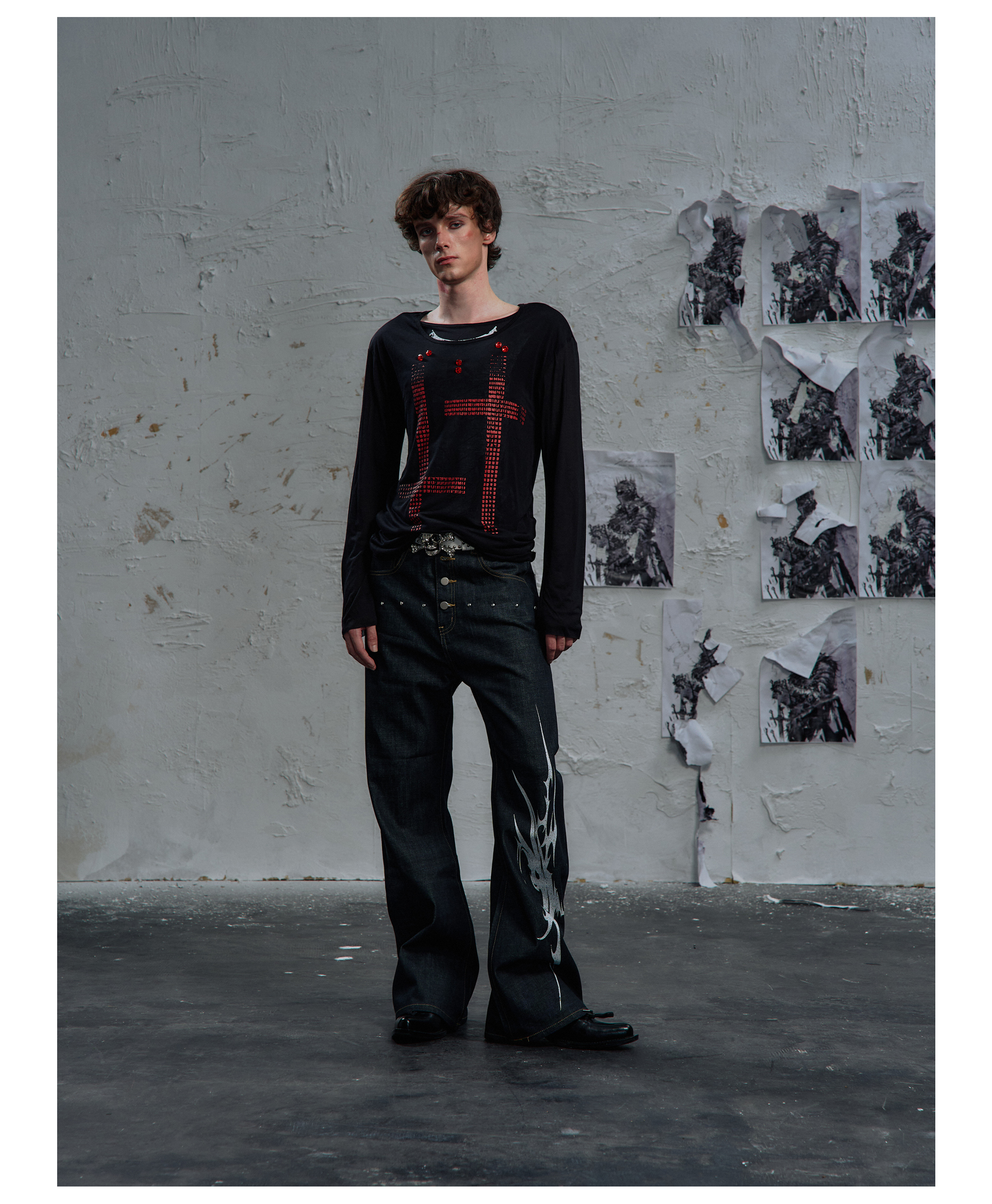 PAIKI「勝利女神號角」紅寶石盾牌十字架假兩件圓領衛衣男女秋冬
