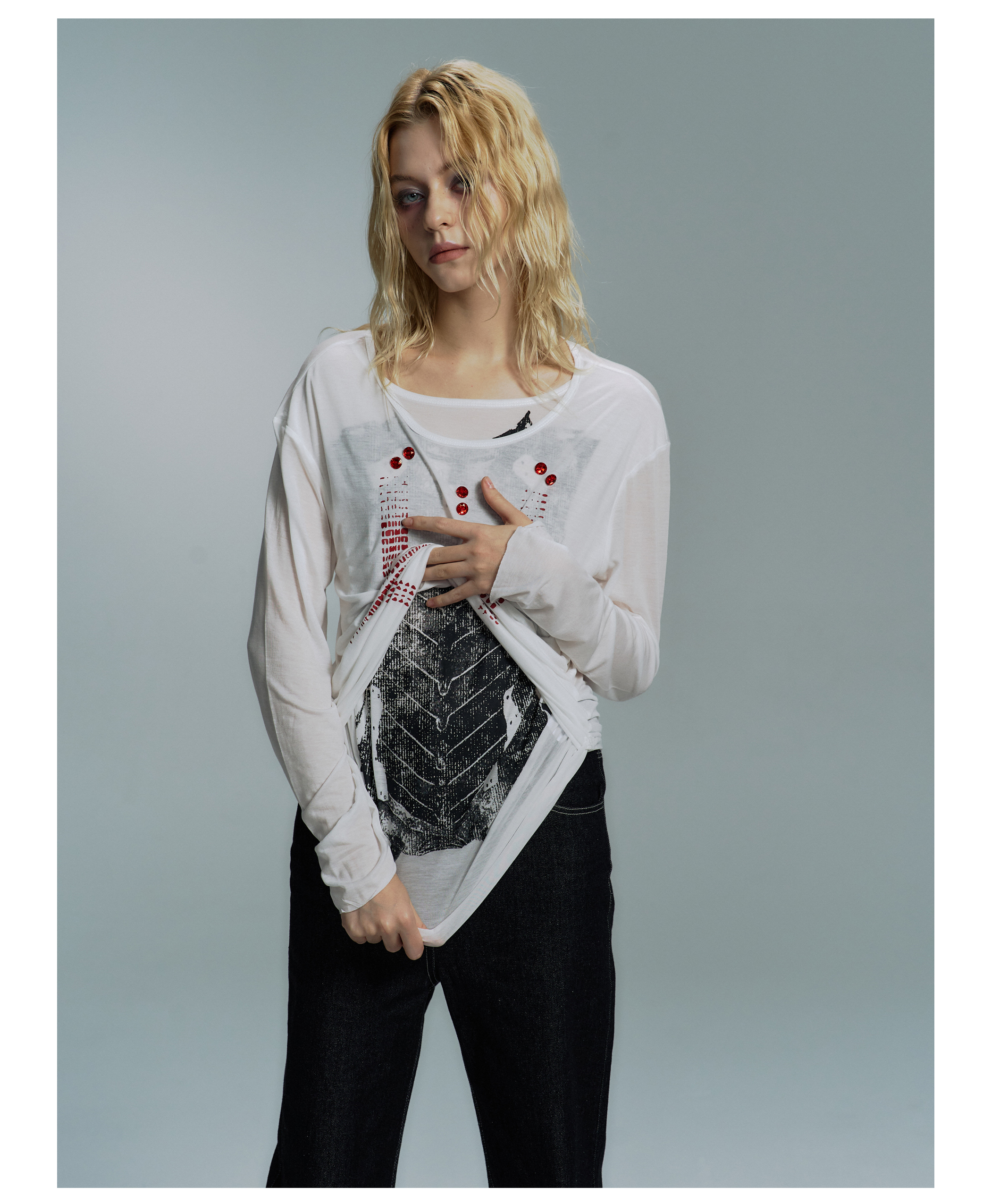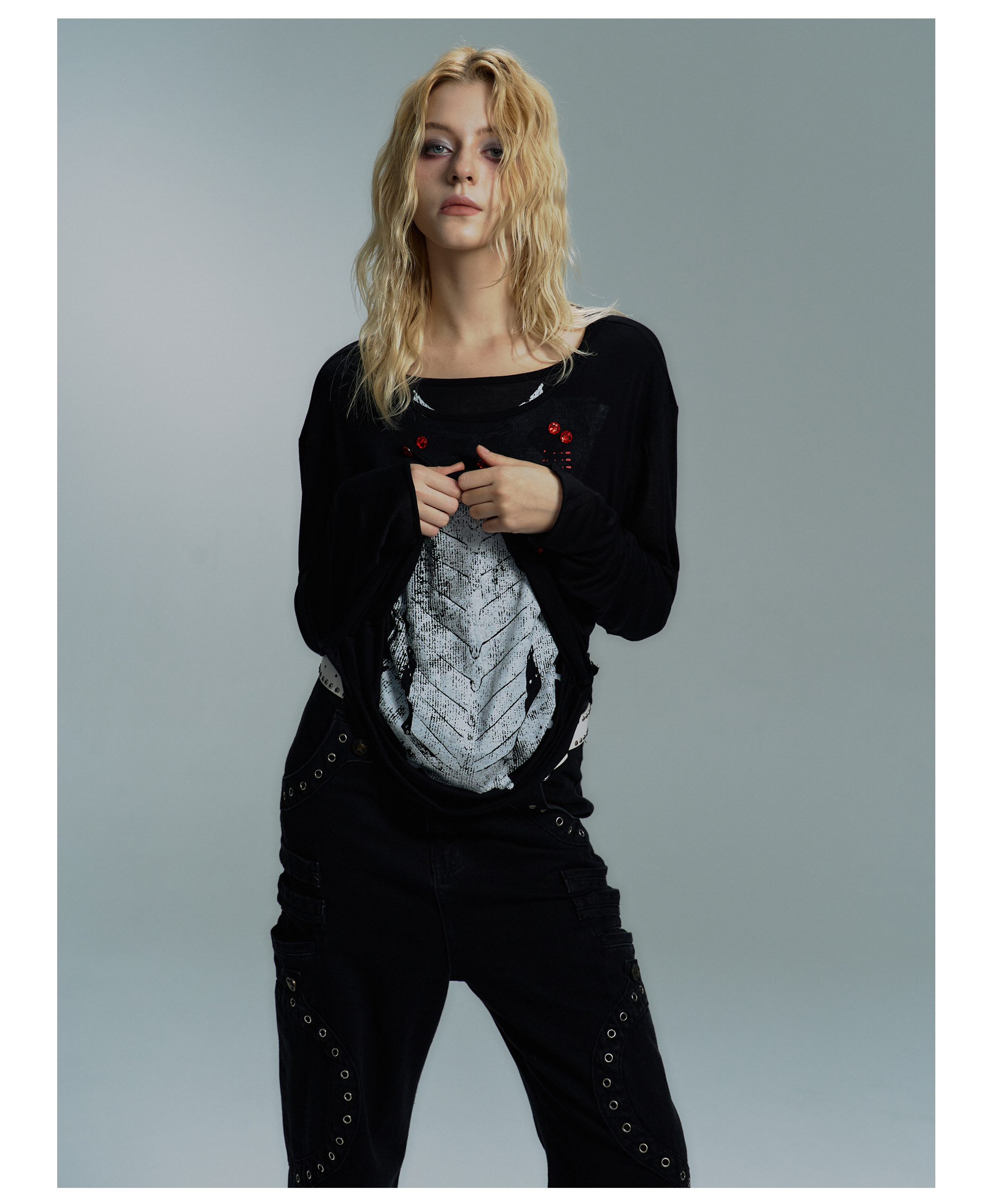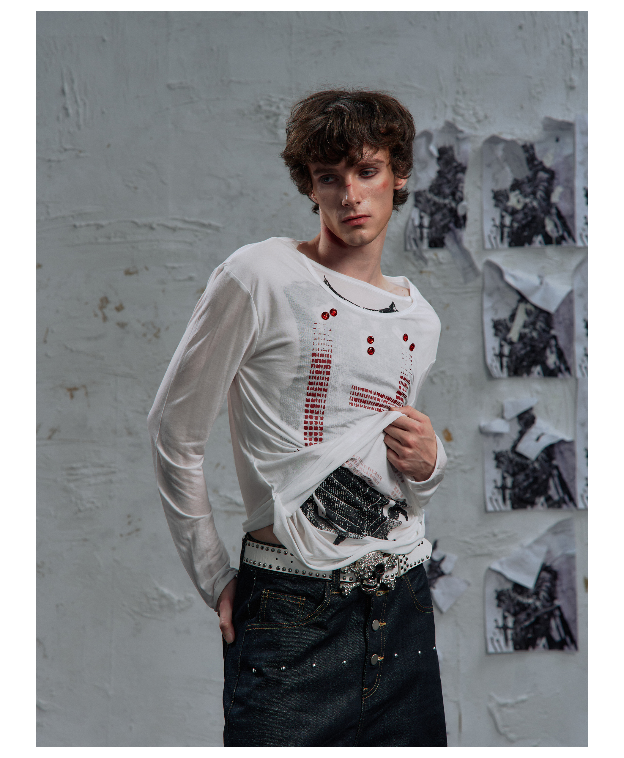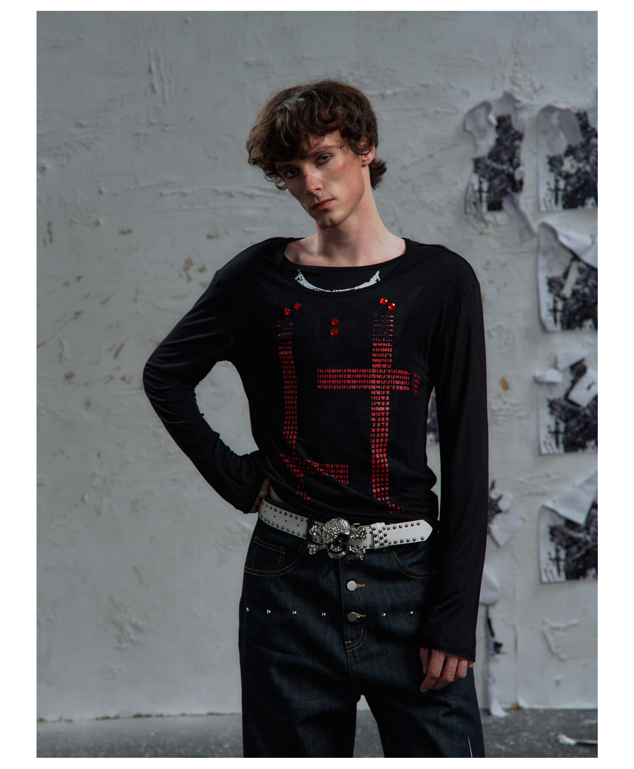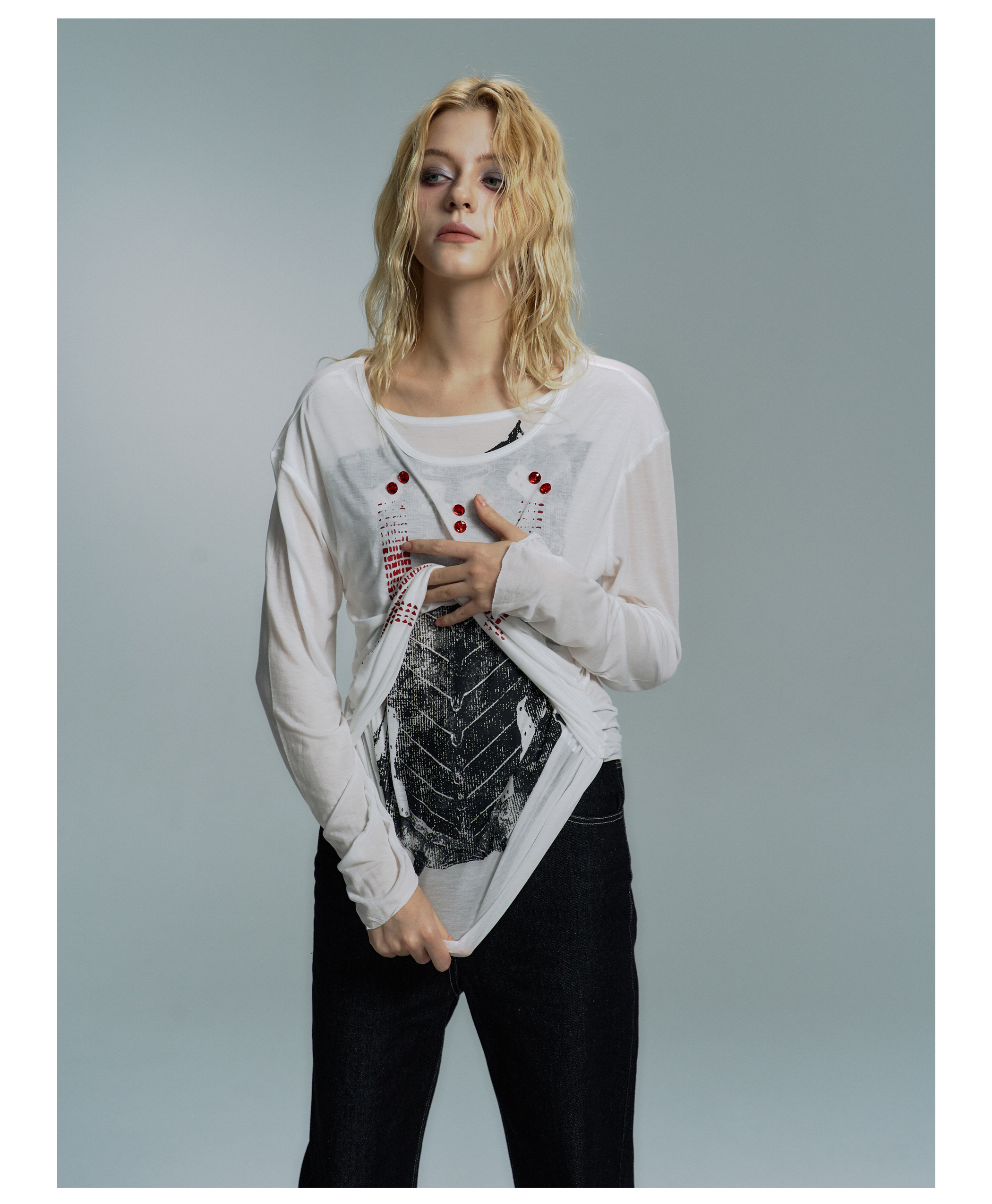 PAIKI「勝利女神號角」紅寶石盾牌十字架假兩件圓領衛衣男女秋冬