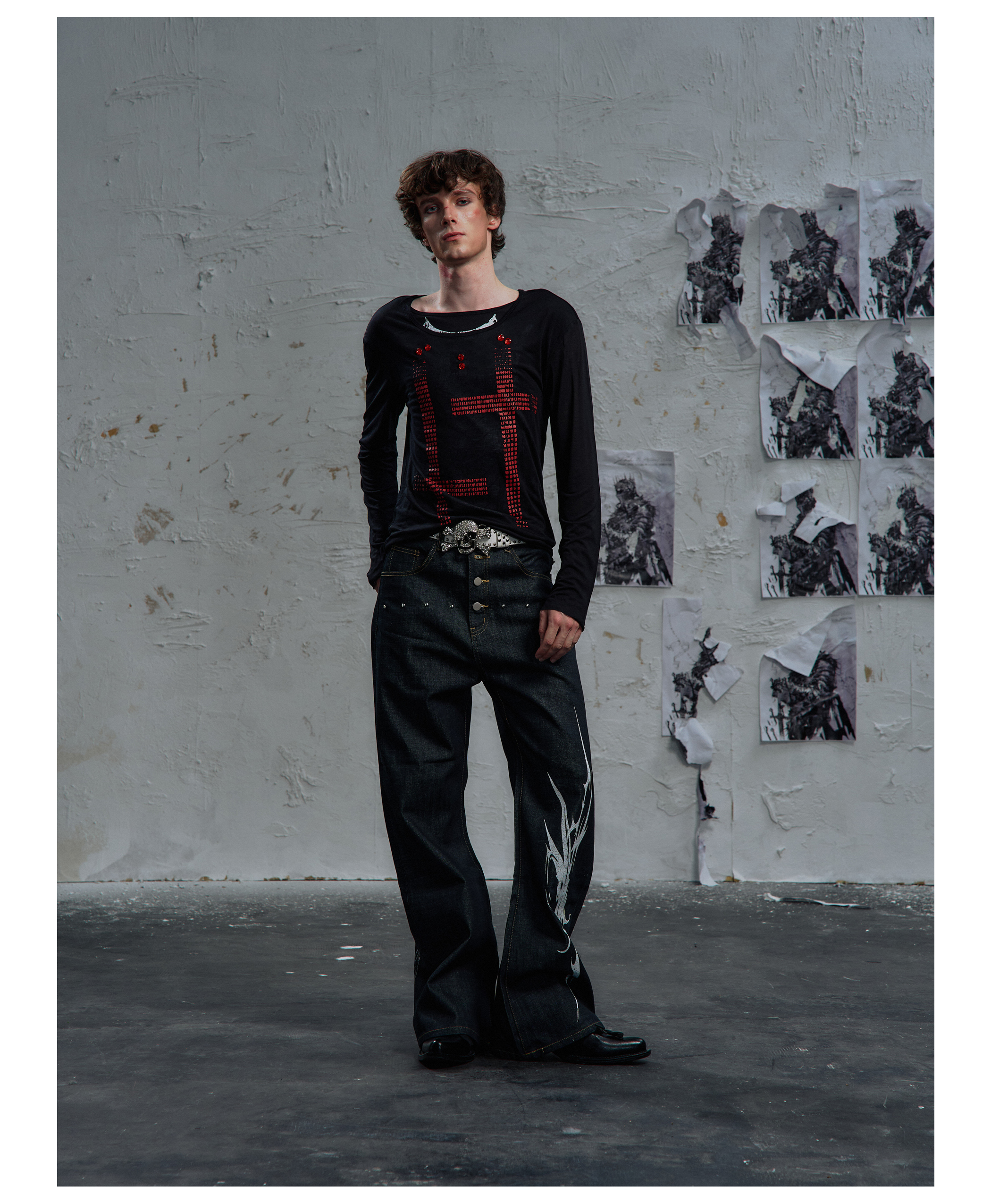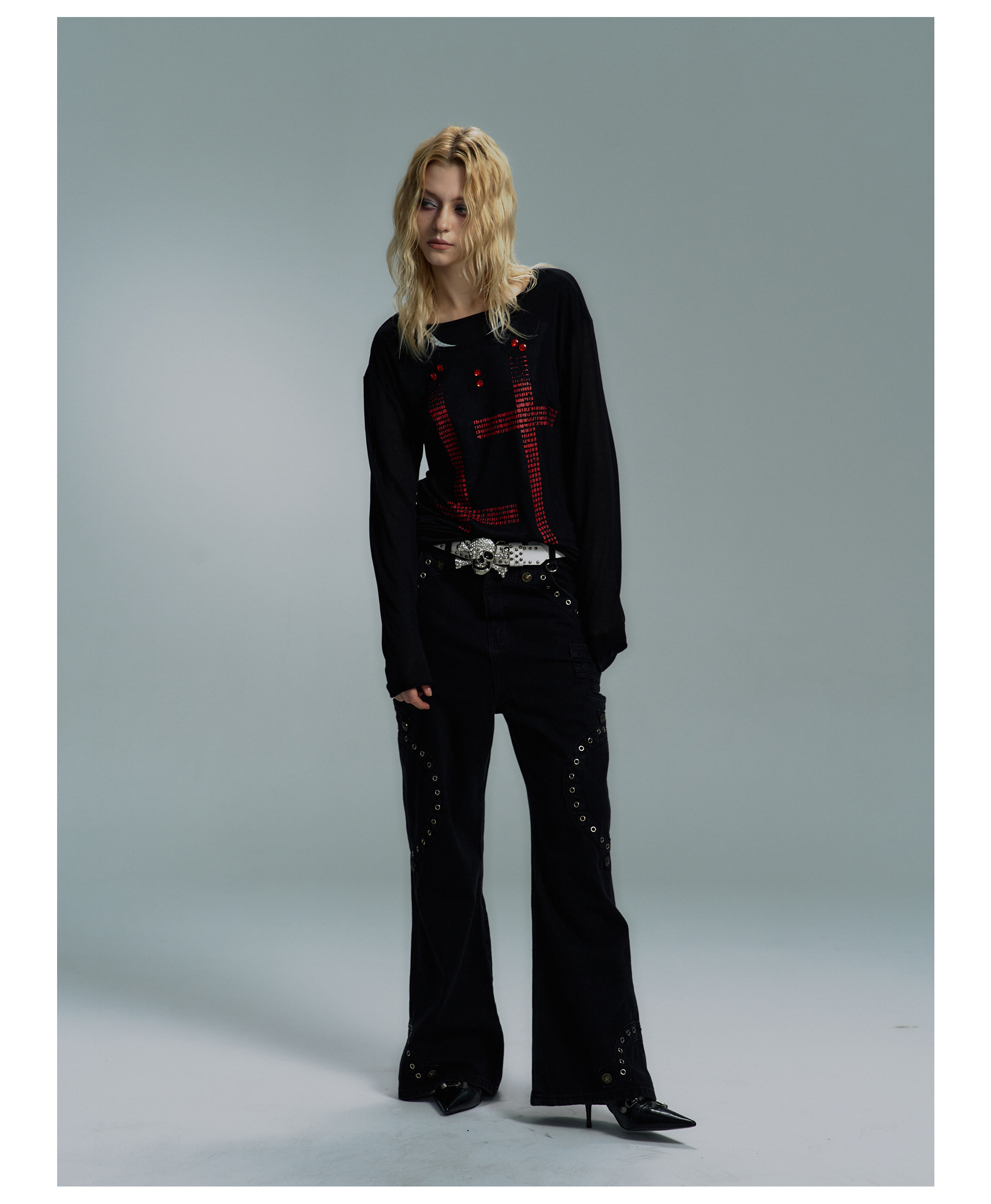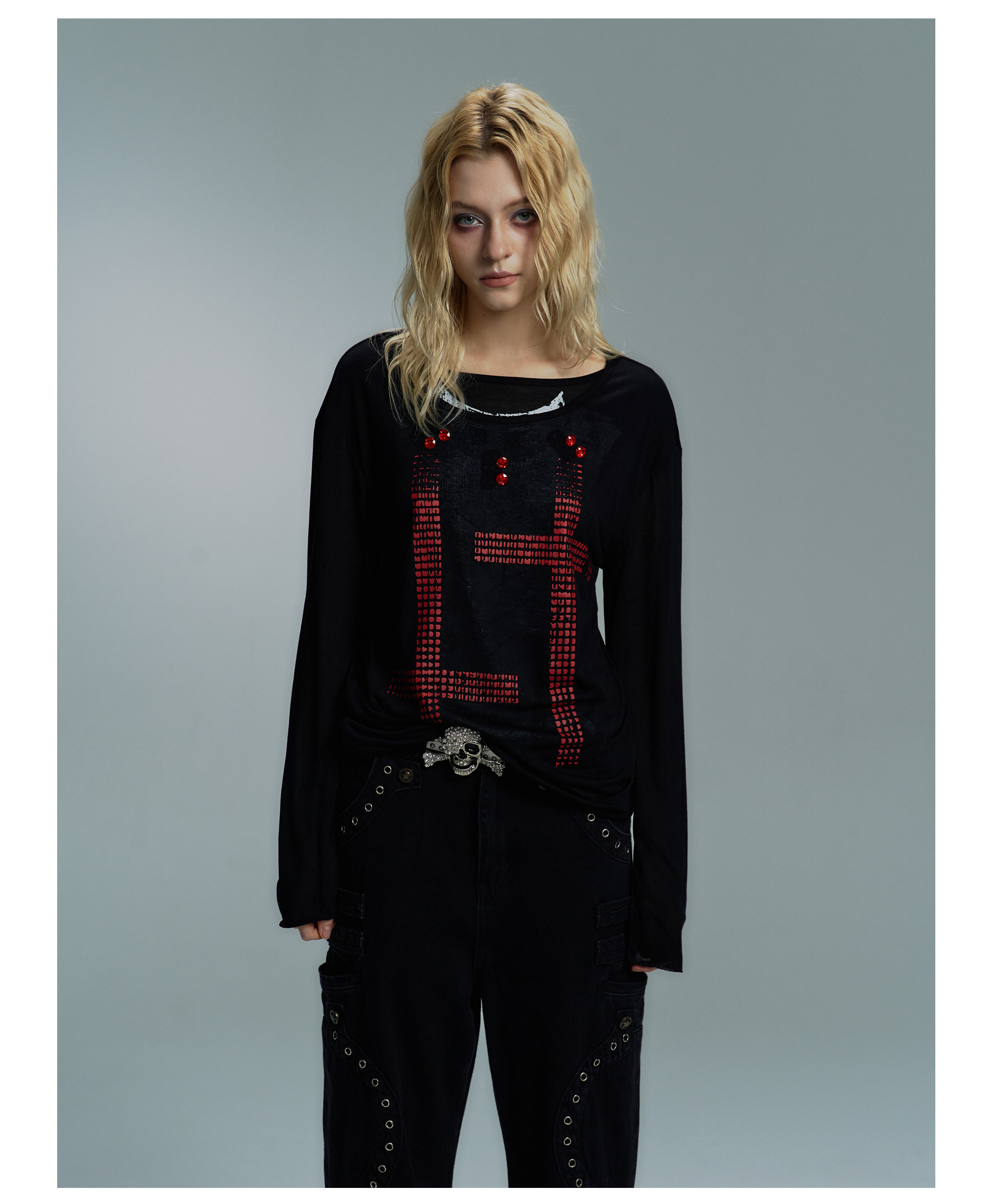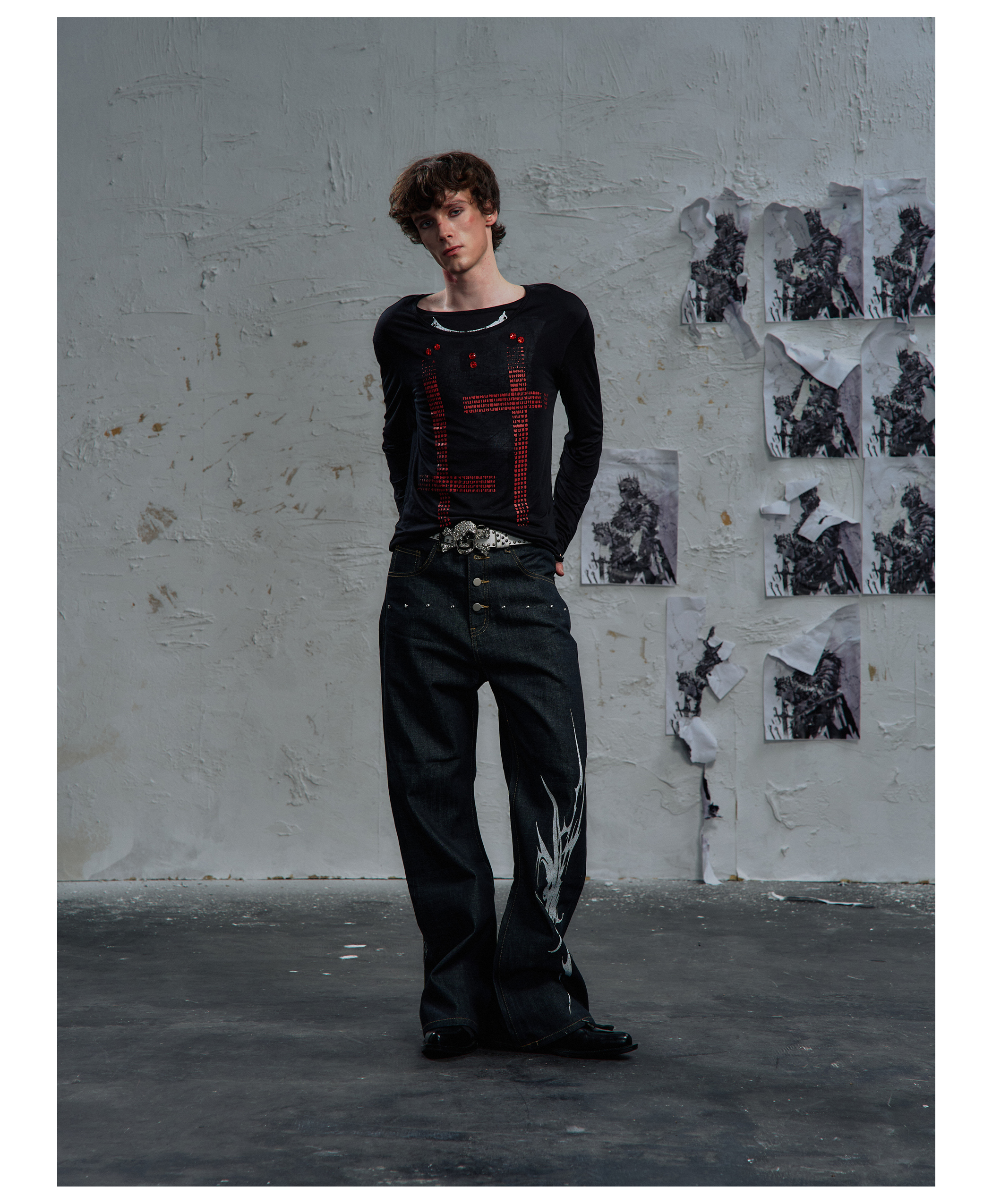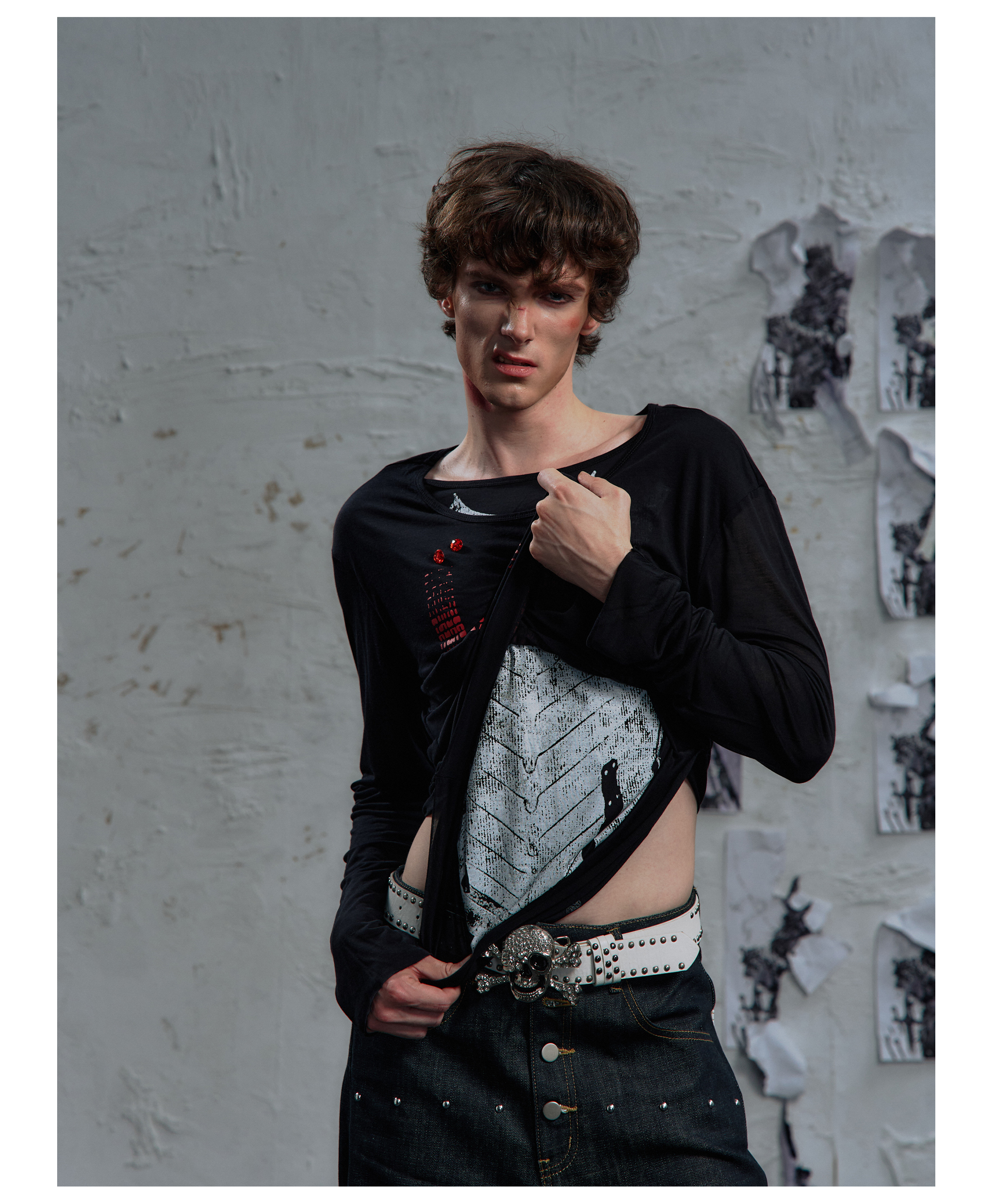 PAIKI「勝利女神號角」紅寶石盾牌十字架假兩件圓領衛衣男女秋冬