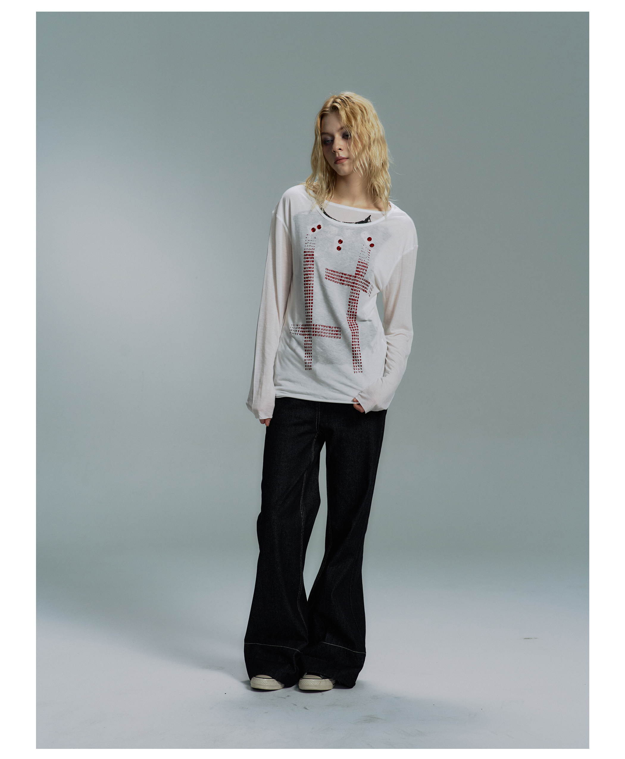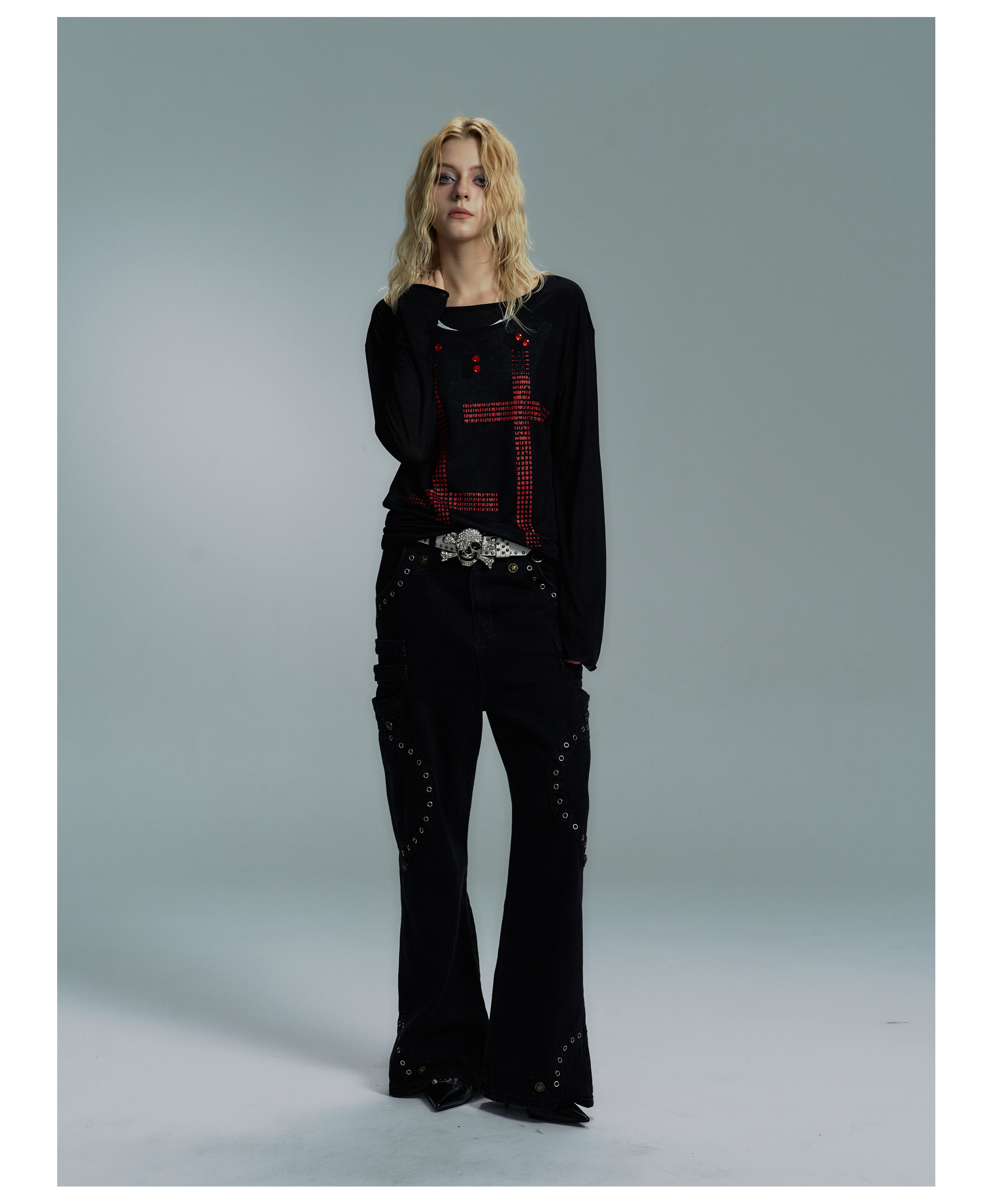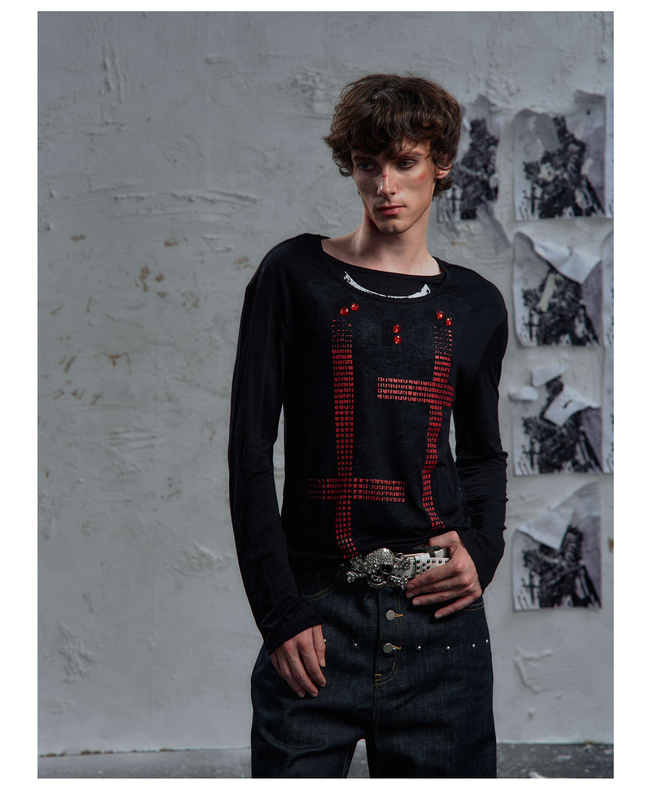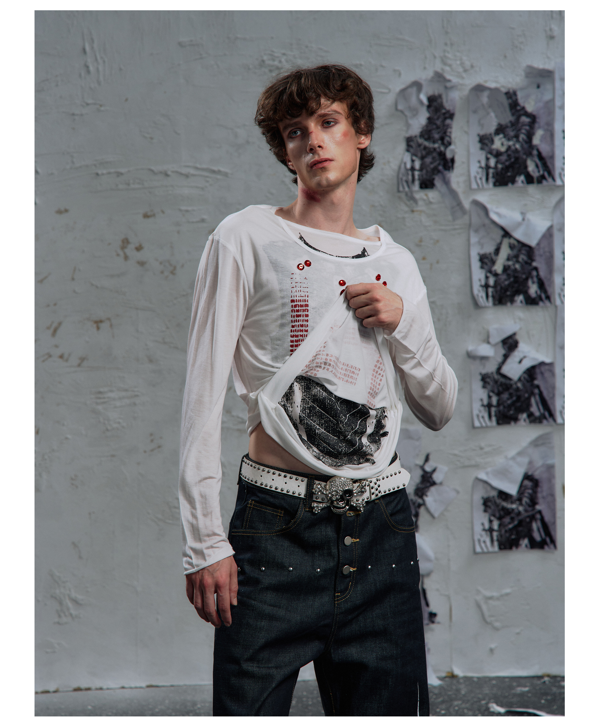 PAIKI「勝利女神號角」紅寶石盾牌十字架假兩件圓領衛衣男女秋冬