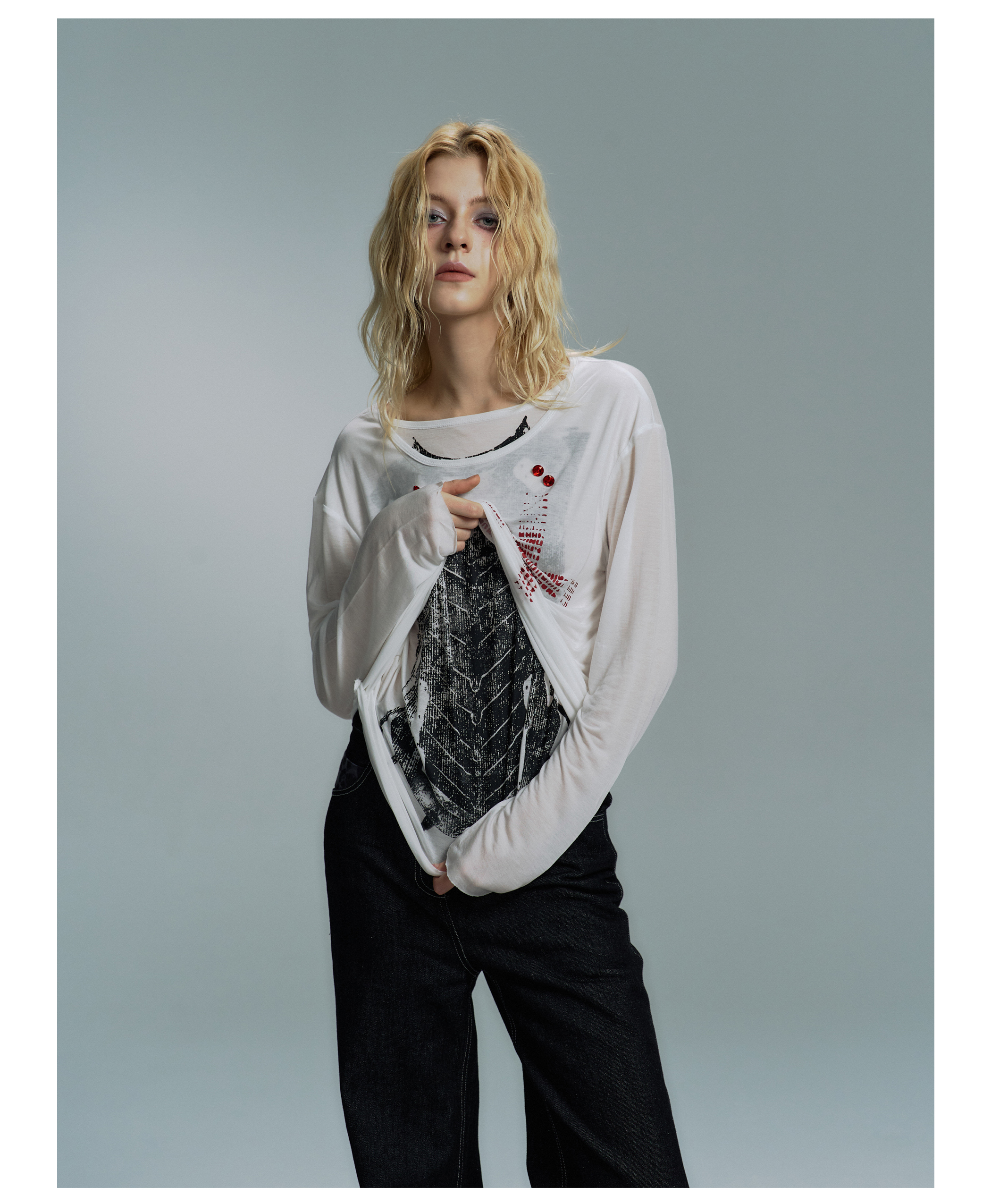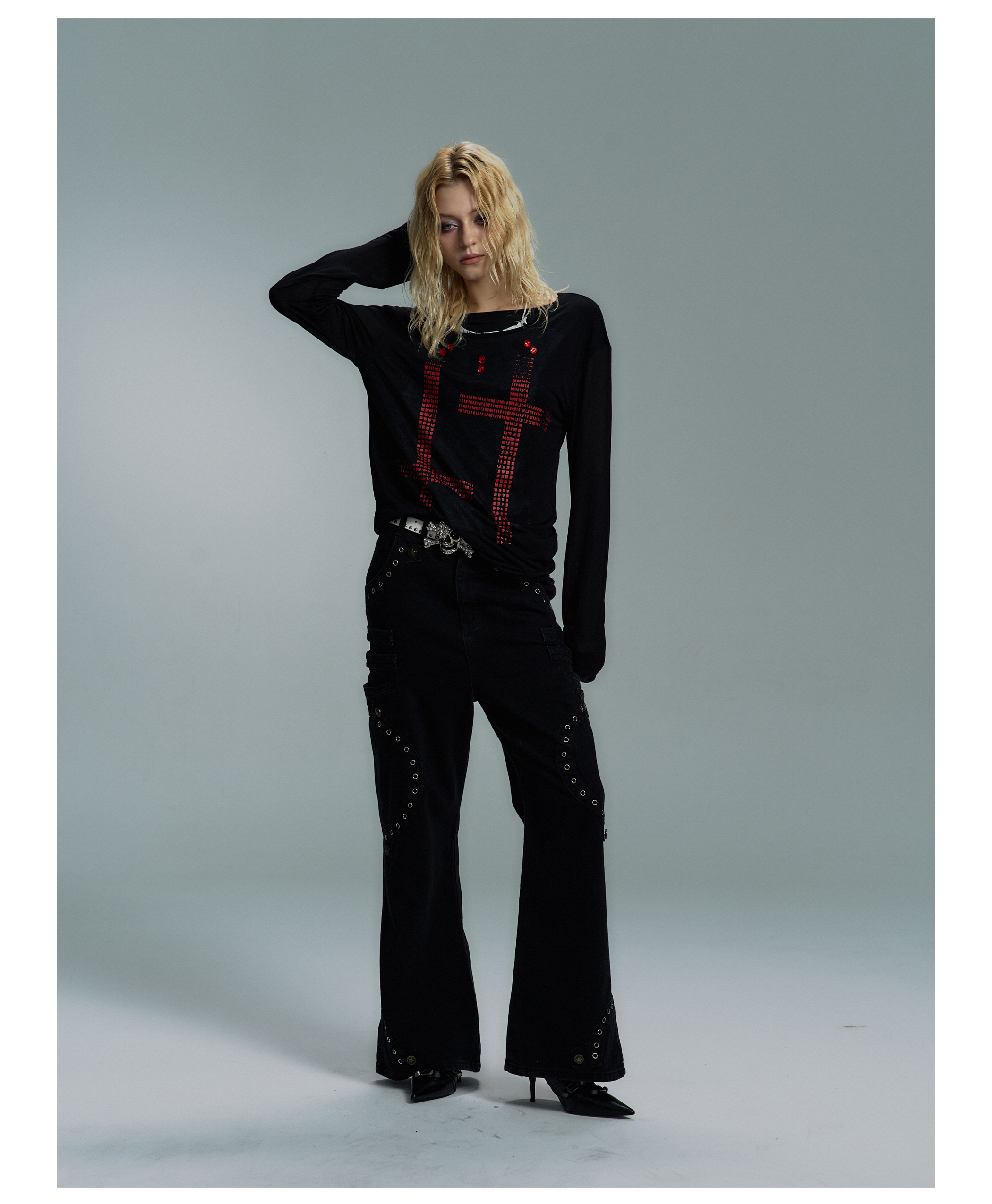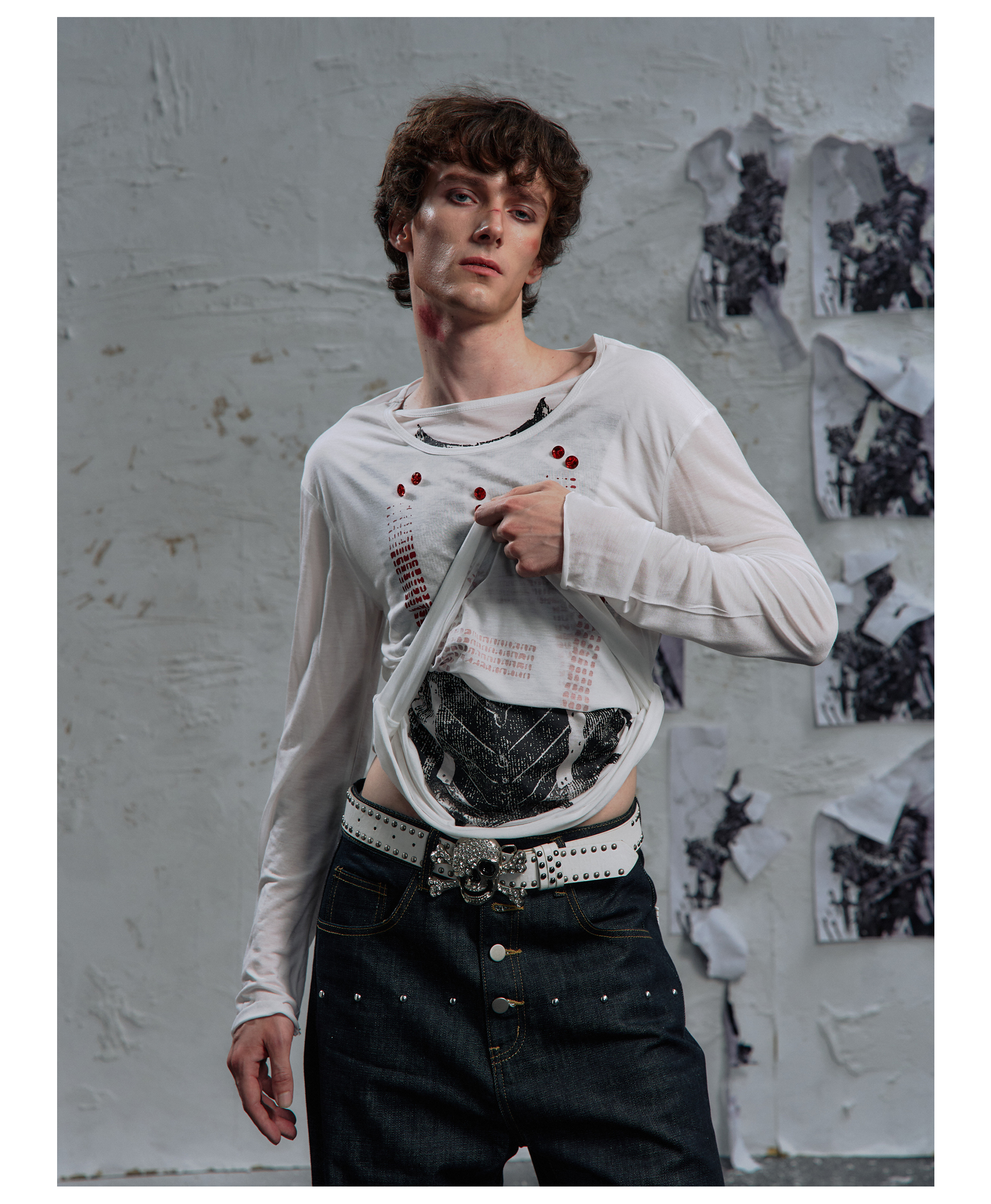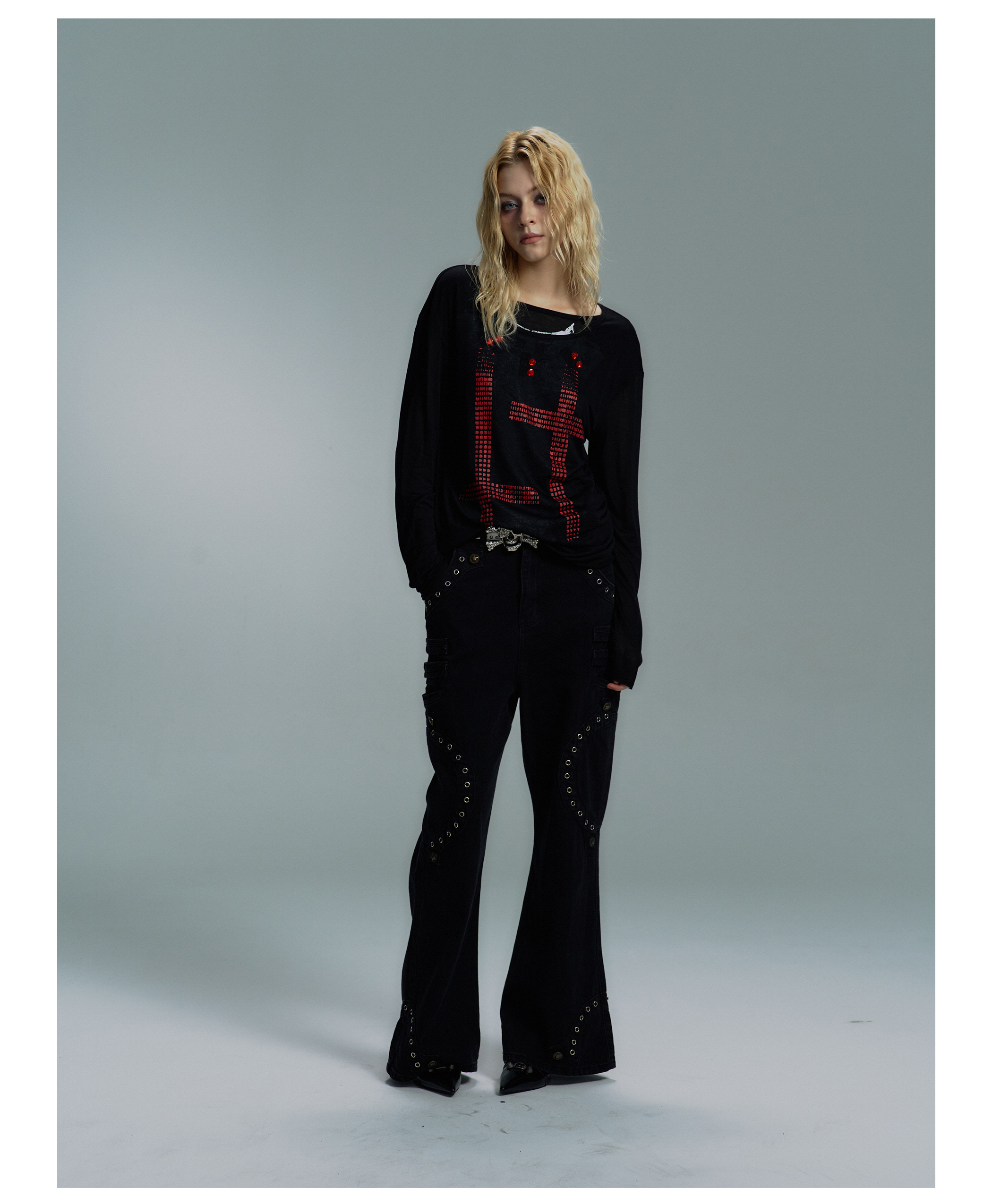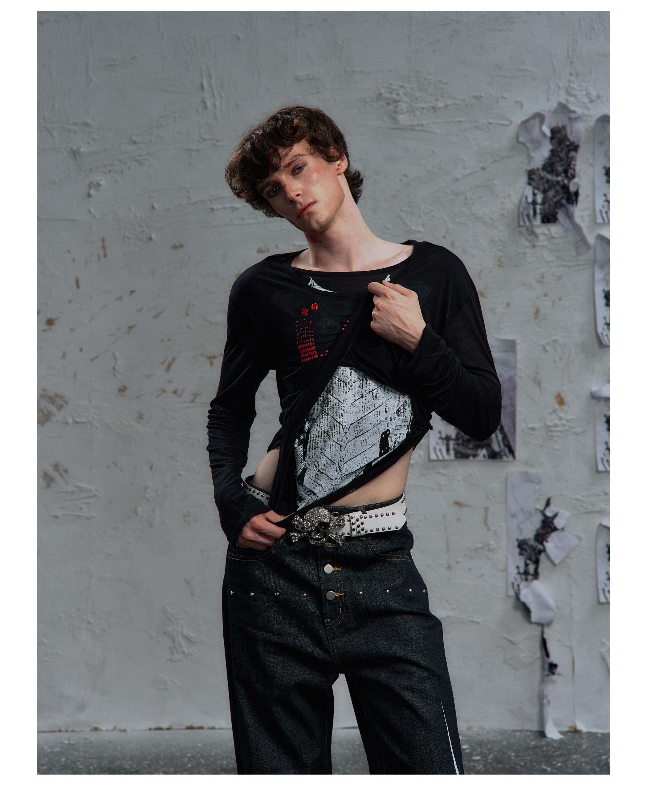 PAIKI「勝利女神號角」紅寶石盾牌十字架假兩件圓領衛衣男女秋冬