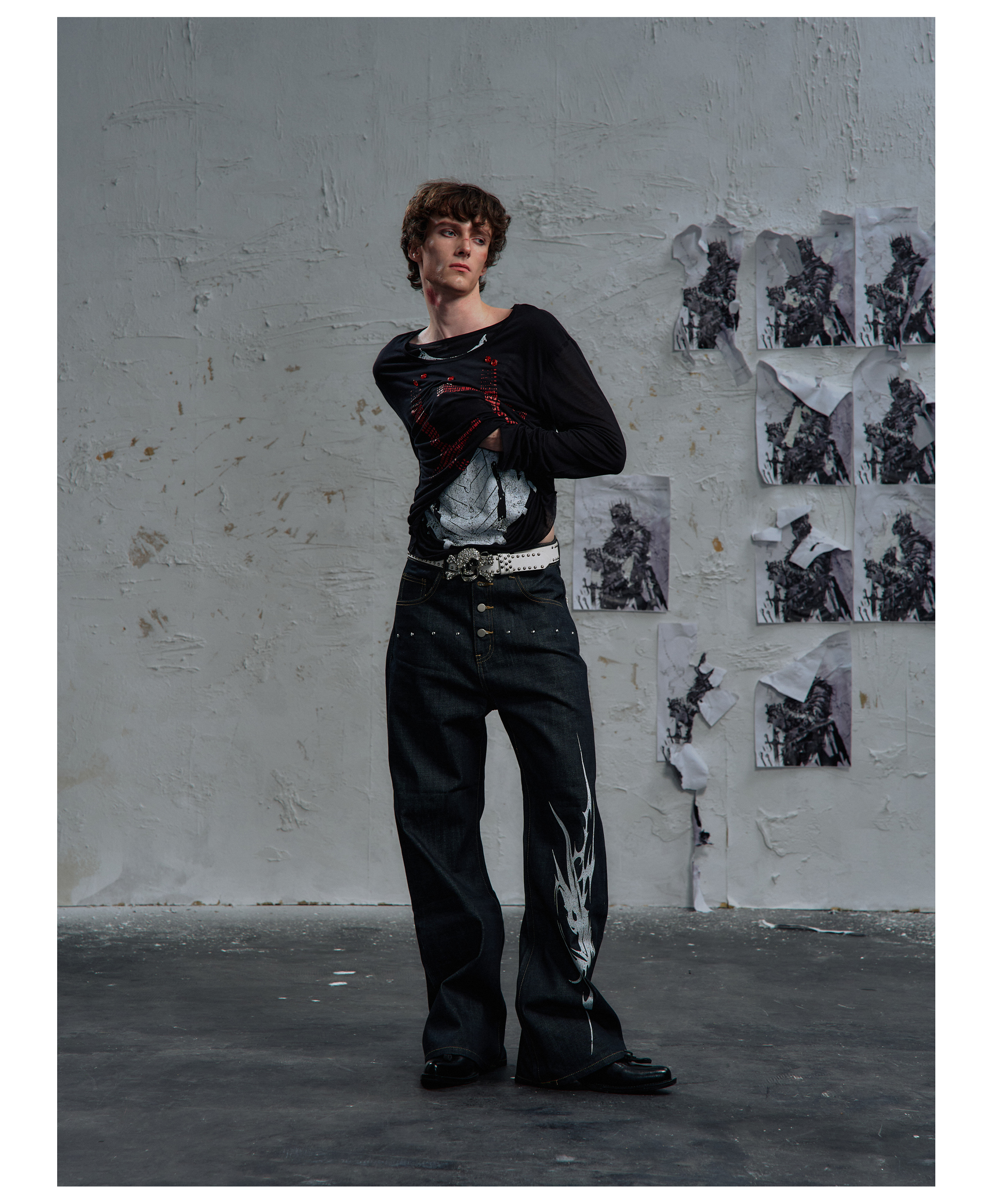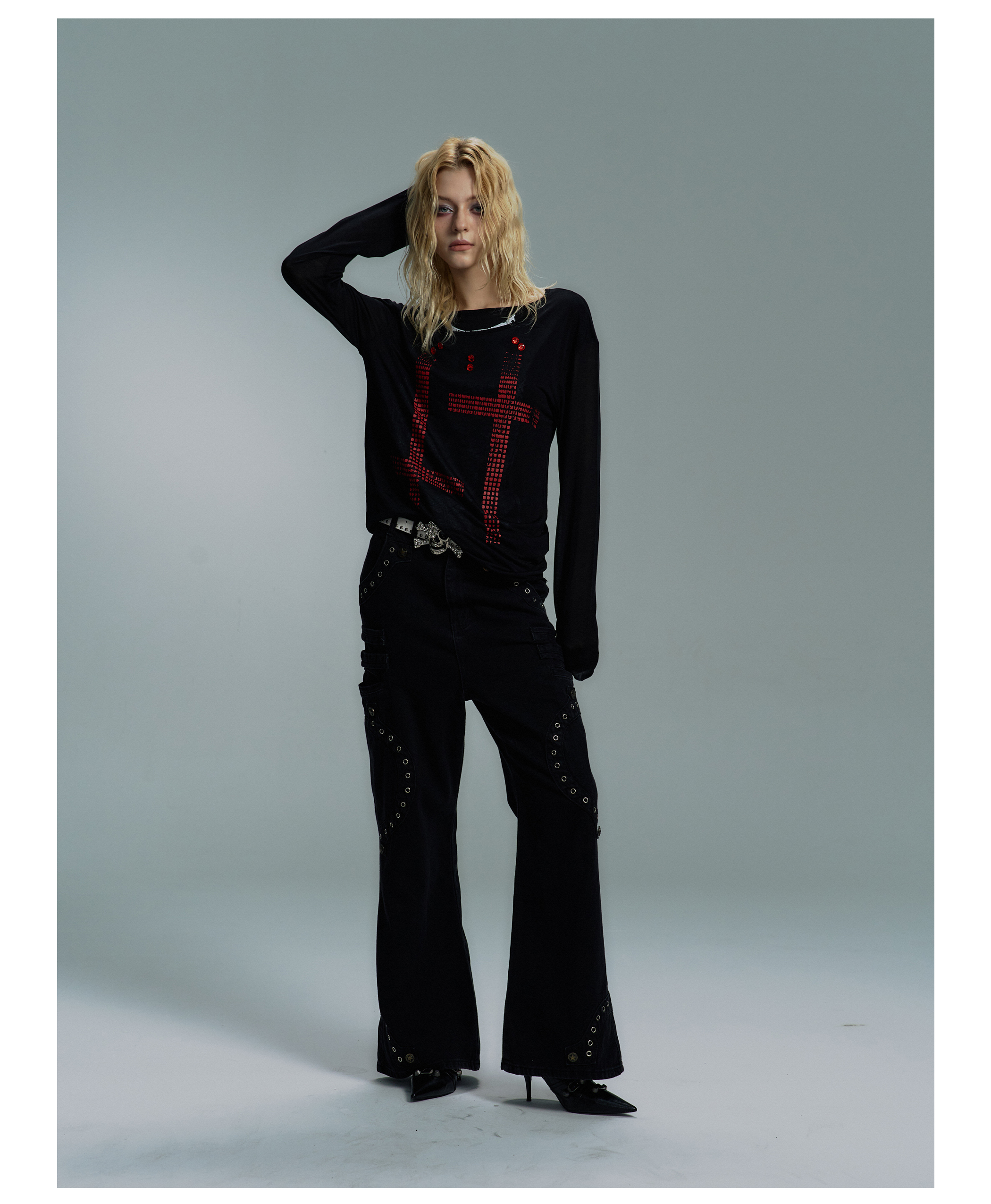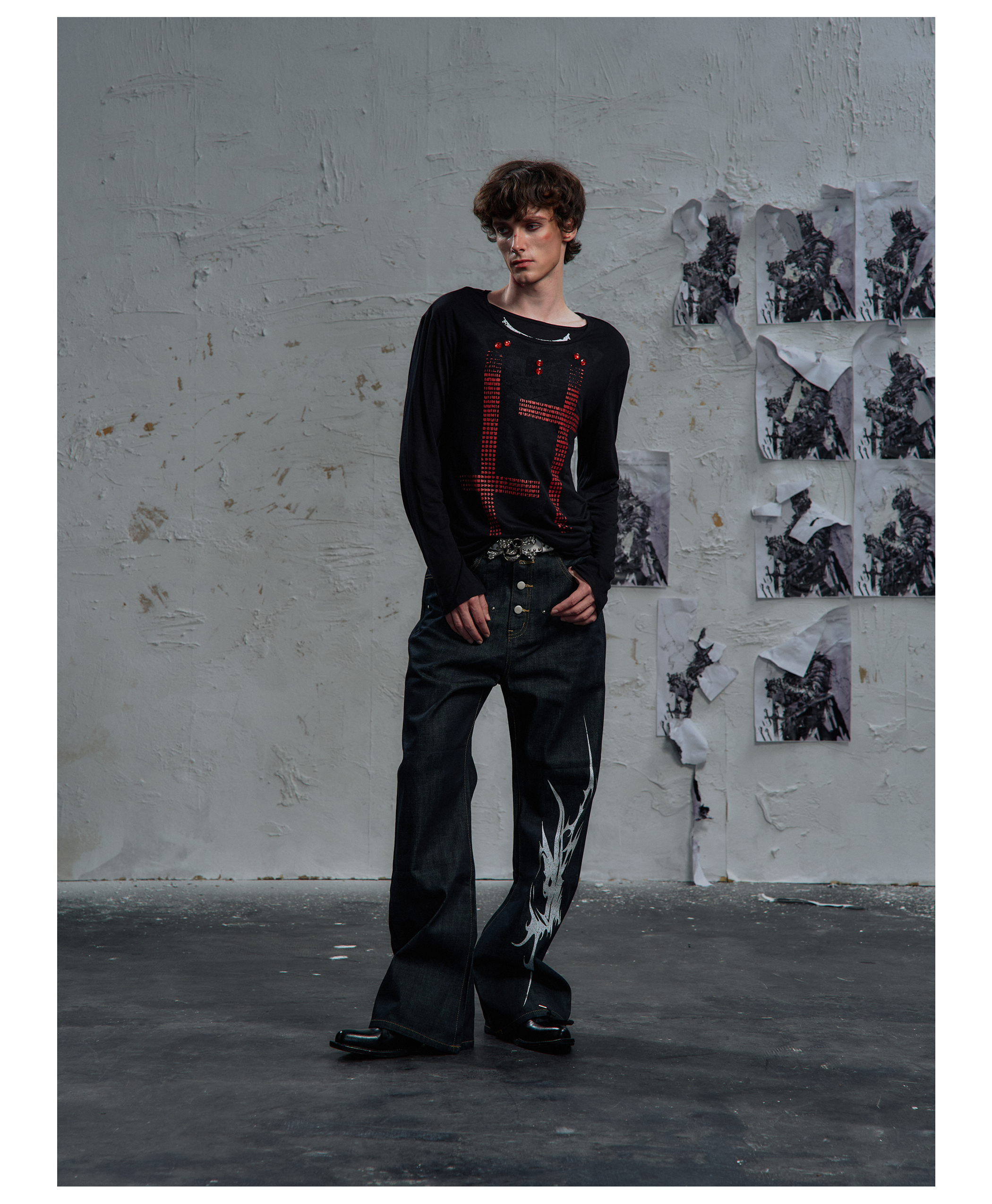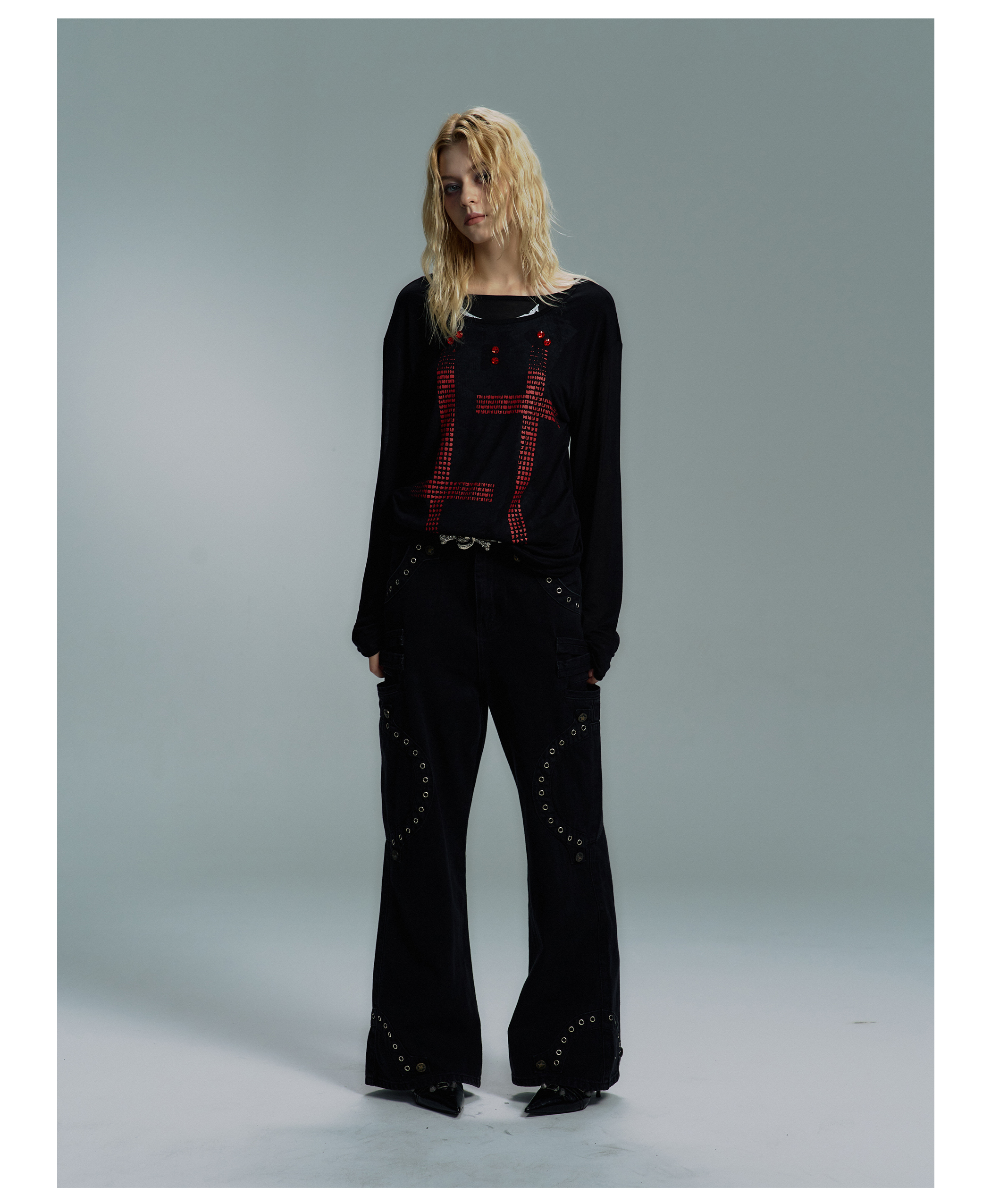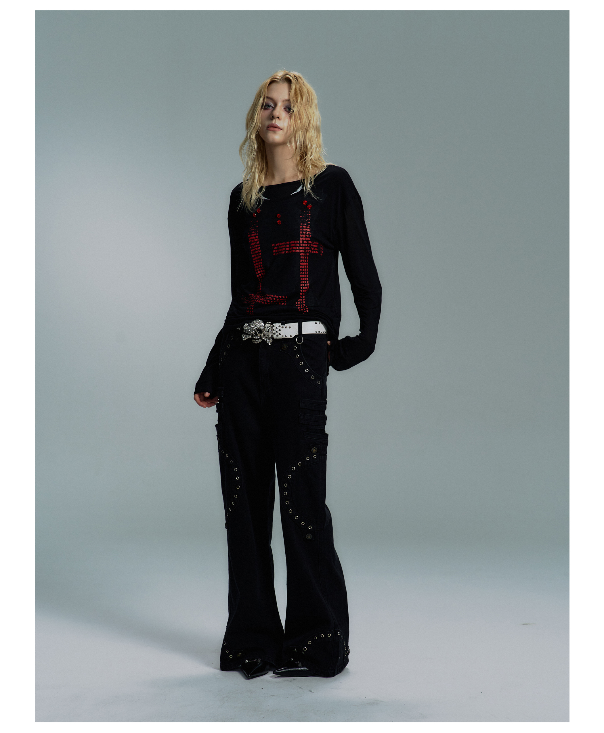 PAIKI「勝利女神號角」紅寶石盾牌十字架假兩件圓領衛衣男女秋冬