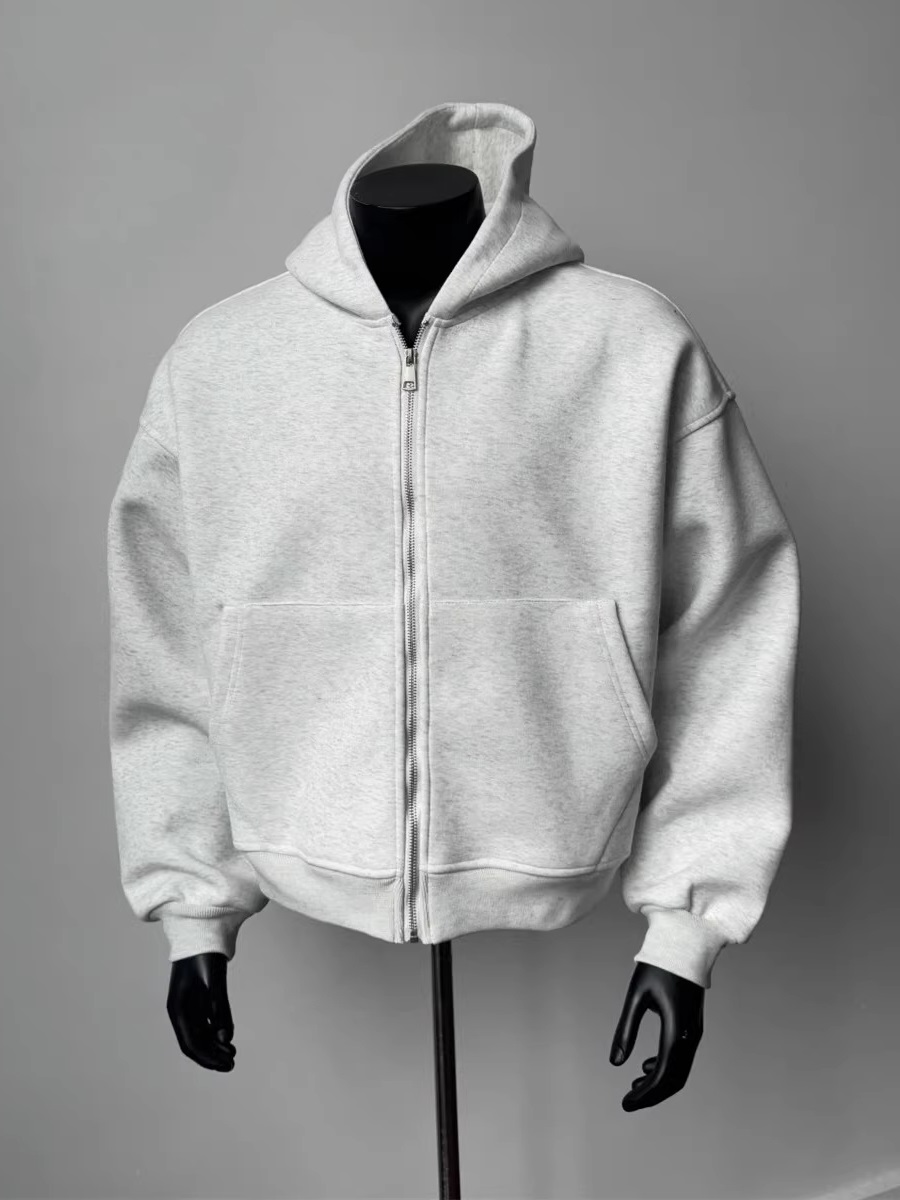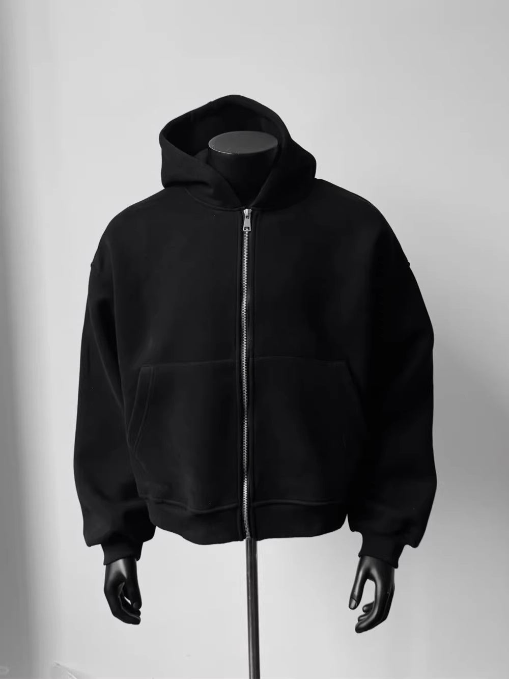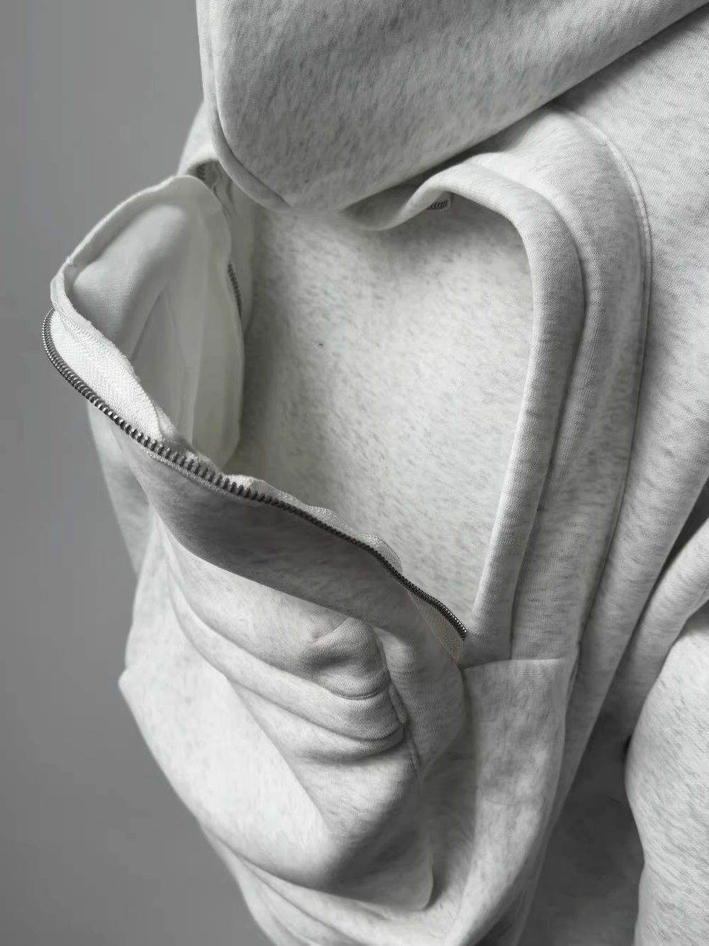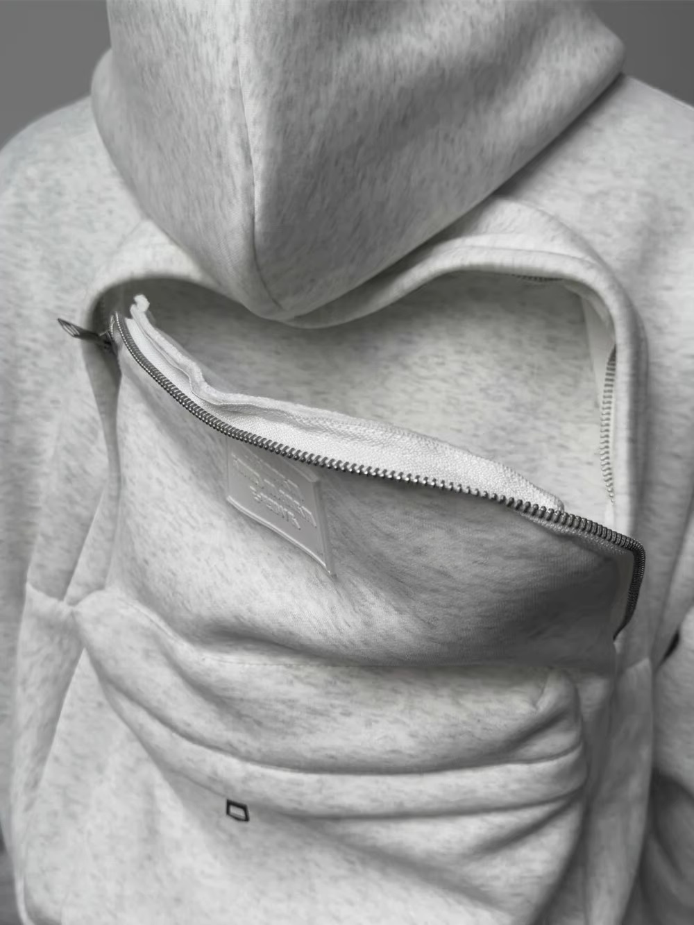 美式潮牌後背包一體開衫衛衣男春秋高級設計感寬松休閒連帽黑色外套