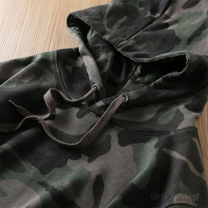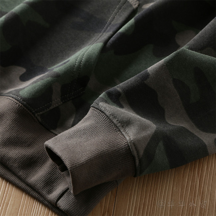 2025秋冬新款耐磨時尚寬松迷彩套頭連帽衛衣男士百搭休閒長袖上衣