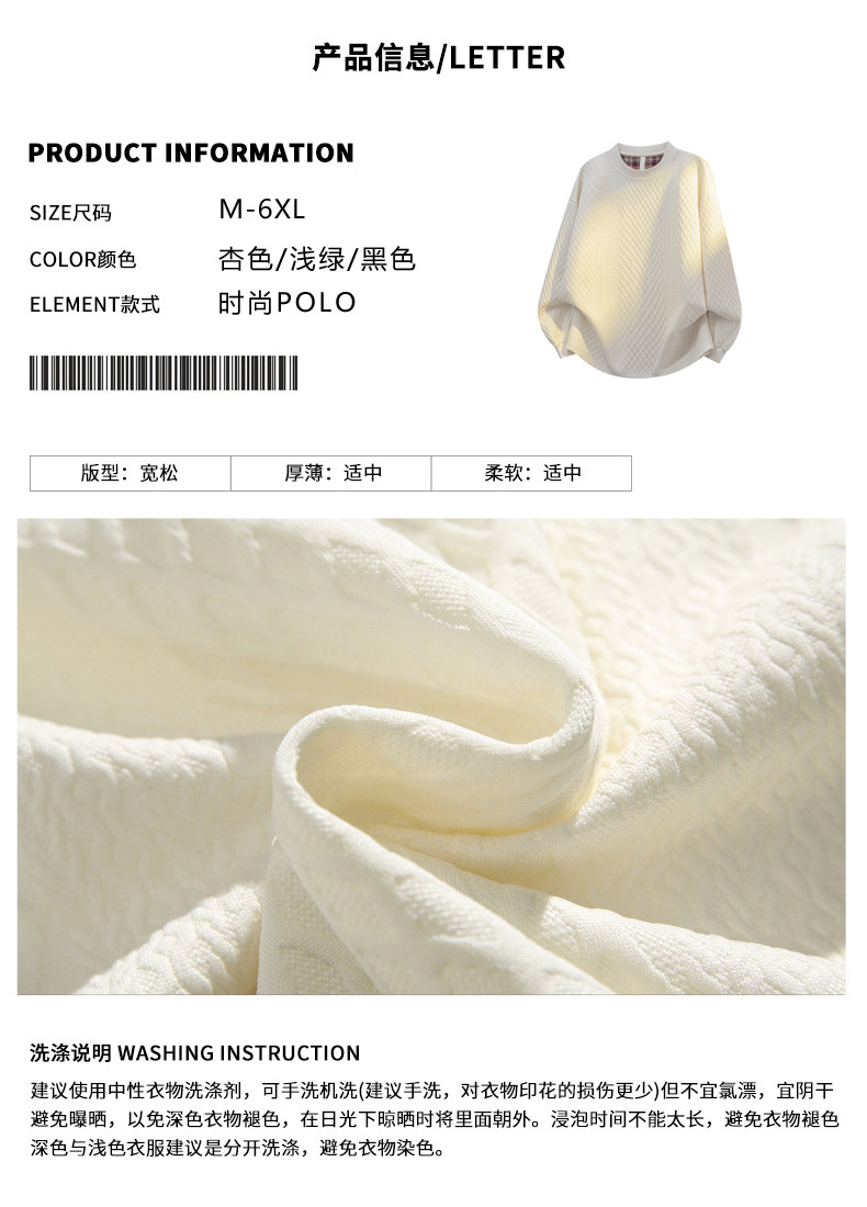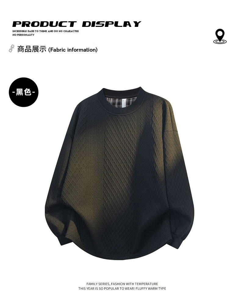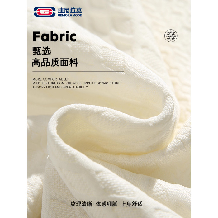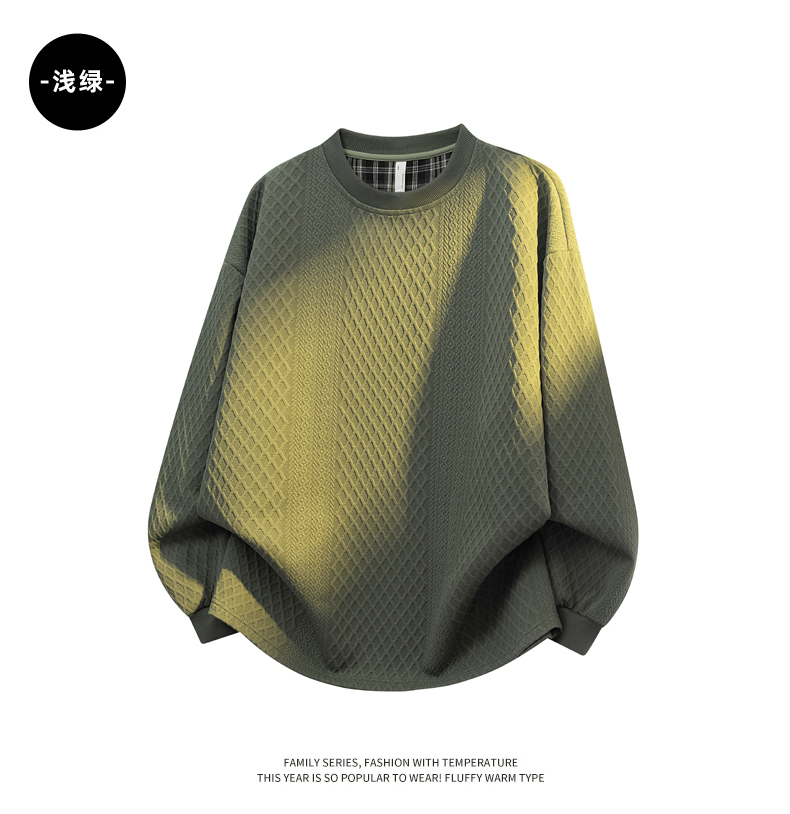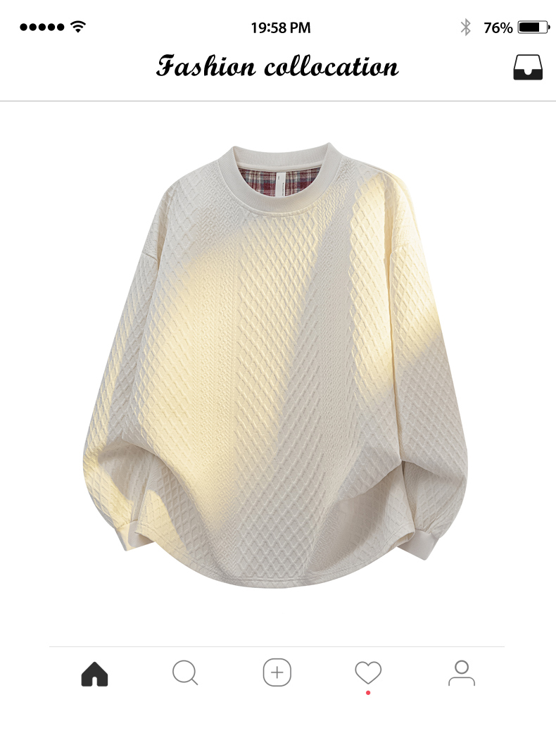 GENIOLAMODE杏色提花寬松長袖男T恤春秋新款百搭休閒圓領情侶衛衣