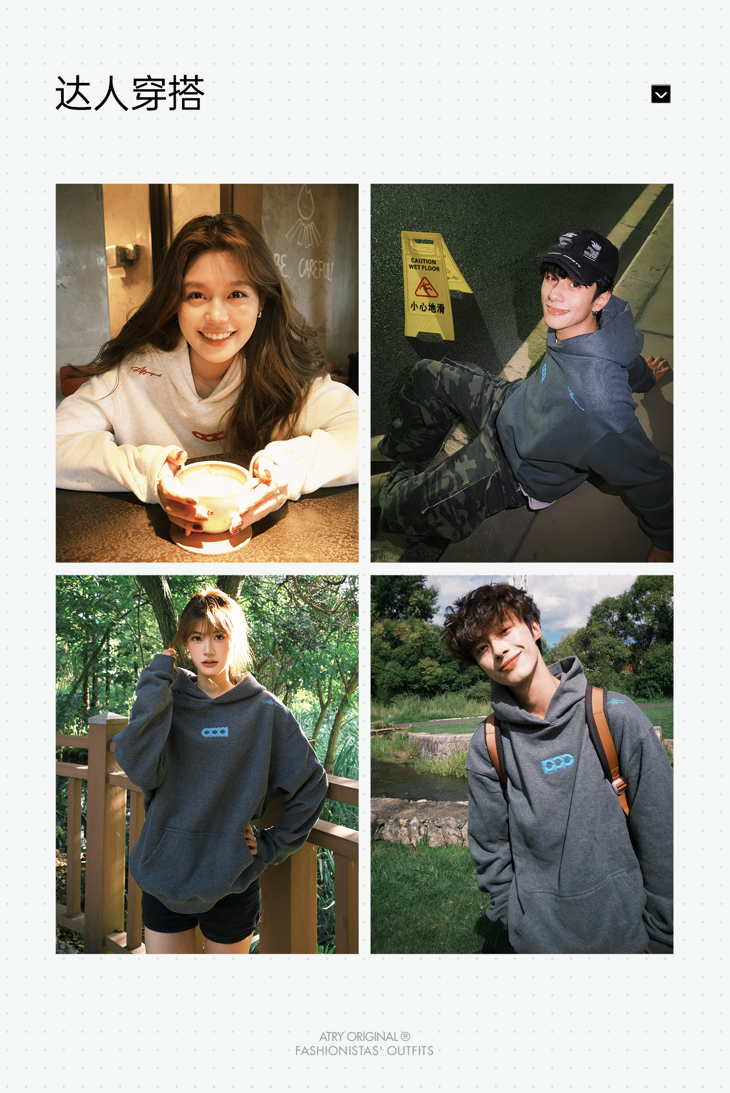 ATRY連帽衛衣男款春季潮牌美式寬鬆灰色重磅刺綉情侶裝帽衫外套女