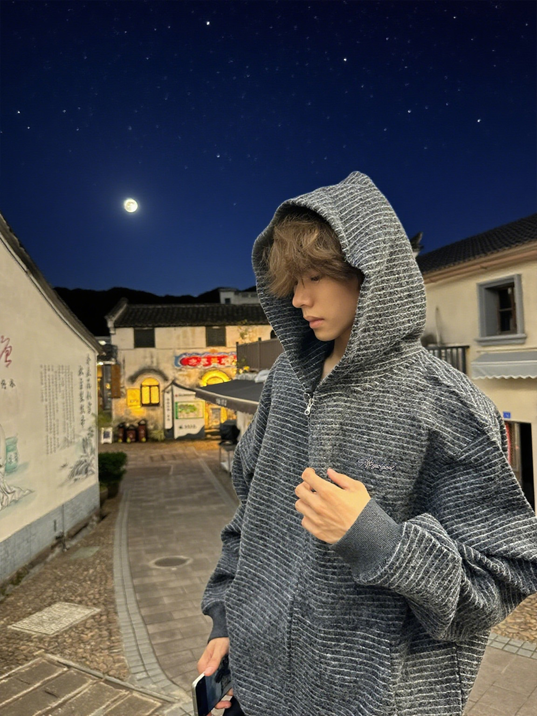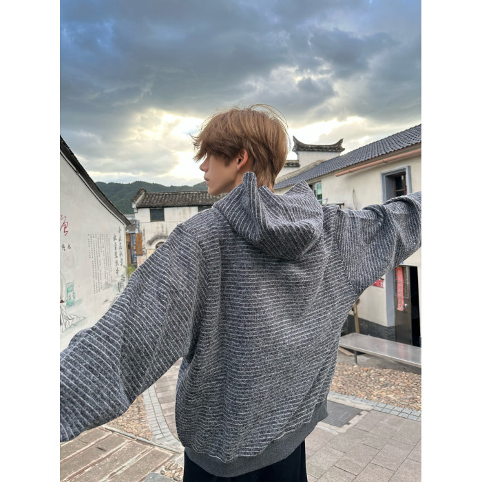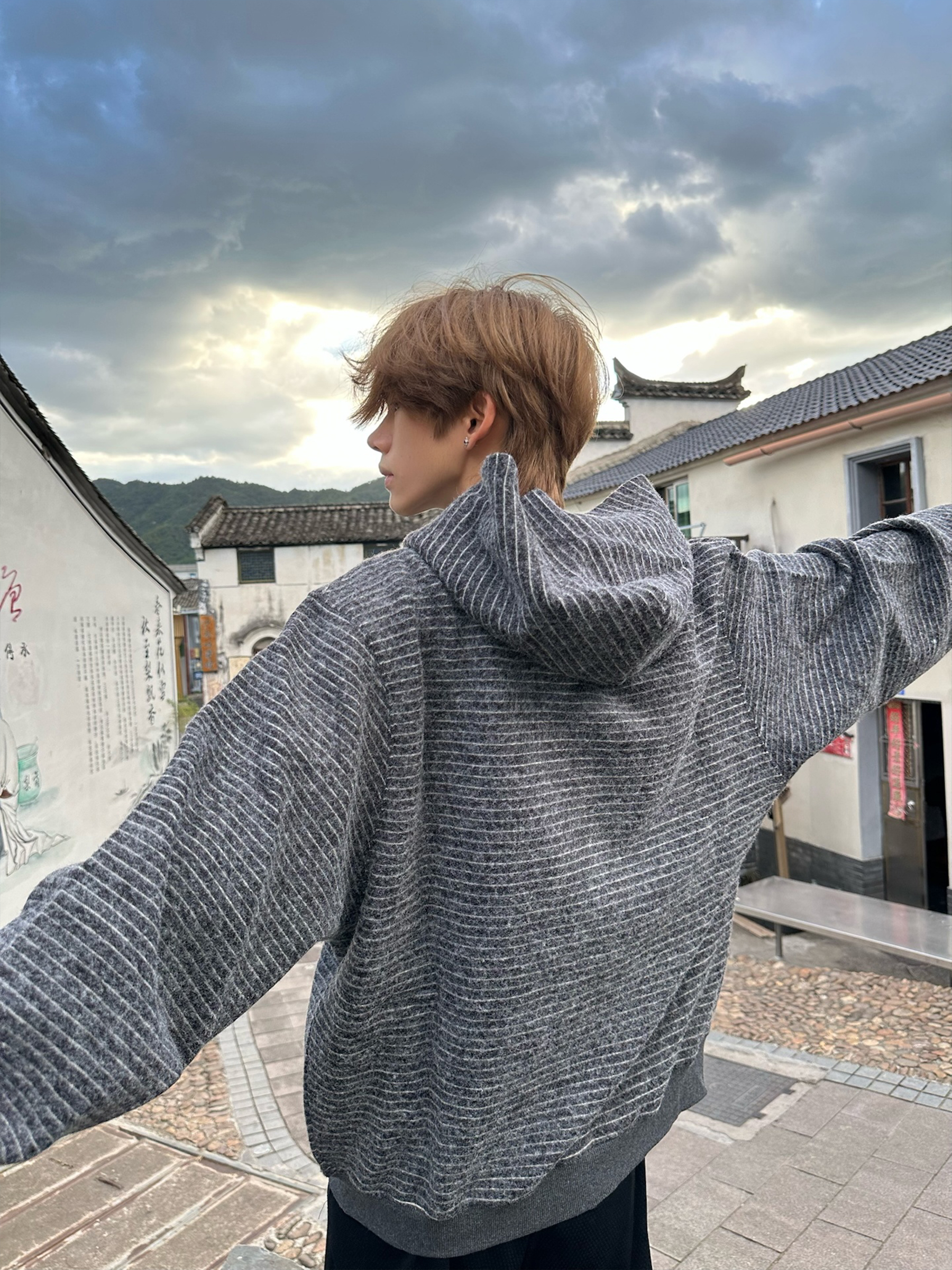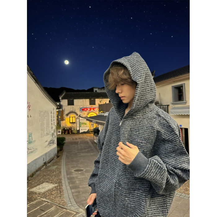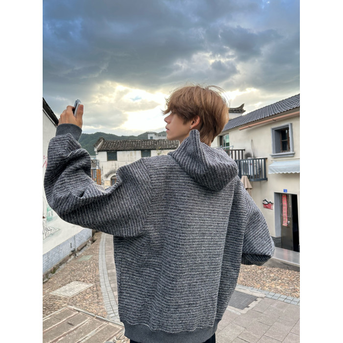 美式高街條紋連帽衛衣男款秋季潮牌寬松情侶裝青少年加厚純棉外套