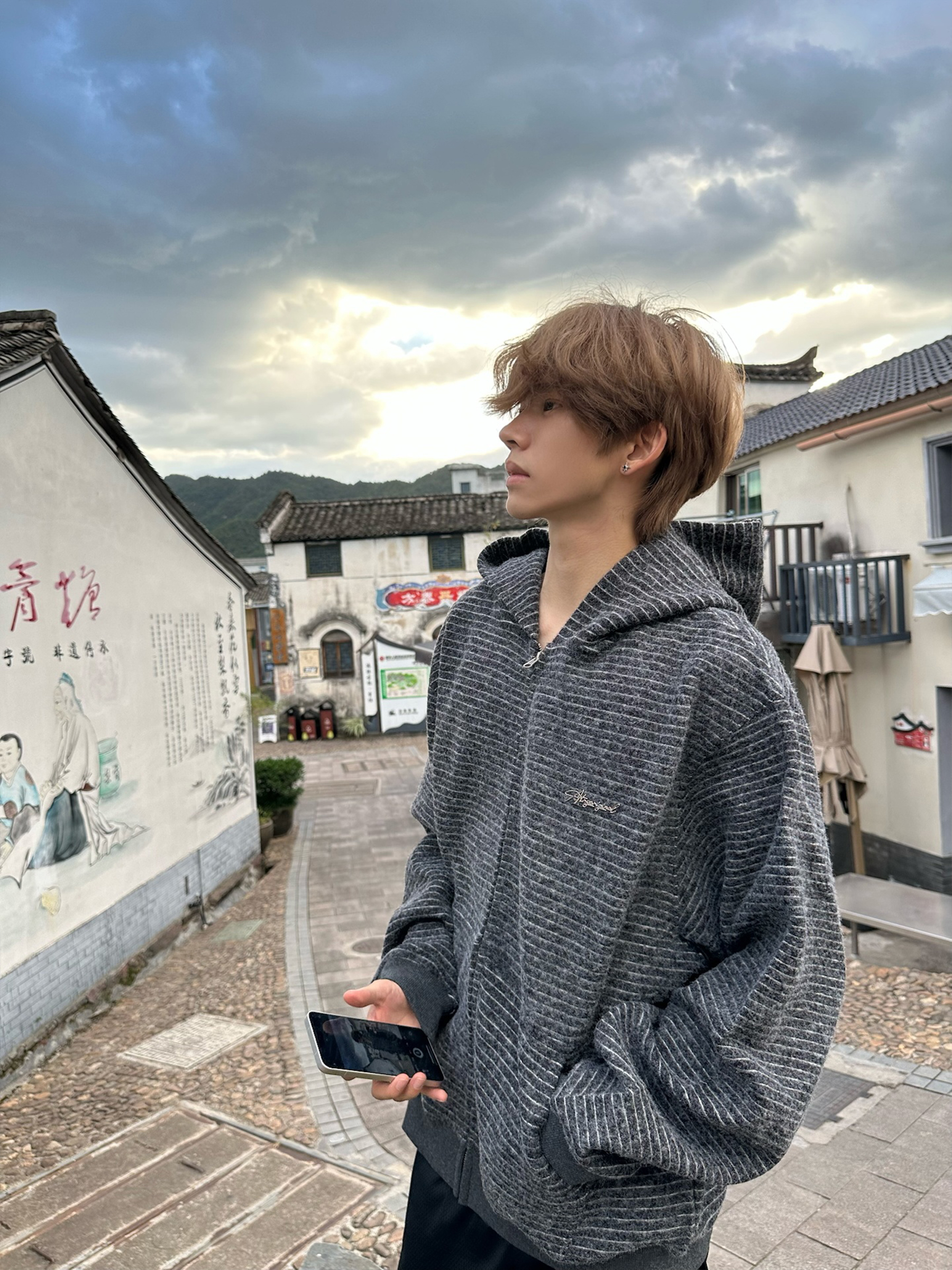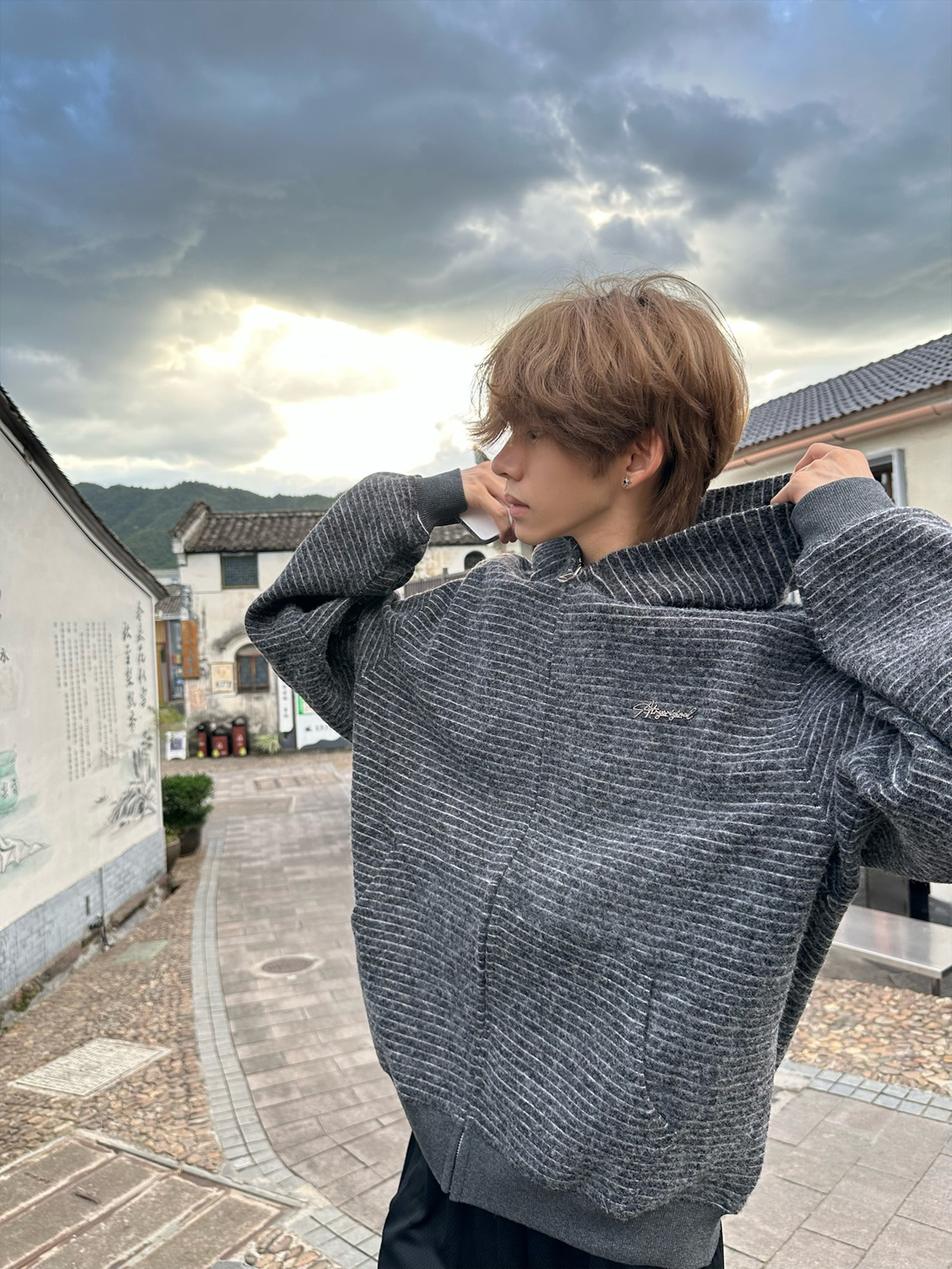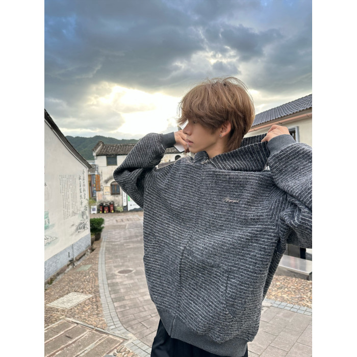 美式高街條紋連帽衛衣男款秋季潮牌寬松情侶裝青少年加厚純棉外套