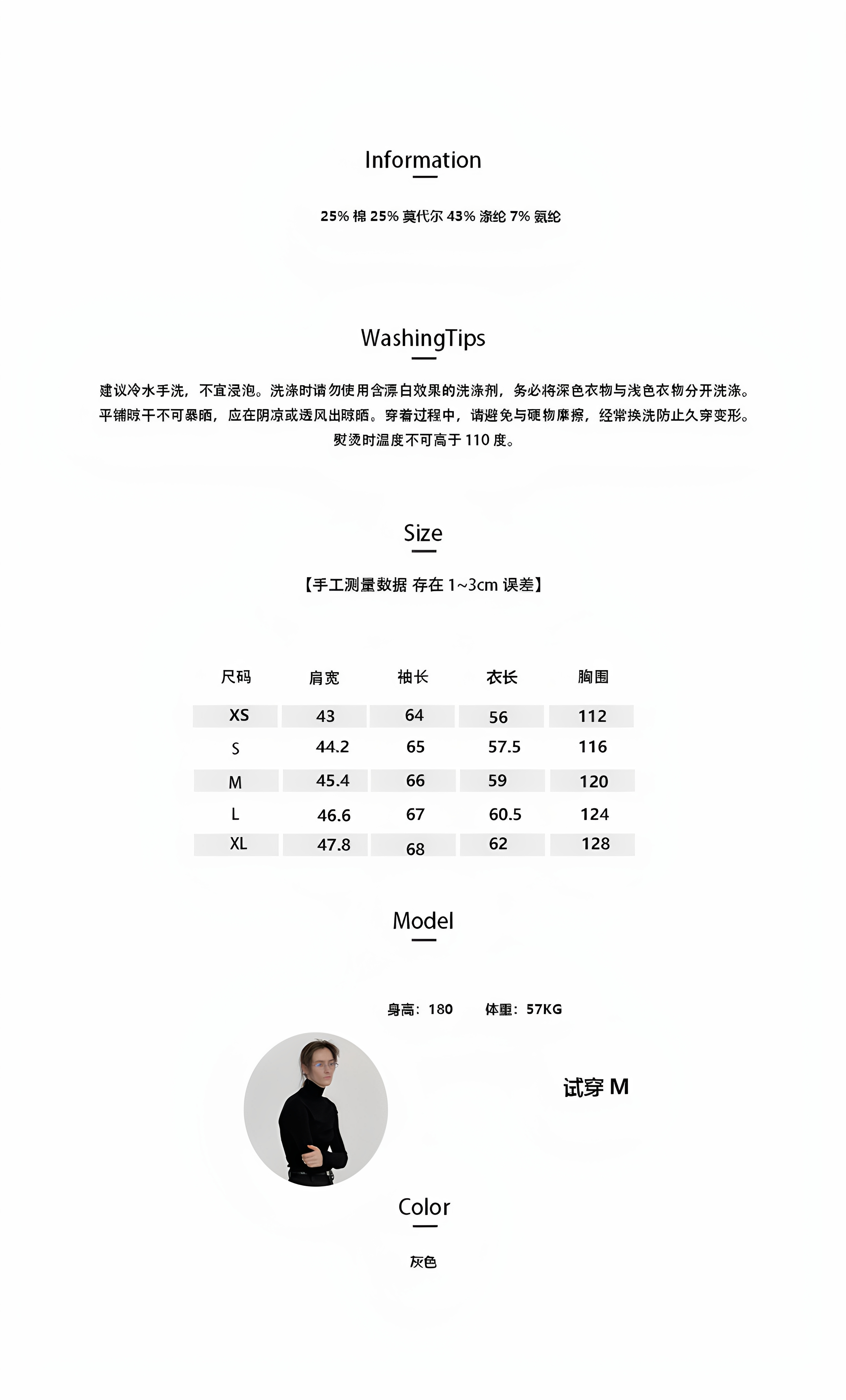 材質成分 聚對苯二甲酸乙二酯(滌綸)43% 棉25% 莫代爾纖維(莫代爾)25% 聚氨酯彈性纖維(氨綸)7%