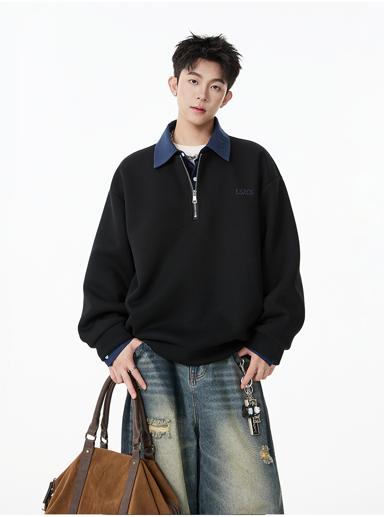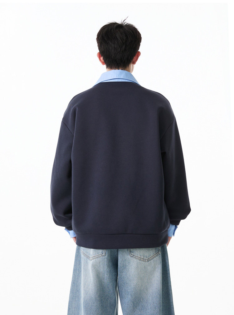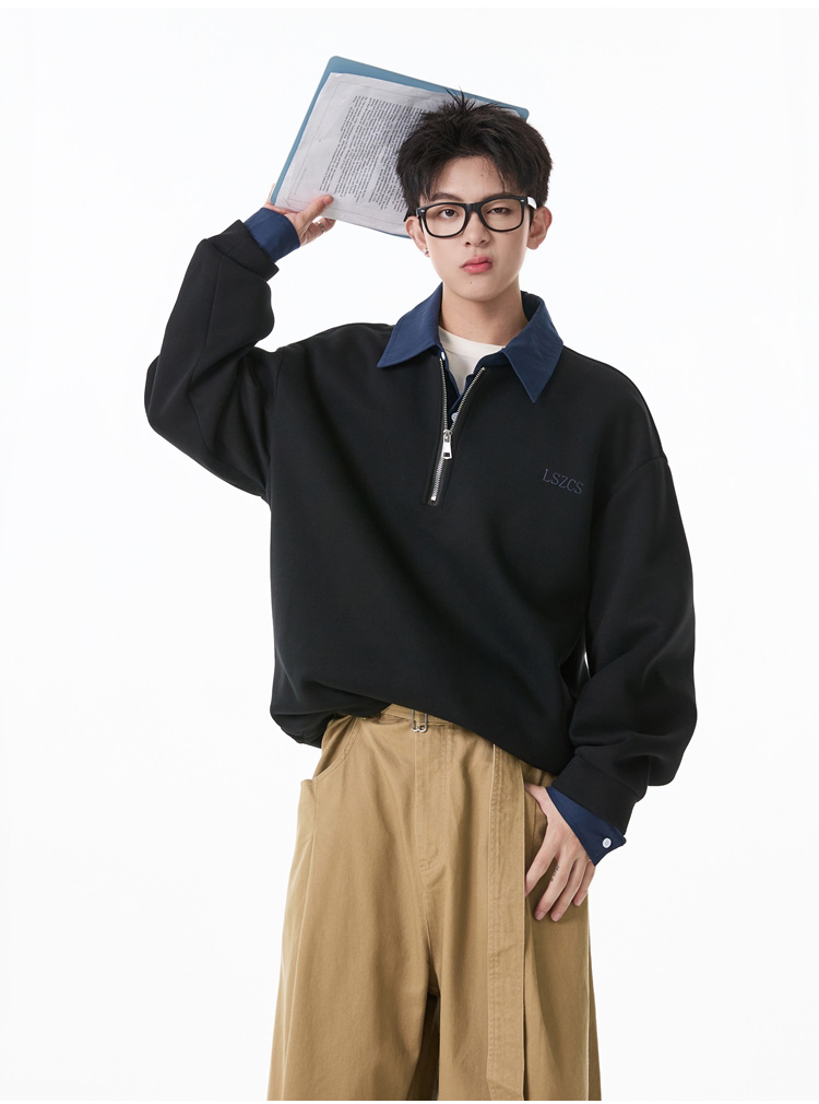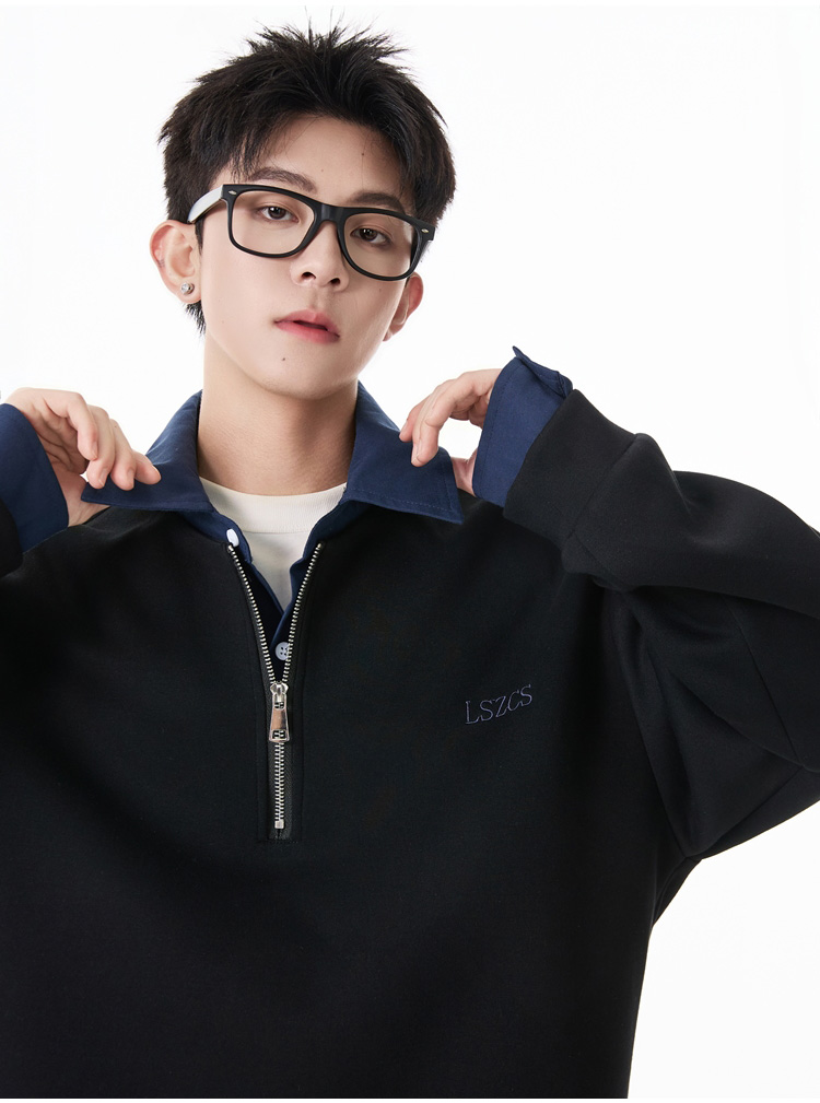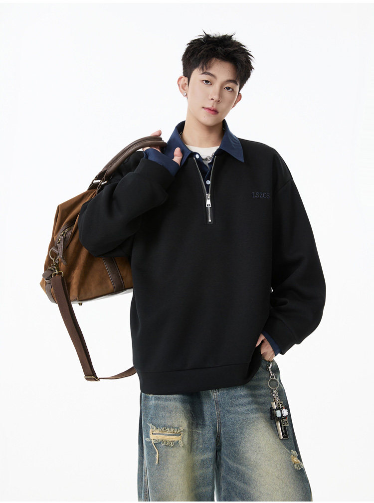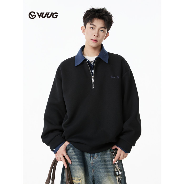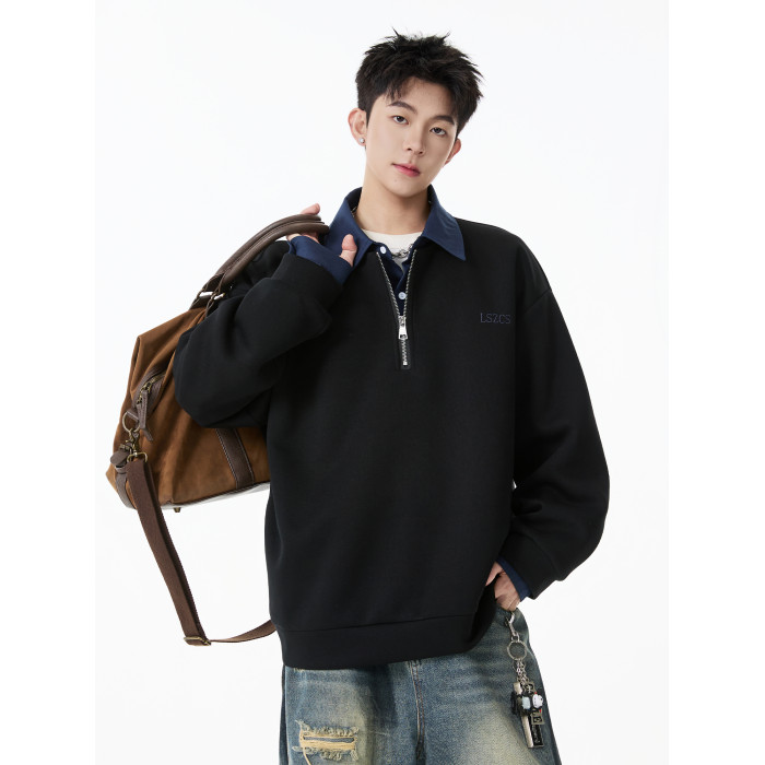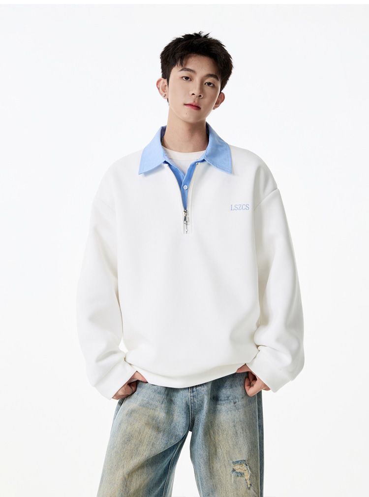 美式假兩件POLO衫半拉鍊衛衣男款春秋冬季潮牌寬松休閒男生上衣服