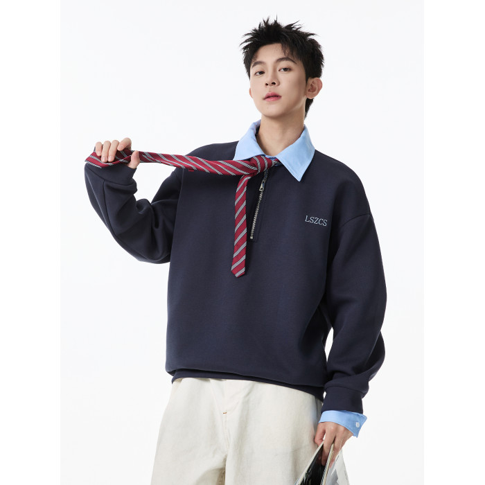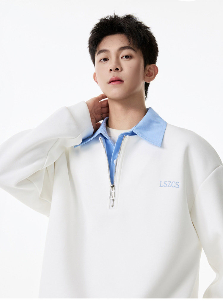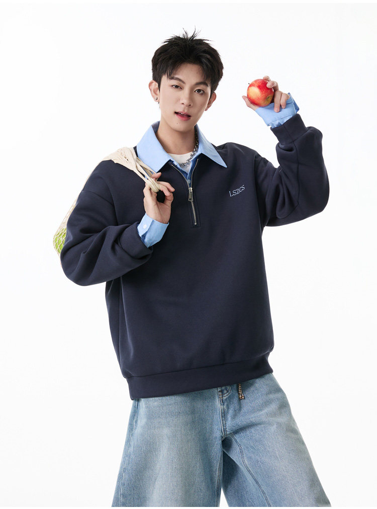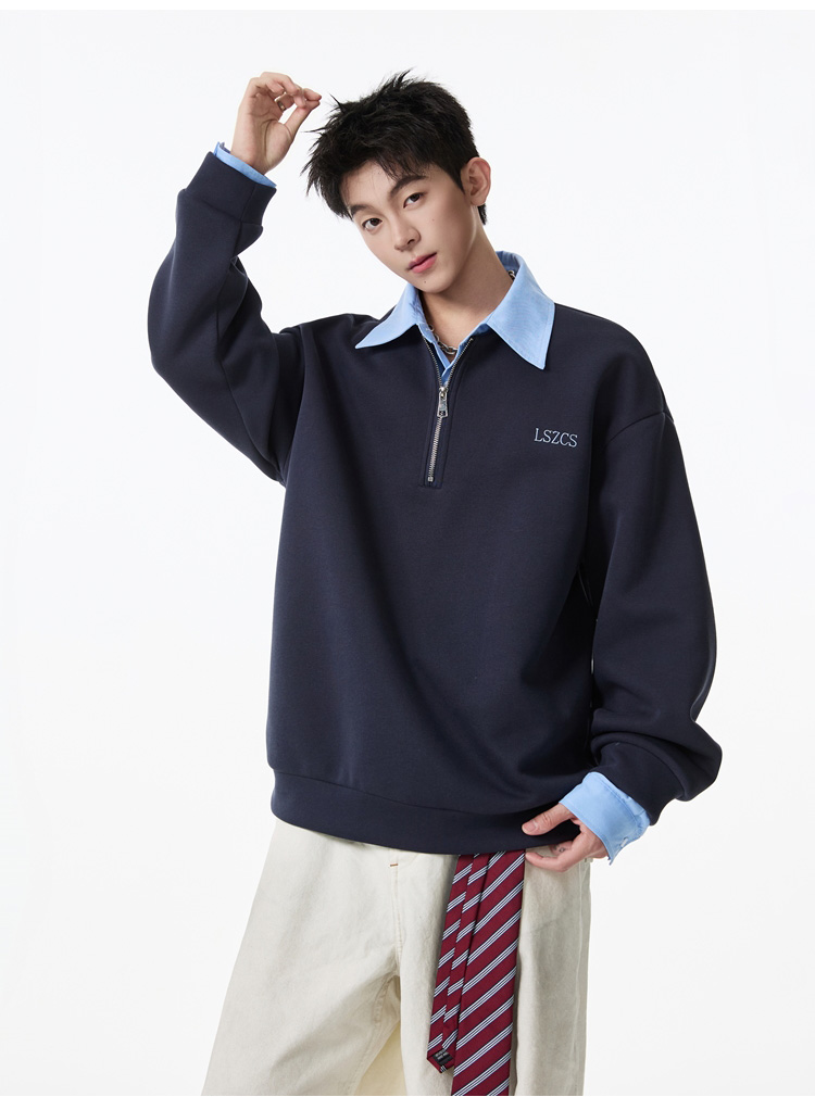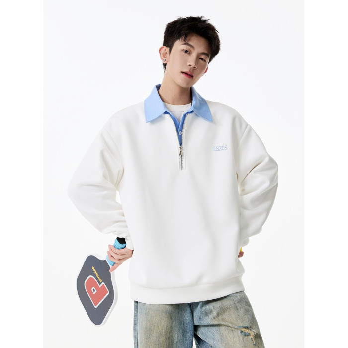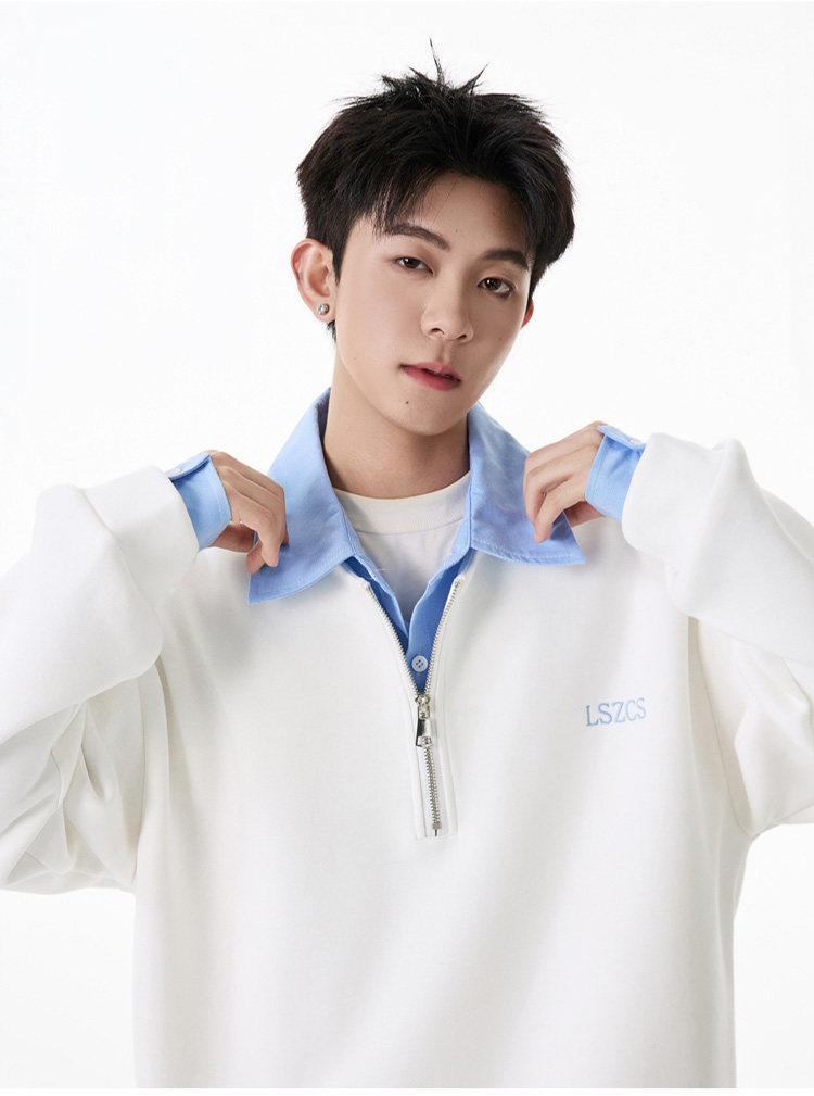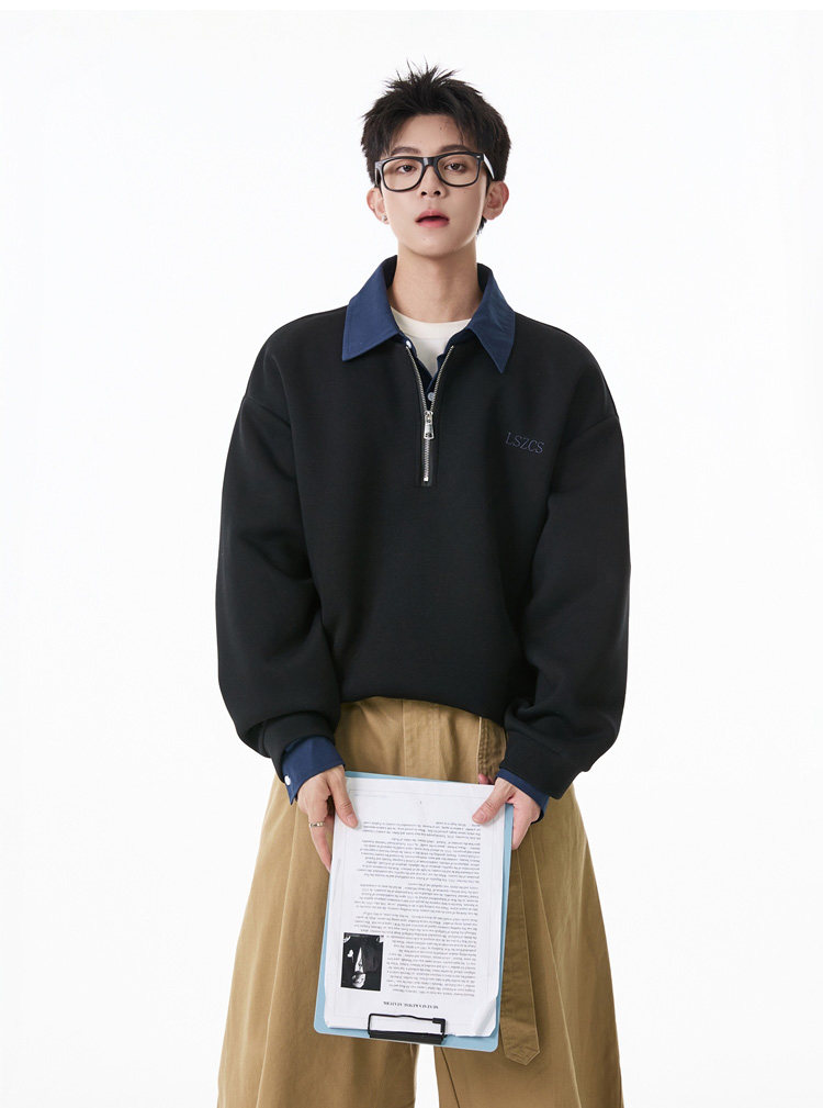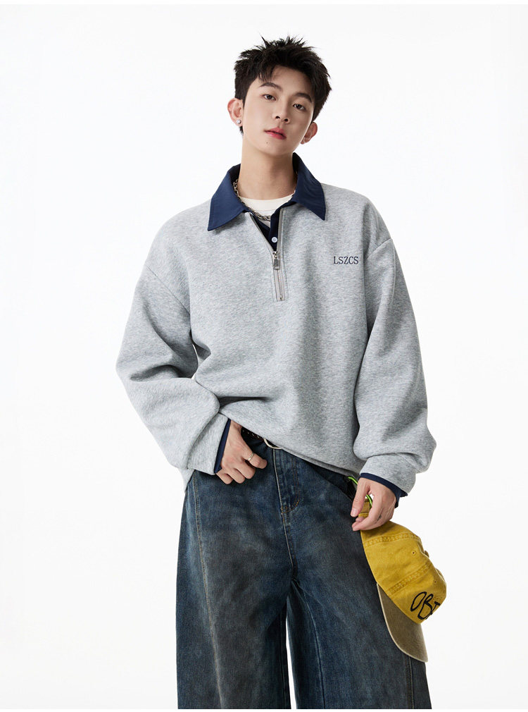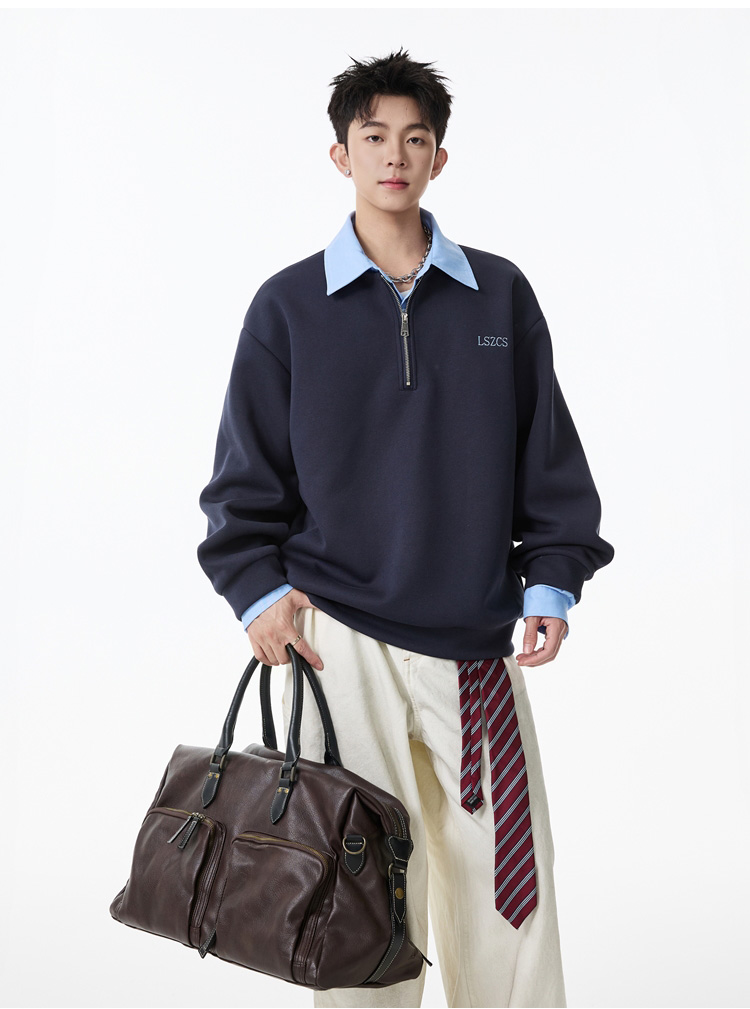 美式假兩件POLO衫半拉鍊衛衣男款春秋冬季潮牌寬松休閒男生上衣服