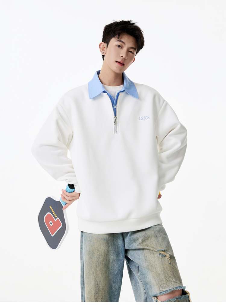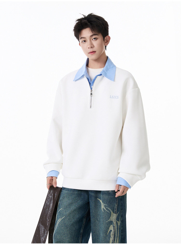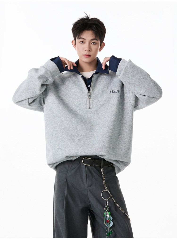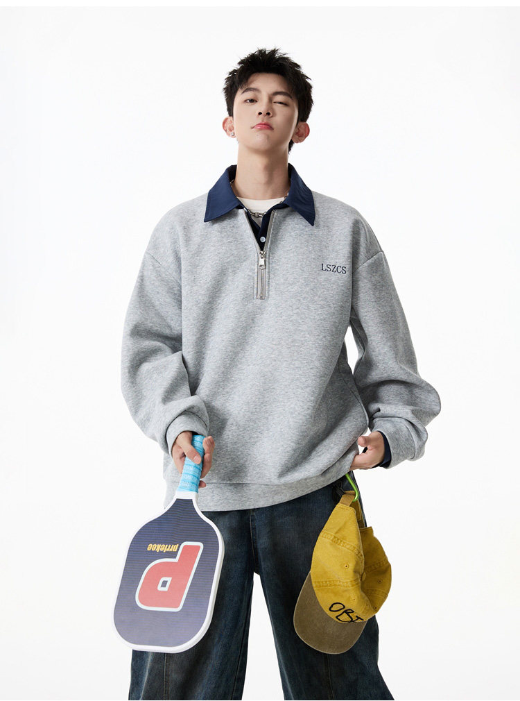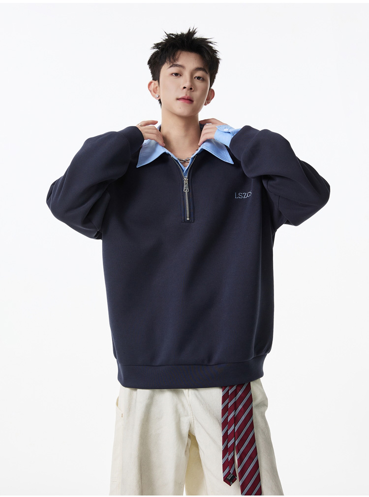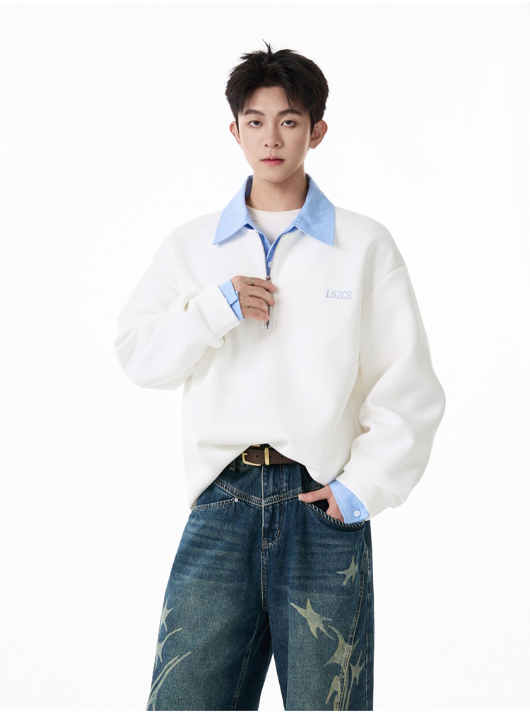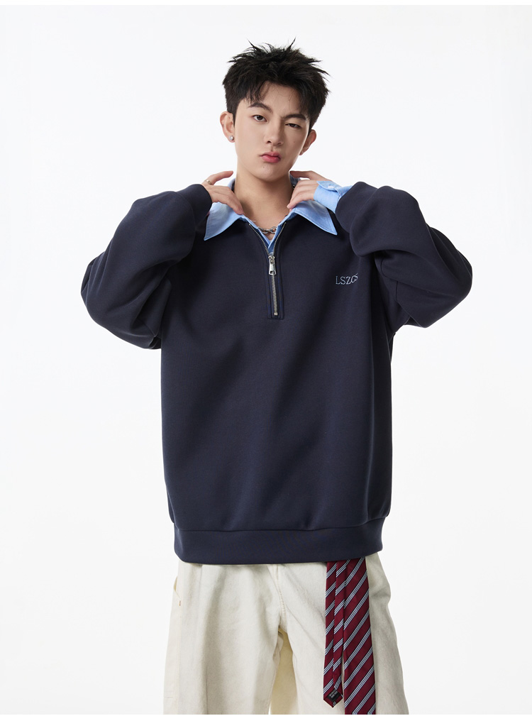 美式假兩件POLO衫半拉鍊衛衣男款春秋冬季潮牌寬松休閒男生上衣服