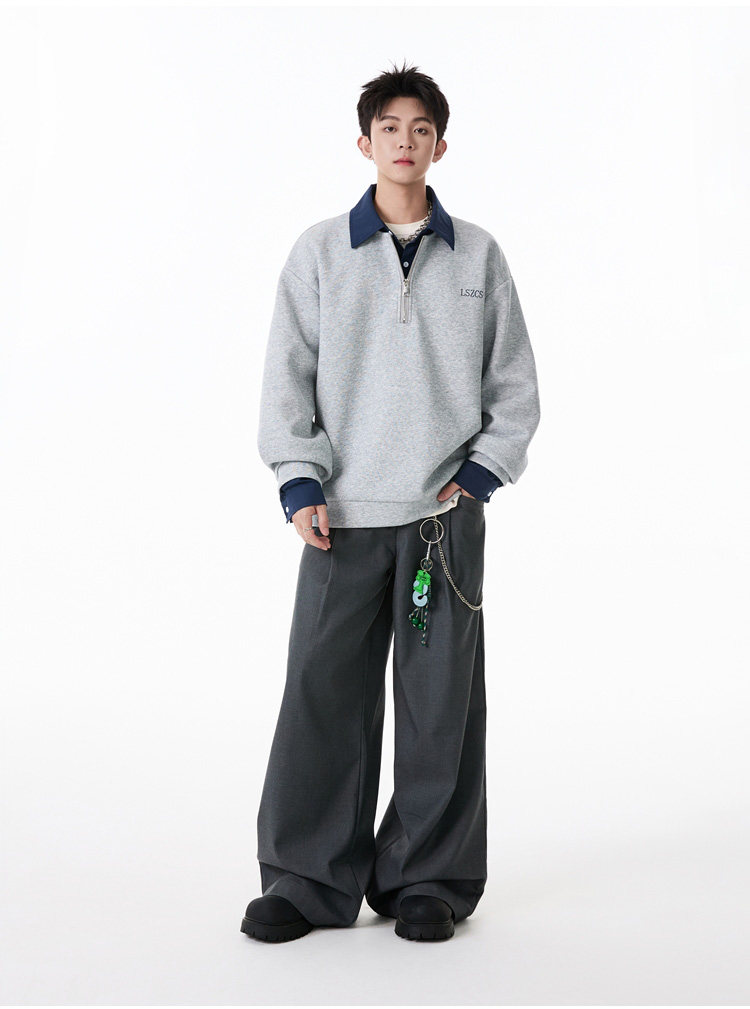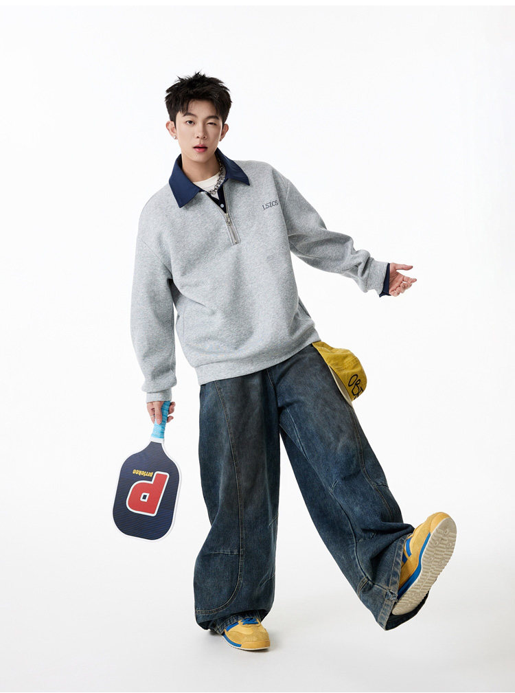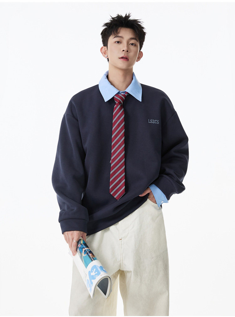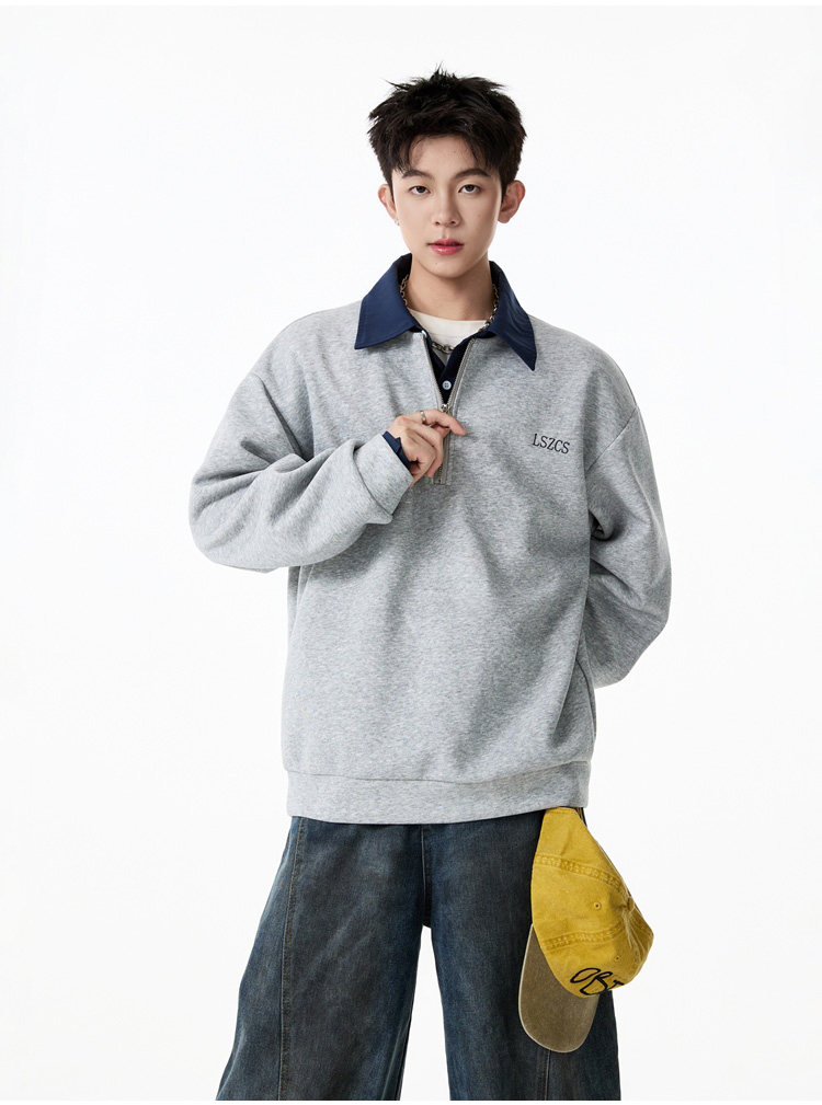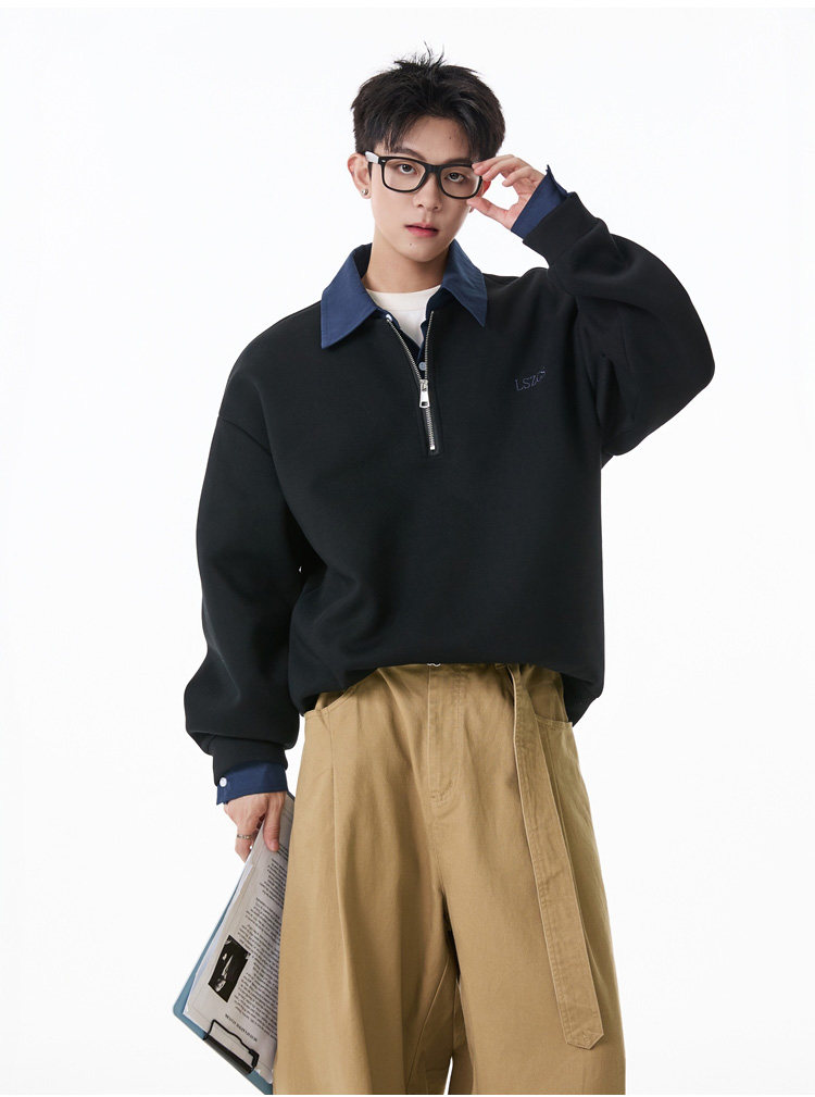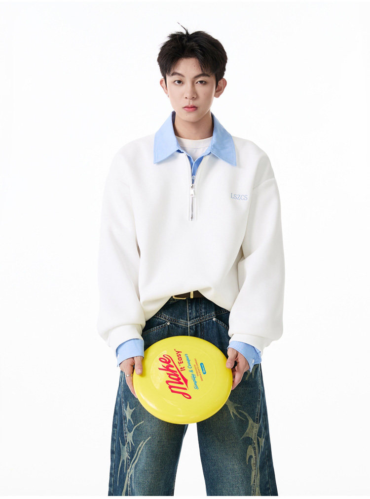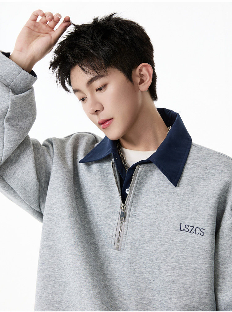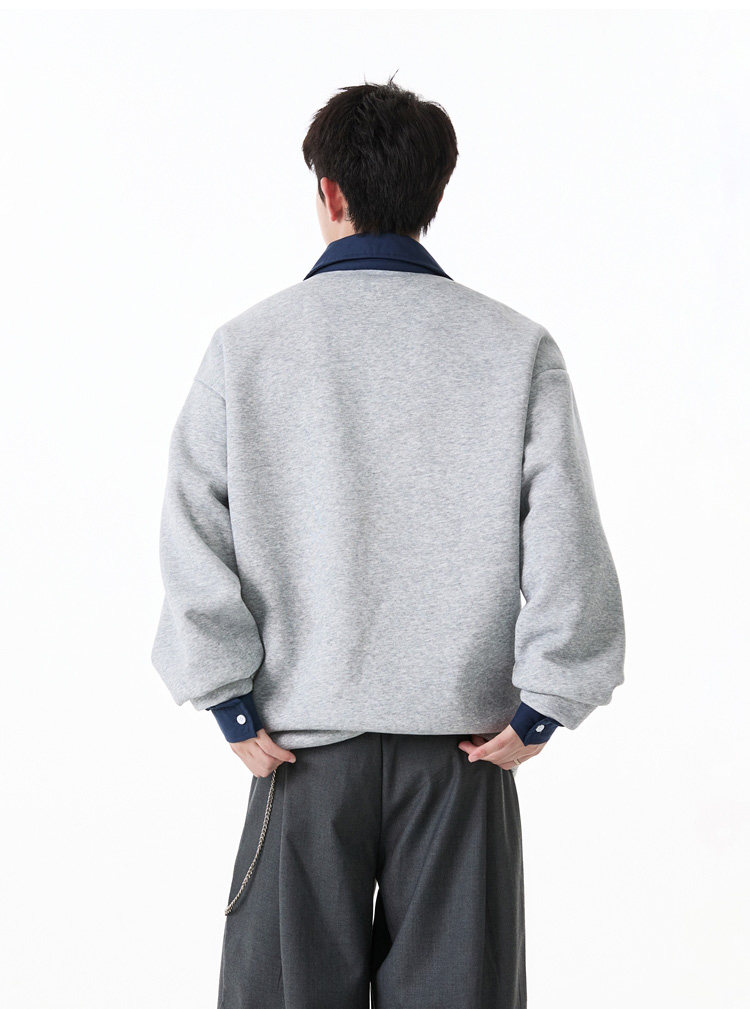 美式假兩件POLO衫半拉鍊衛衣男款春秋冬季潮牌寬松休閒男生上衣服