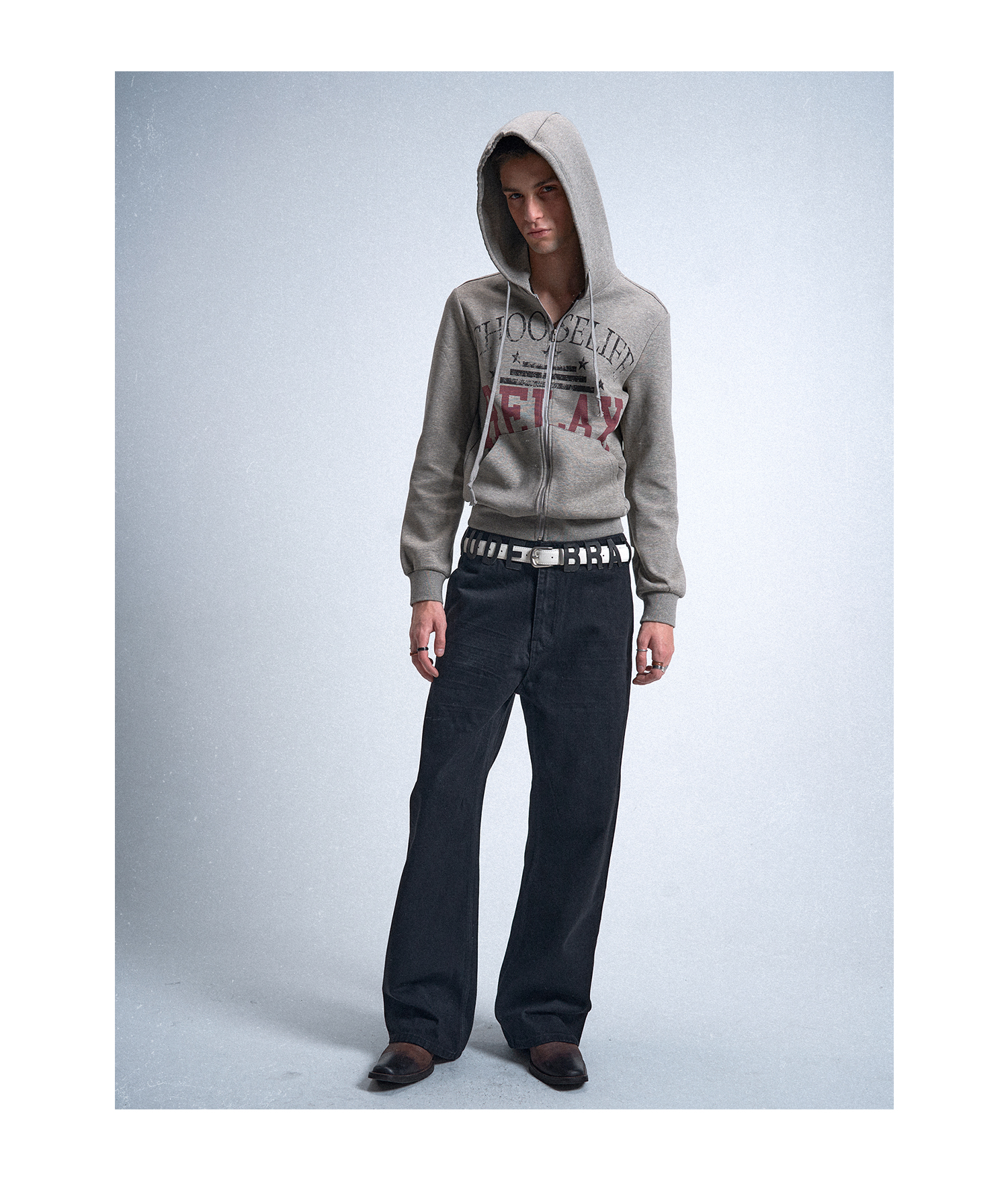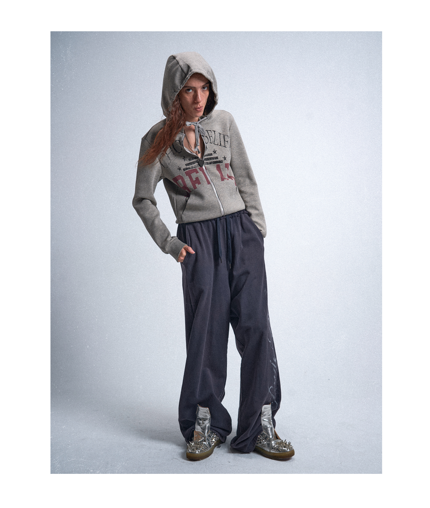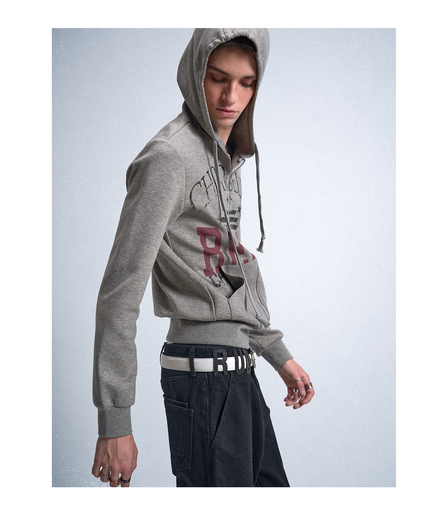 no E mosen(noE)'YOUTHMAL FUNCTION'做舊花灰滿印連帽合身衛衣