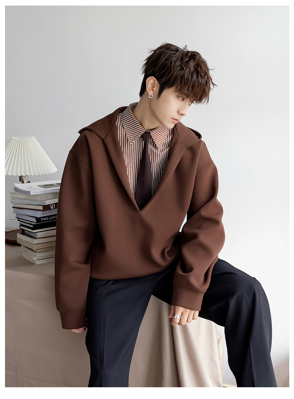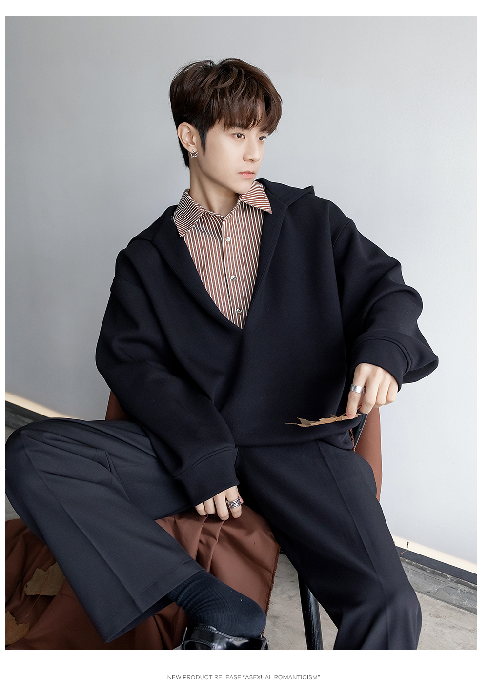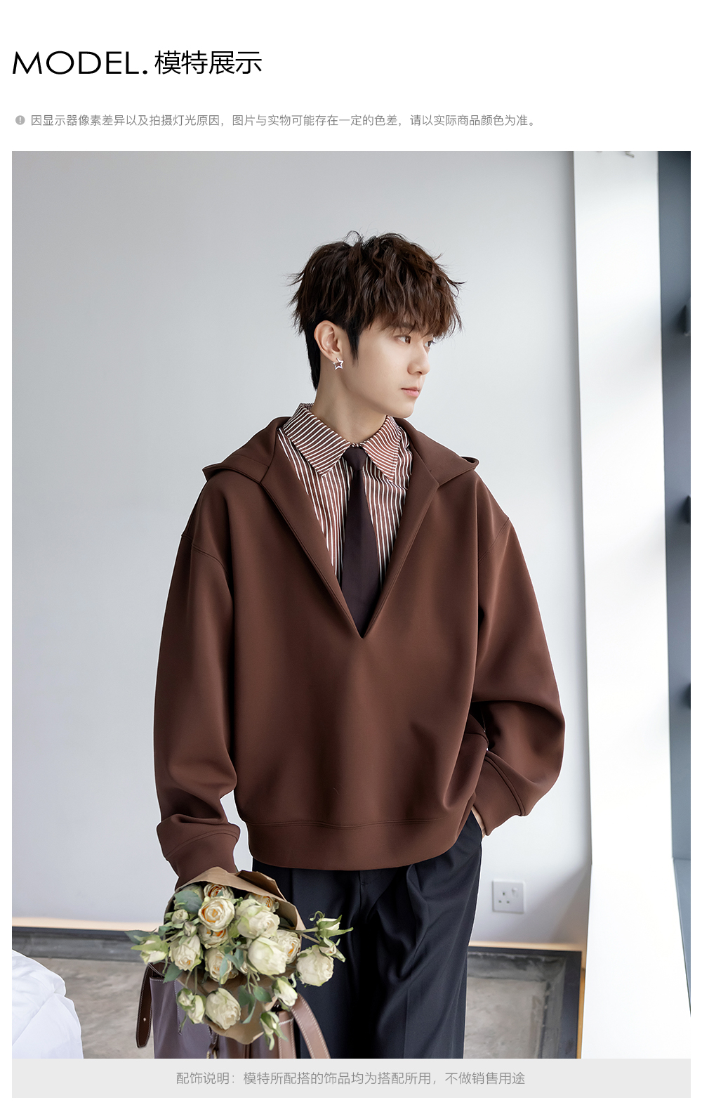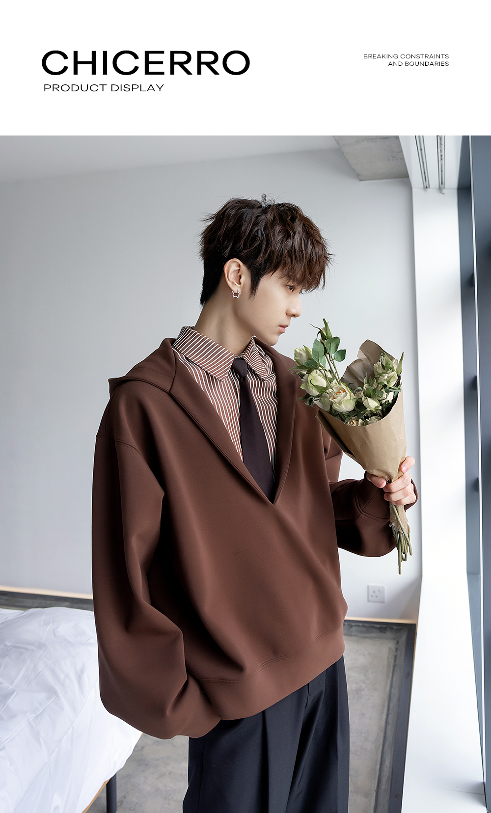 CHICERRO西西裡男裝英倫風高級設計感假兩件連帽V領衛衣男小衆潮