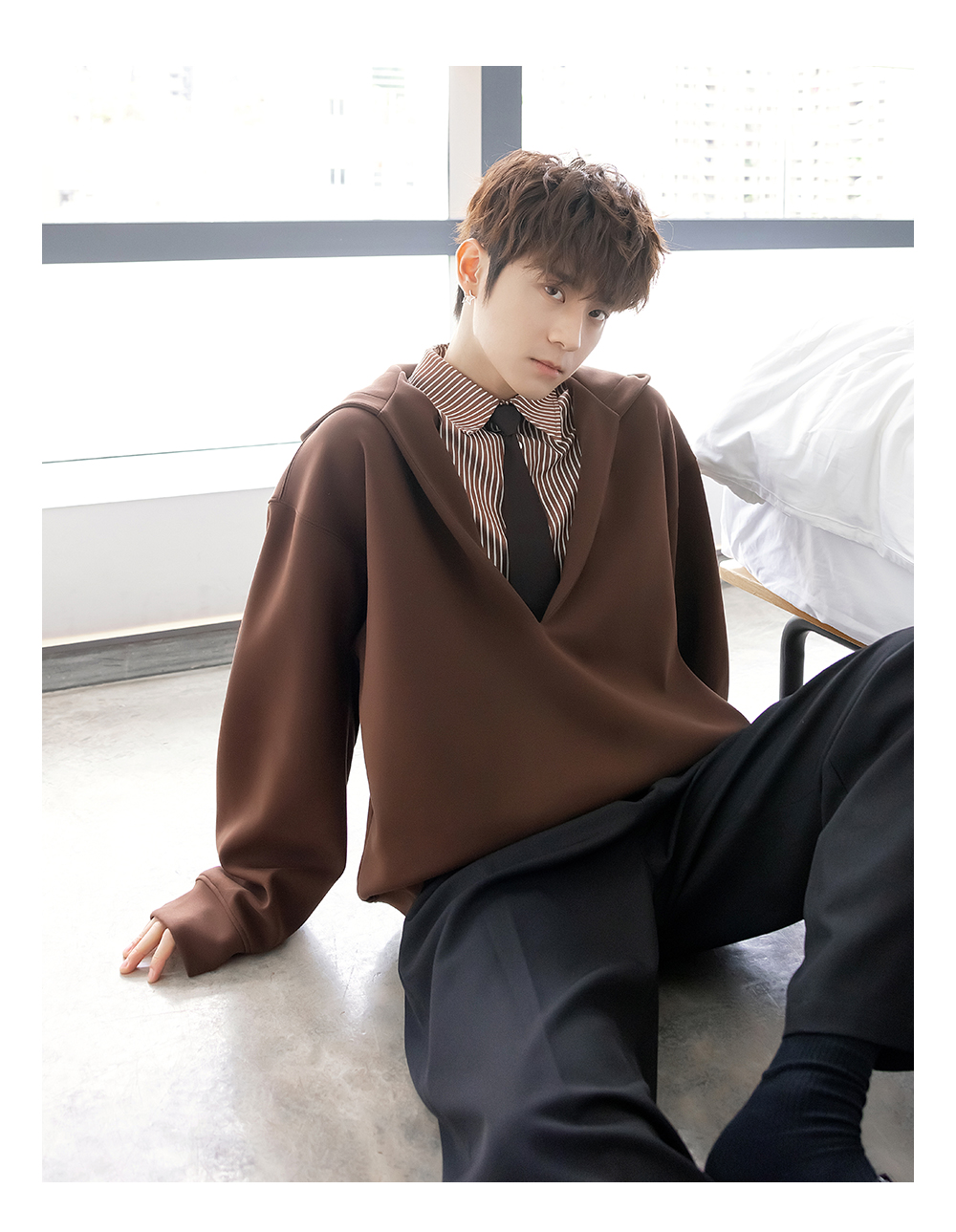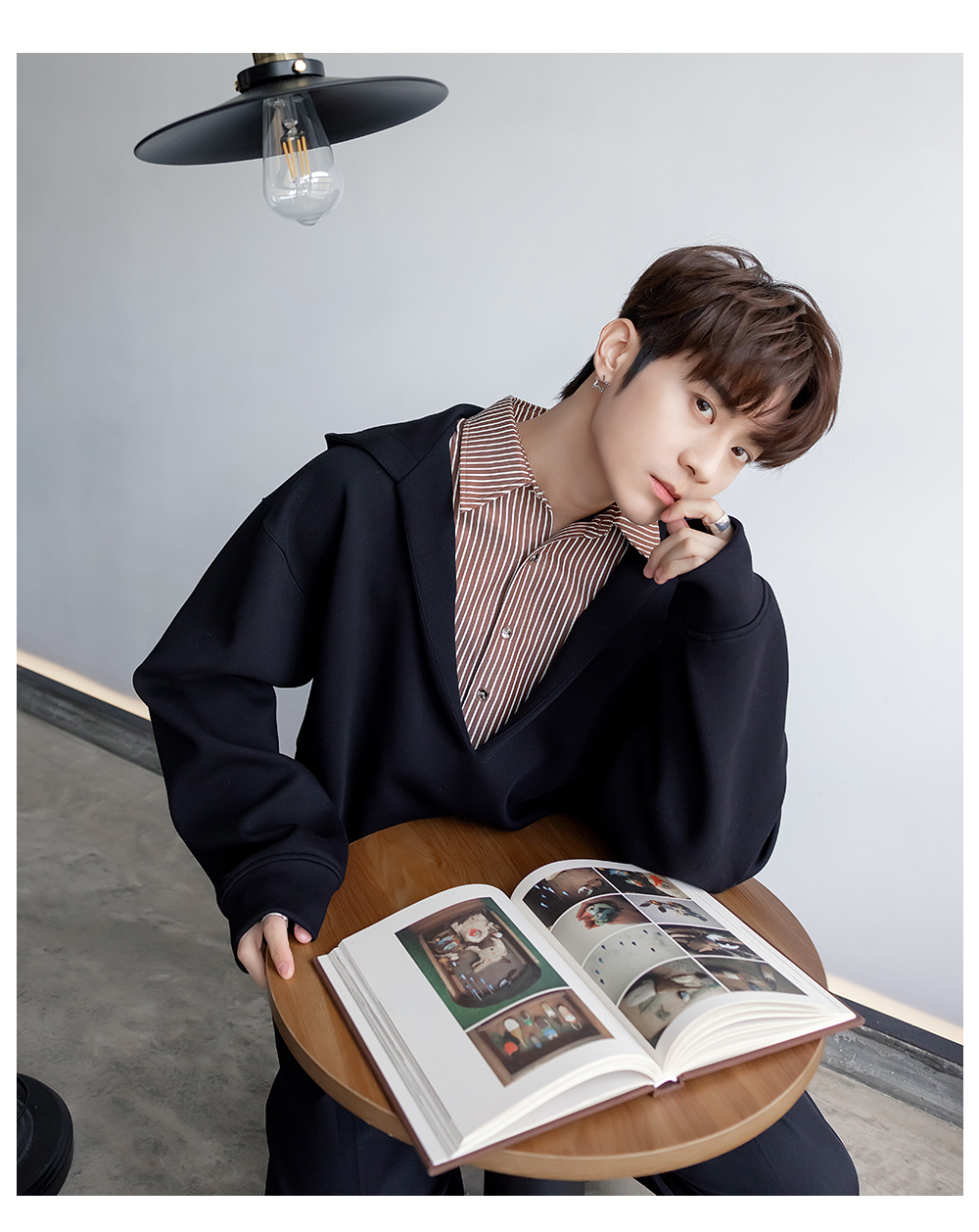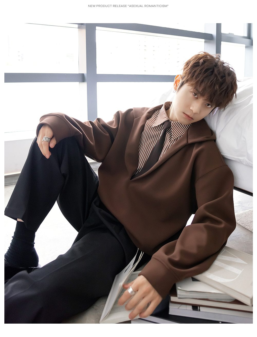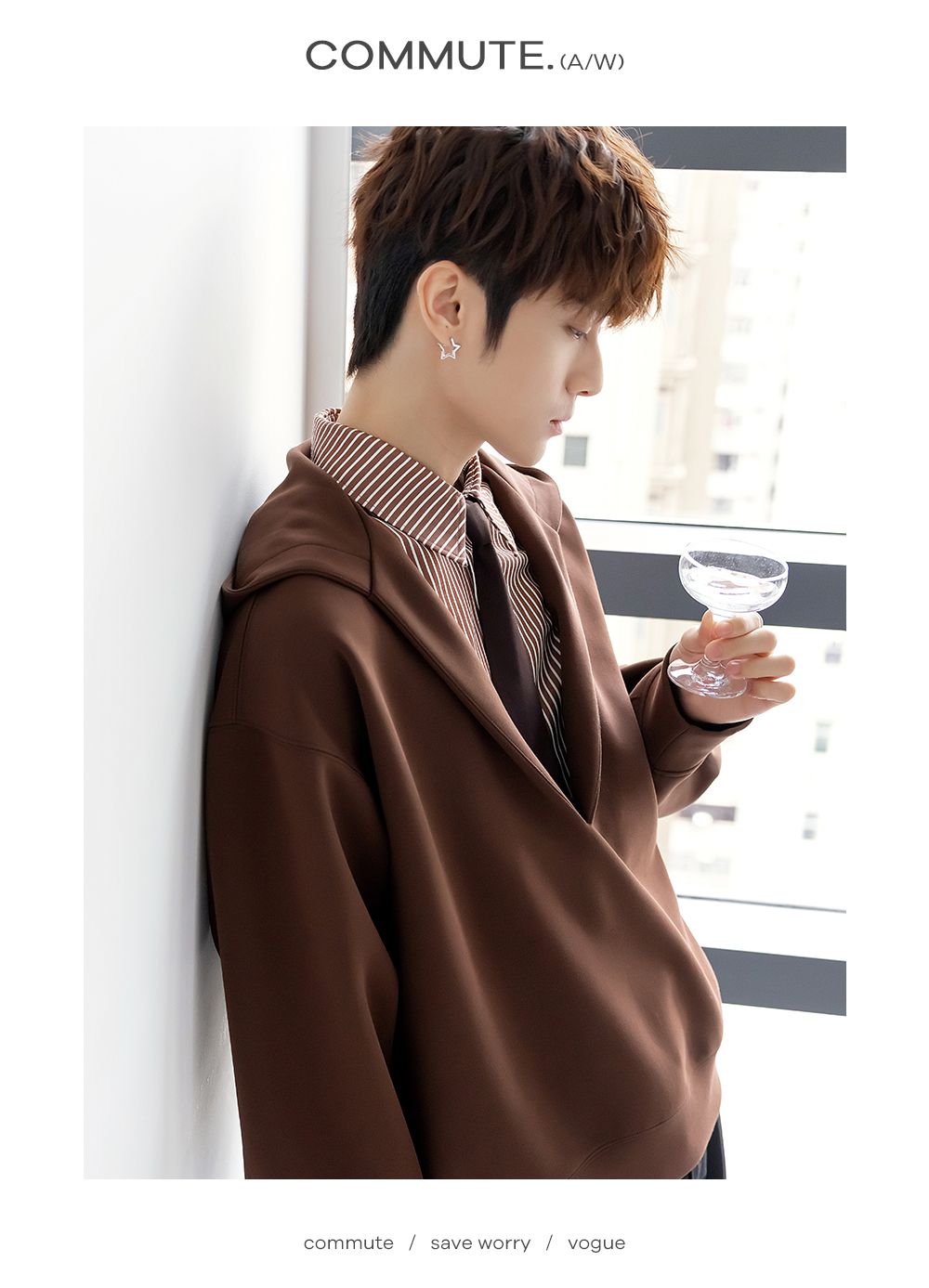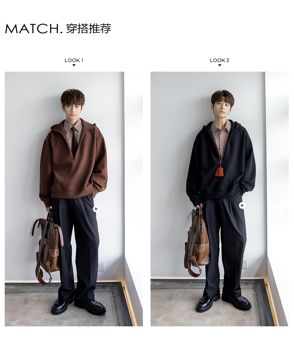CHICERRO西西裡男裝英倫風高級設計感假兩件連帽V領衛衣男小衆潮