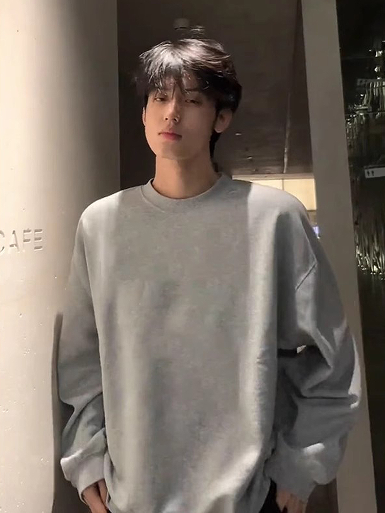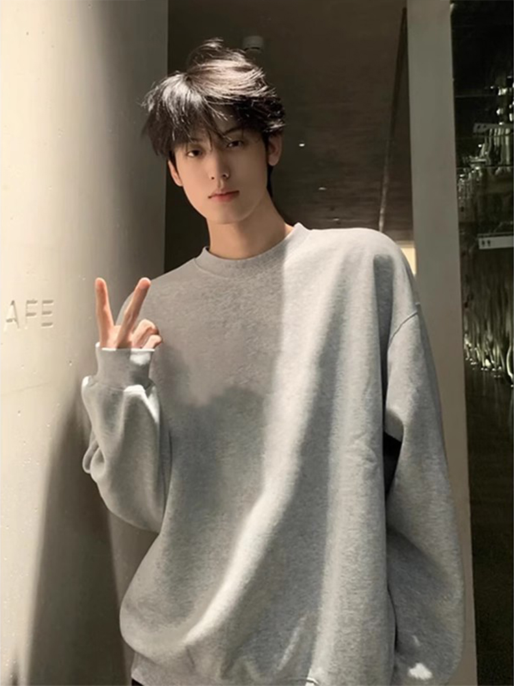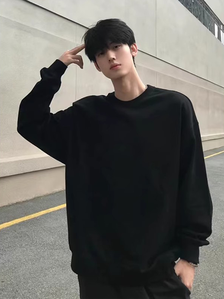 黑色美式衛衣男款秋冬季加絨cleanfit重磅長袖t恤純棉內搭打底衫