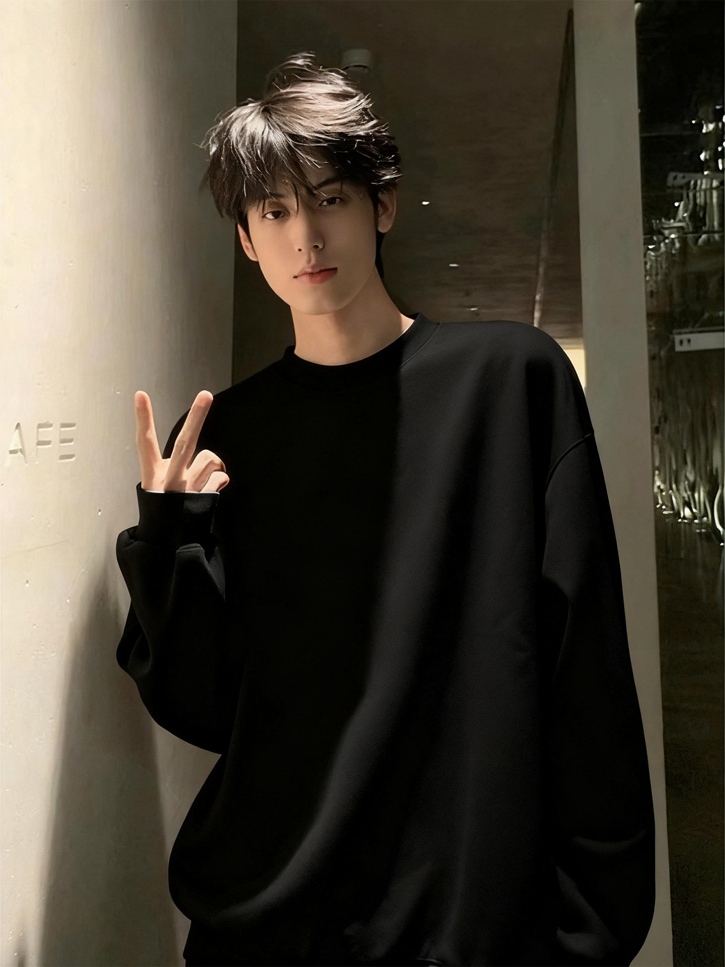 黑色美式衛衣男款秋春季上衣cleanfit重磅長袖t恤純棉內搭打底衫