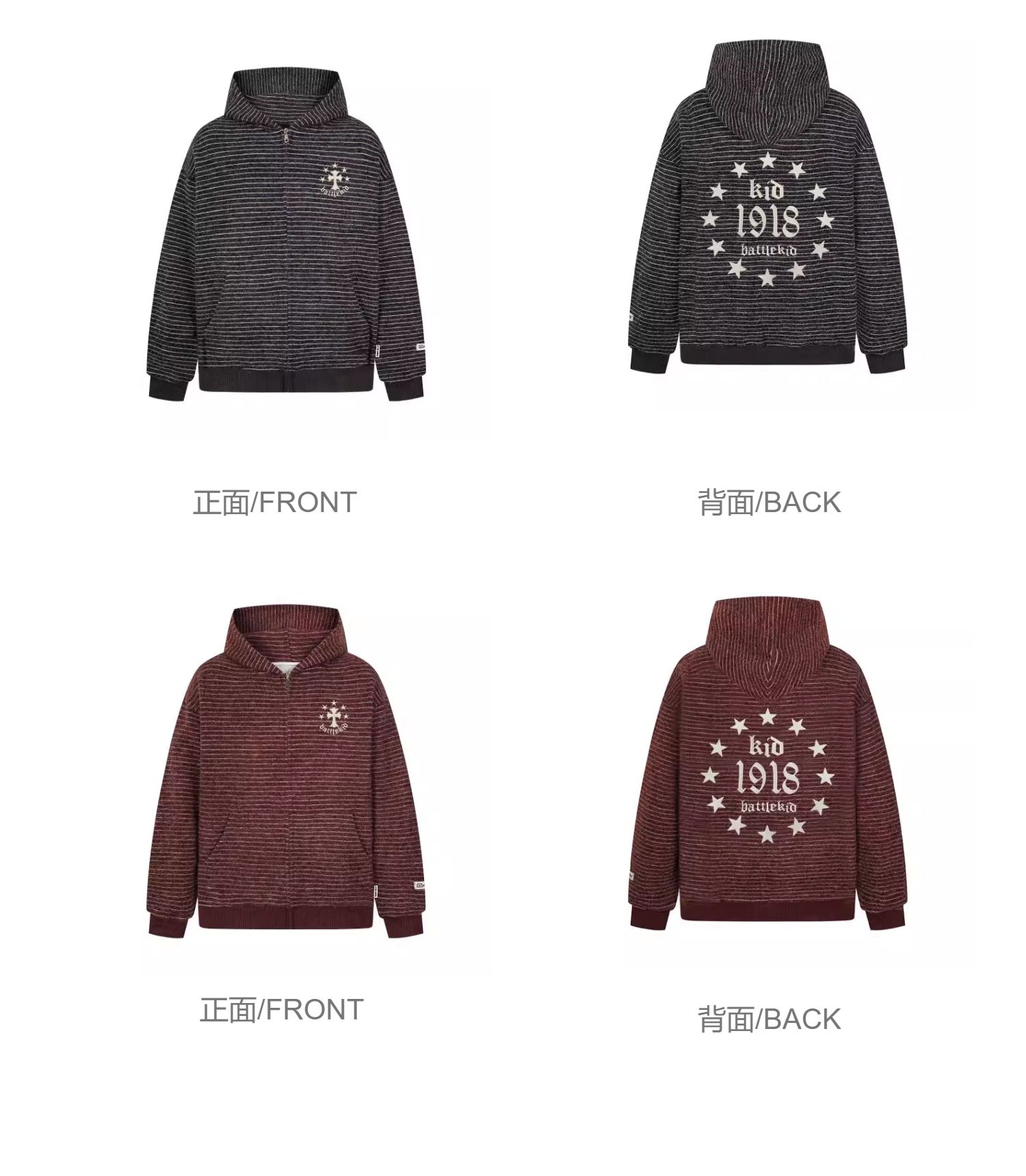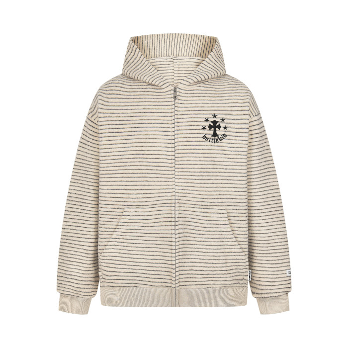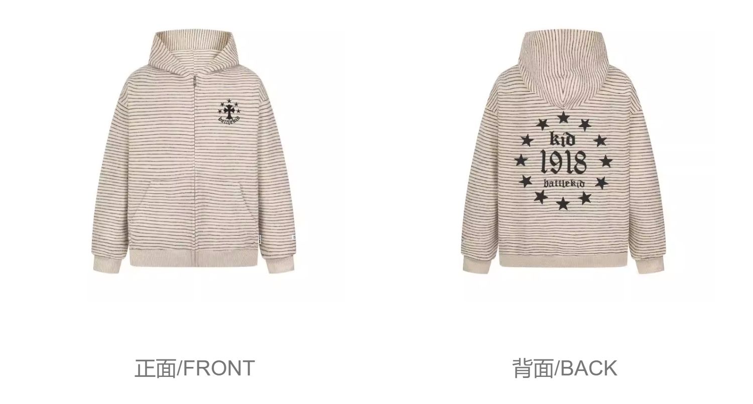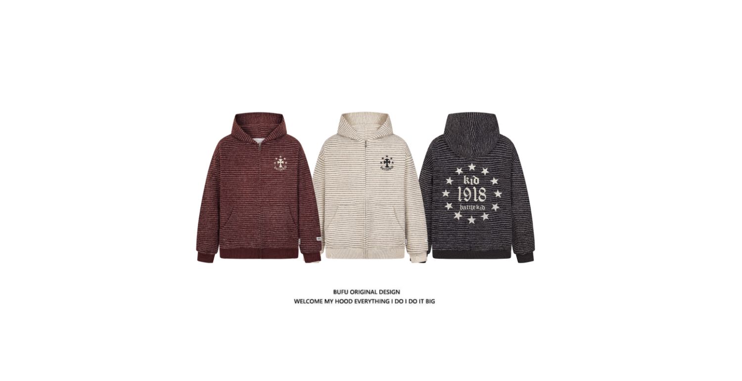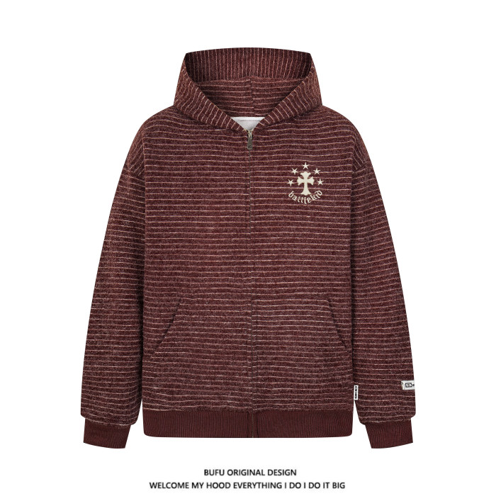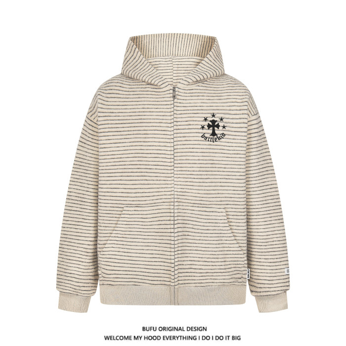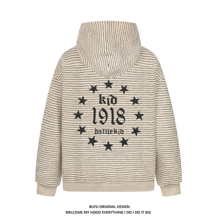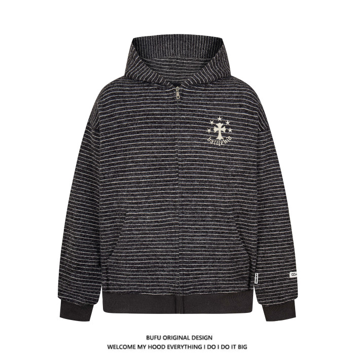 億萬少年BUFU美式復古毛呢條紋連帽衛衣外套男女秋季情侶寬松上衣