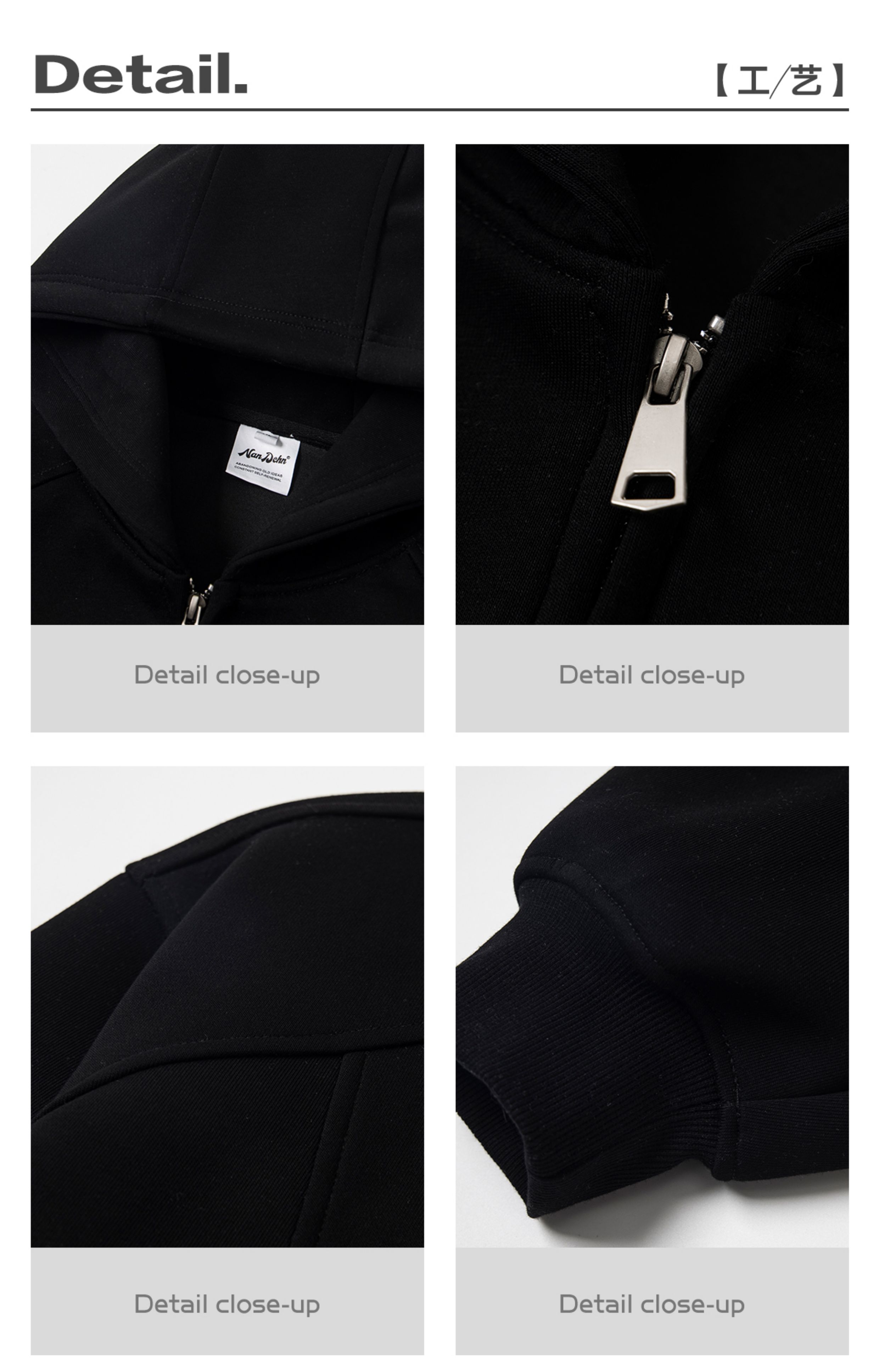 男道cleanfit短款500G重磅加絨連帽衛衣拉鍊開衫外套男女休閒上衣