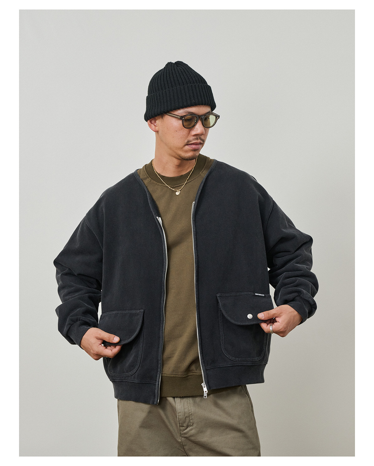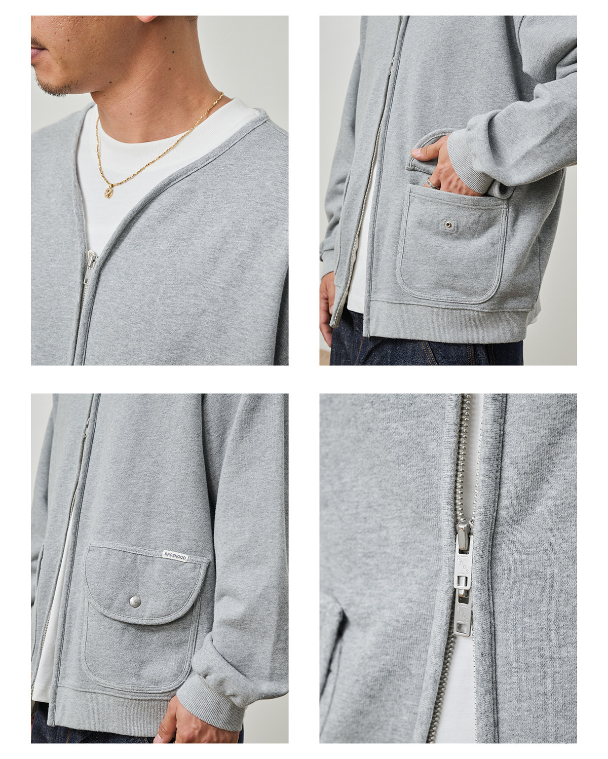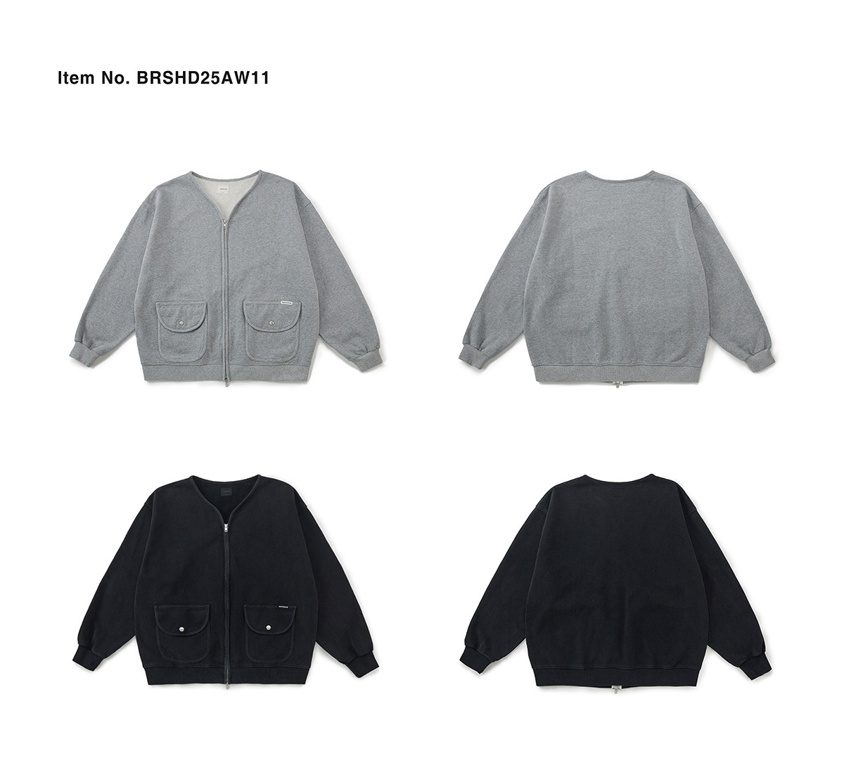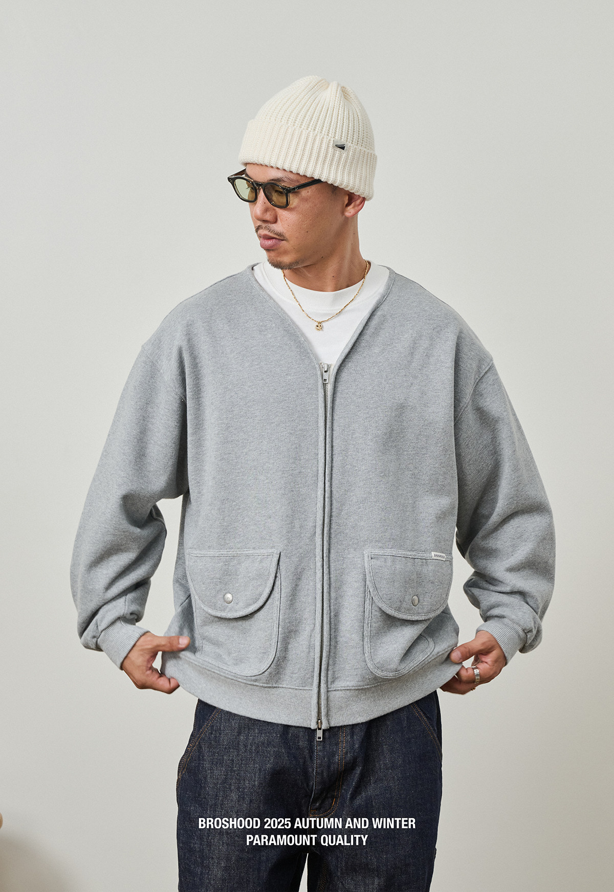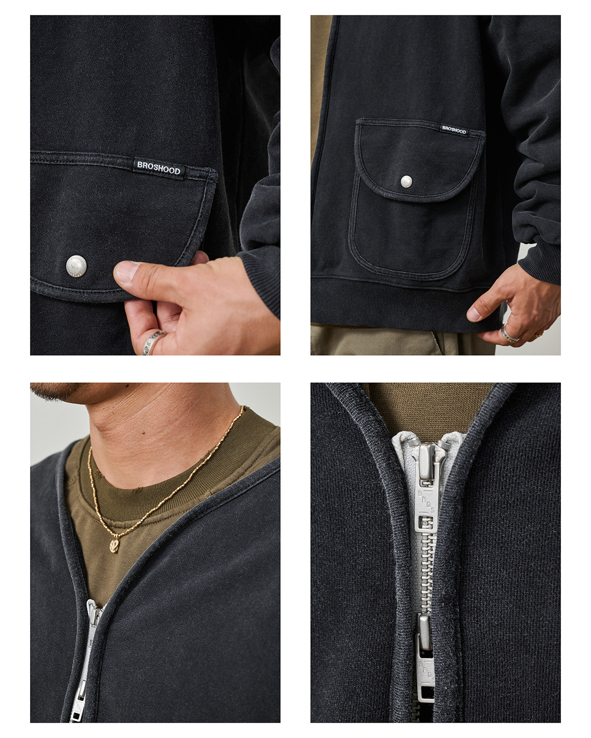 Broshood 25AW 日系寬松復古沙洗做舊V領開衫長袖拉鍊衛衣外套男