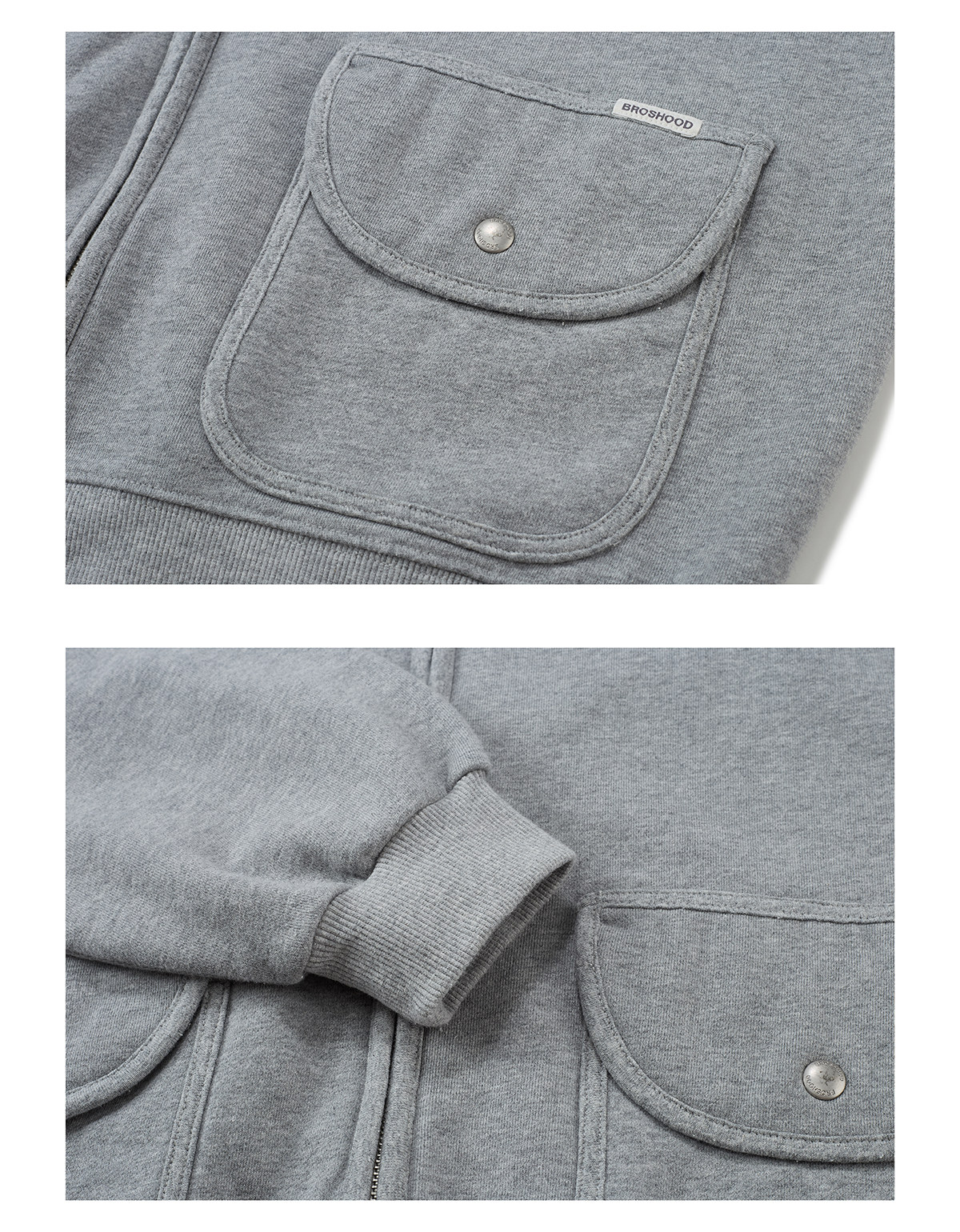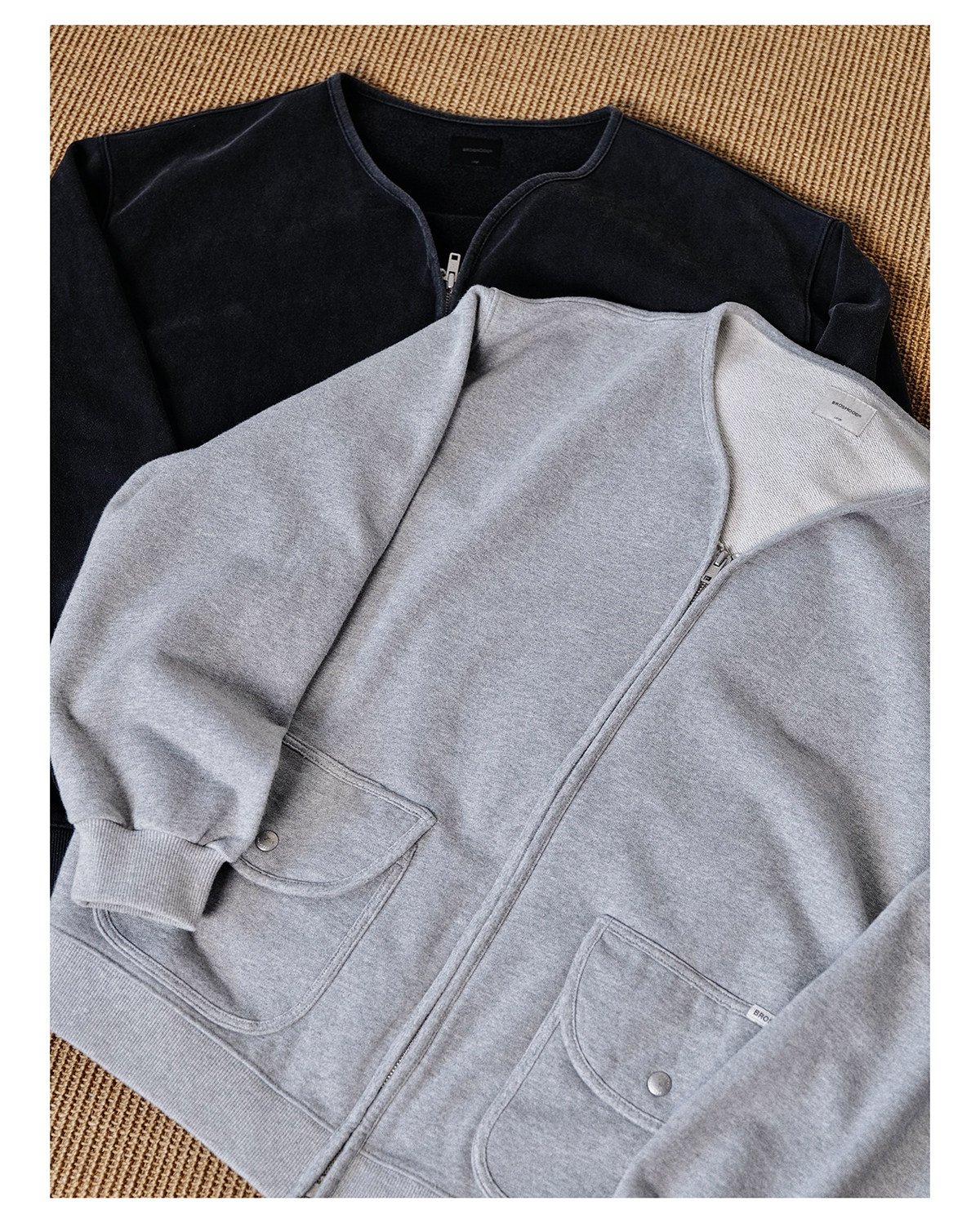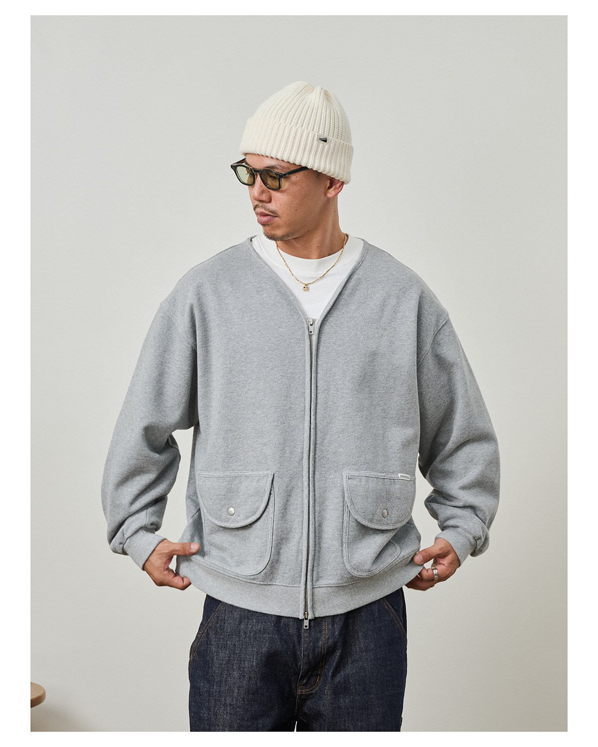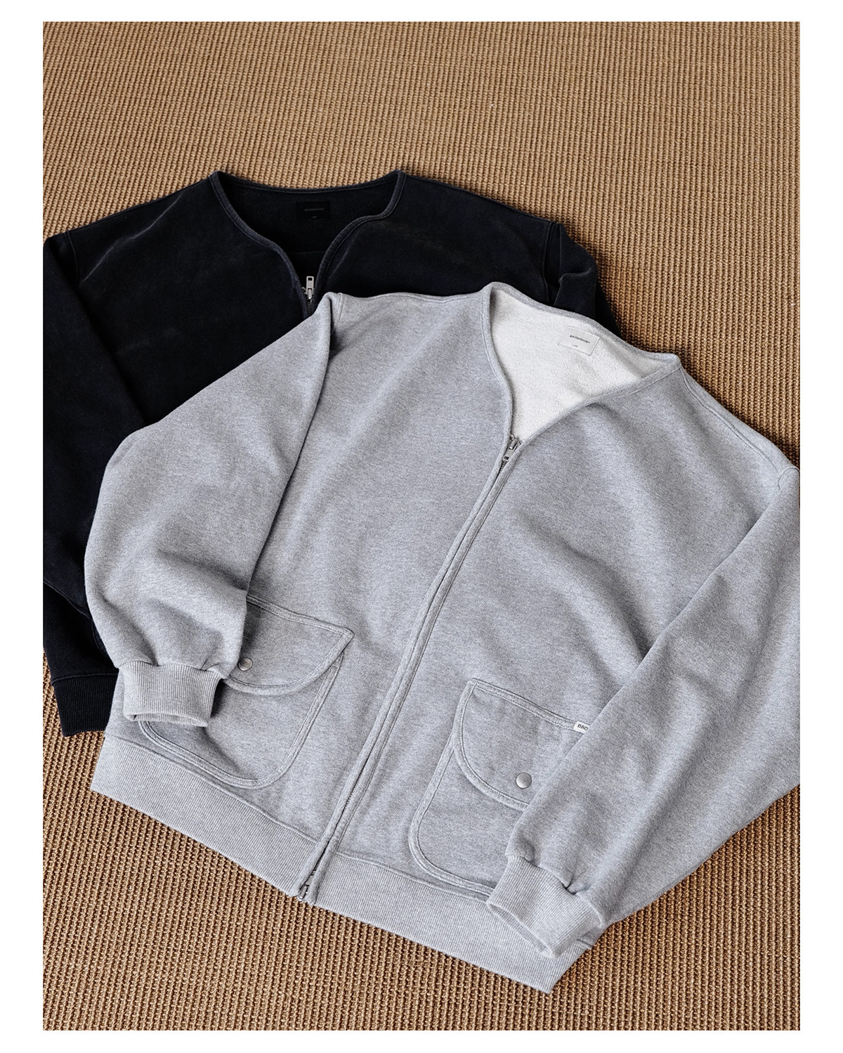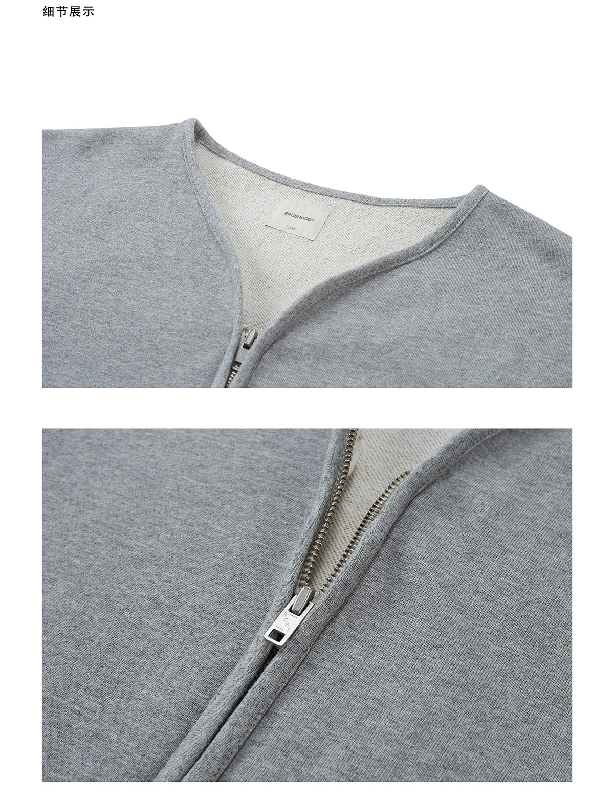 Broshood 25AW 日系寬松復古沙洗做舊V領開衫長袖拉鍊衛衣外套男