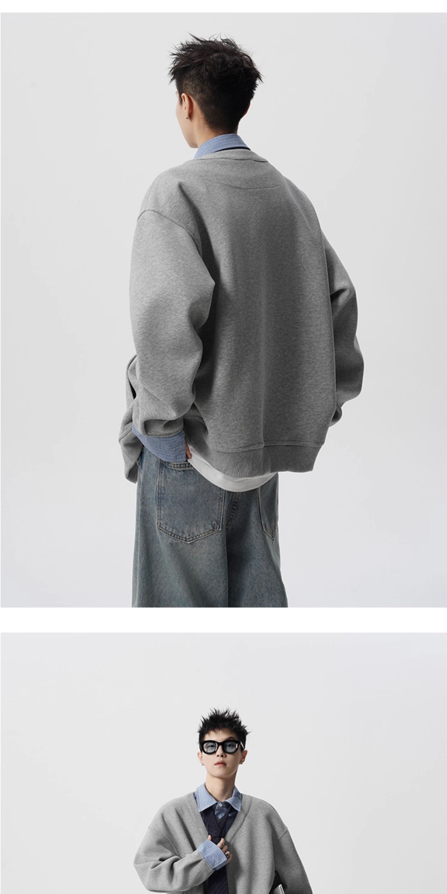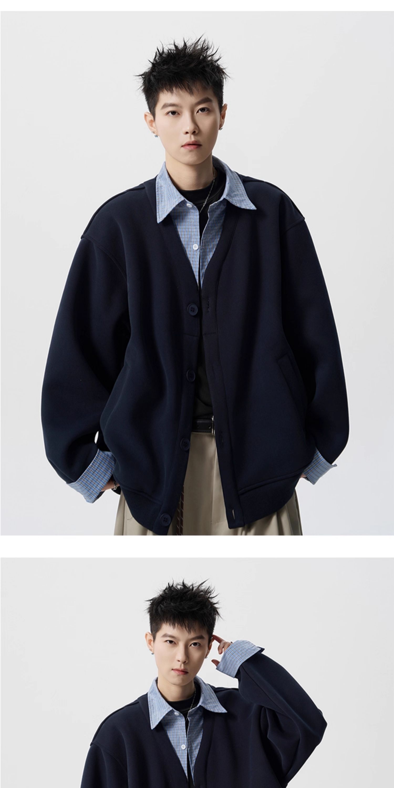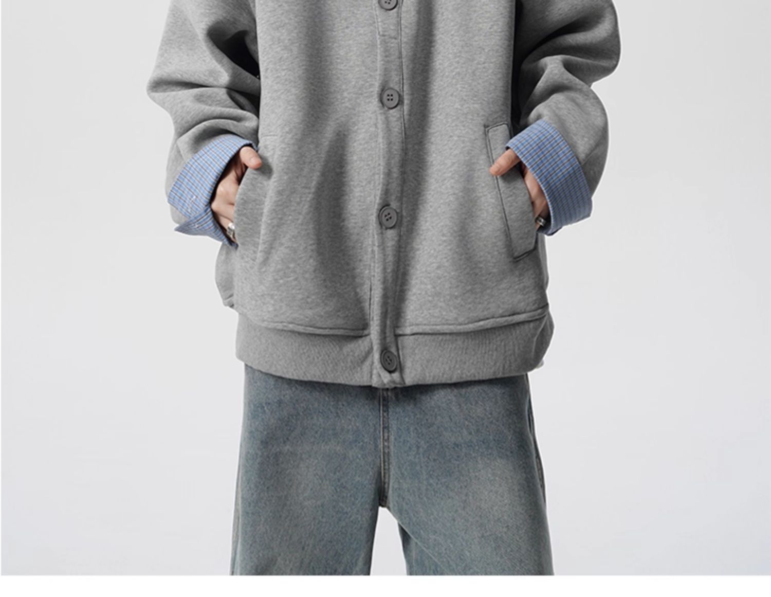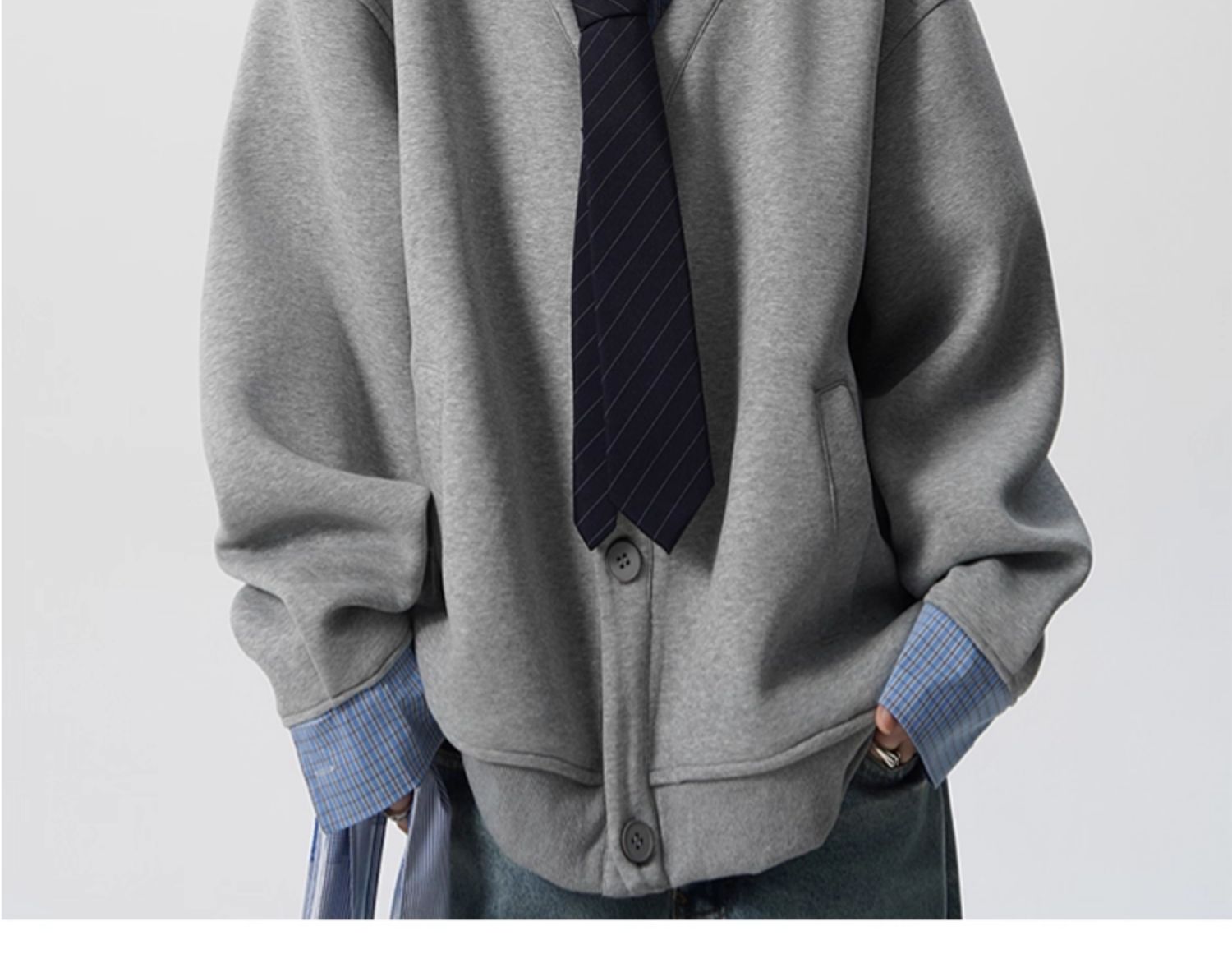 VUUG假兩件復古polo領衛衣男春秋季美式新款開衫休閒男生寬松外套
