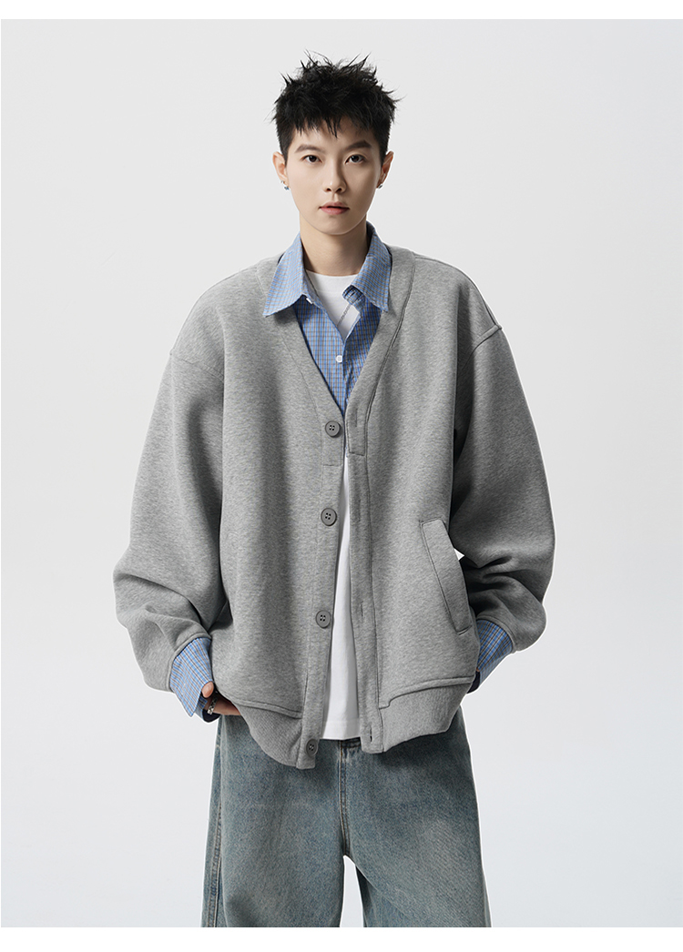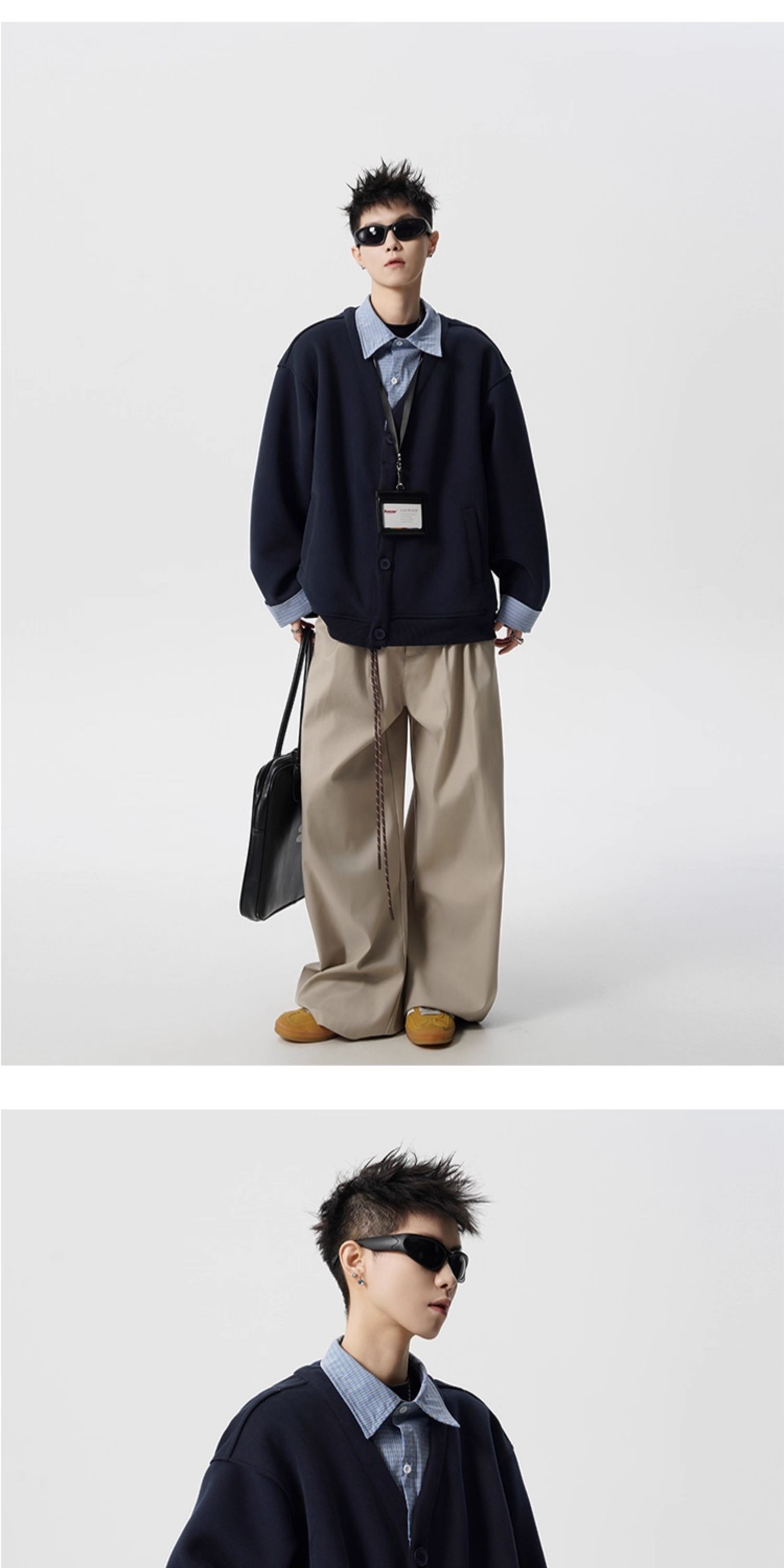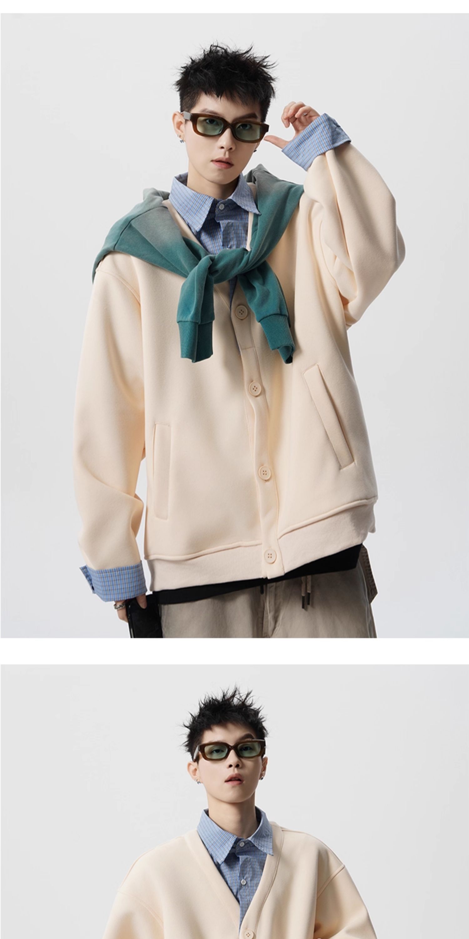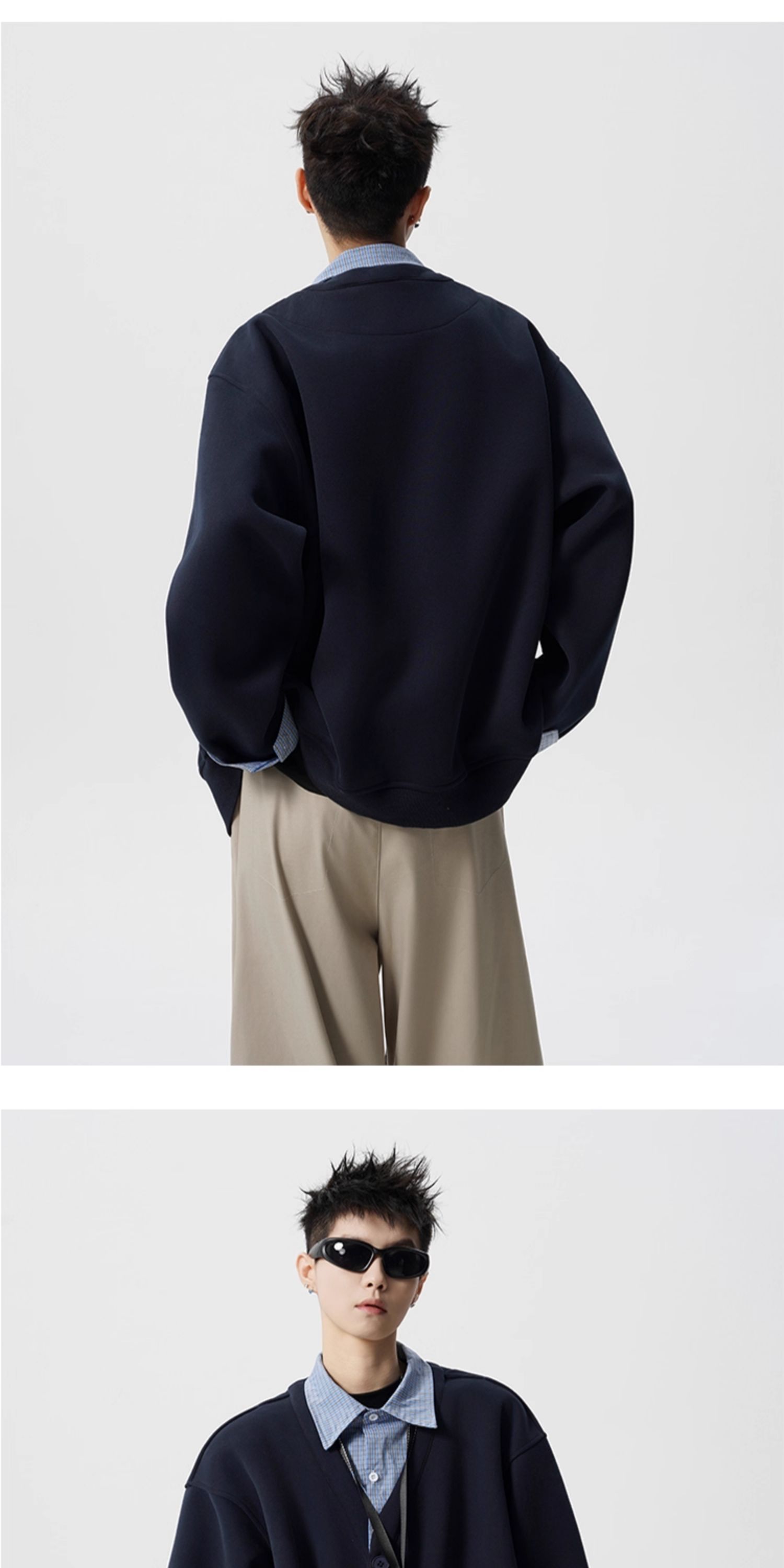 VUUG假兩件復古polo領衛衣男春秋季美式新款開衫休閒男生寬松外套