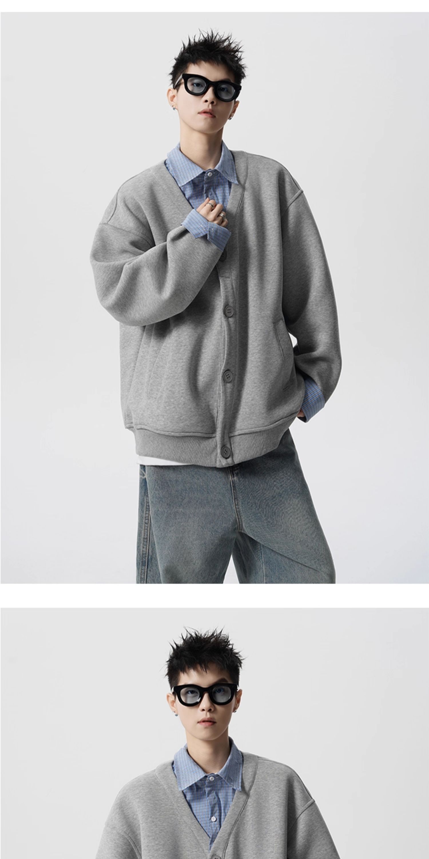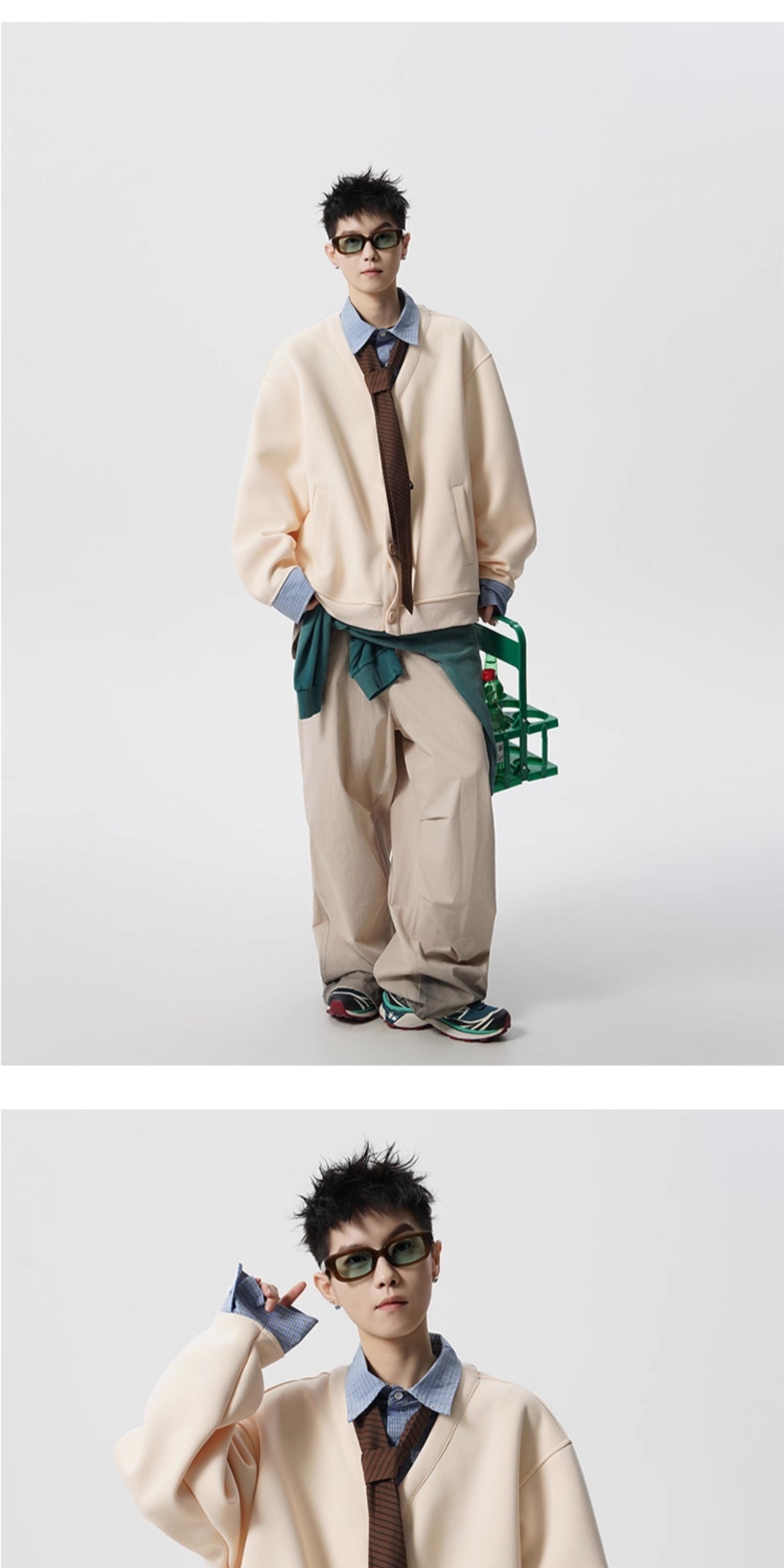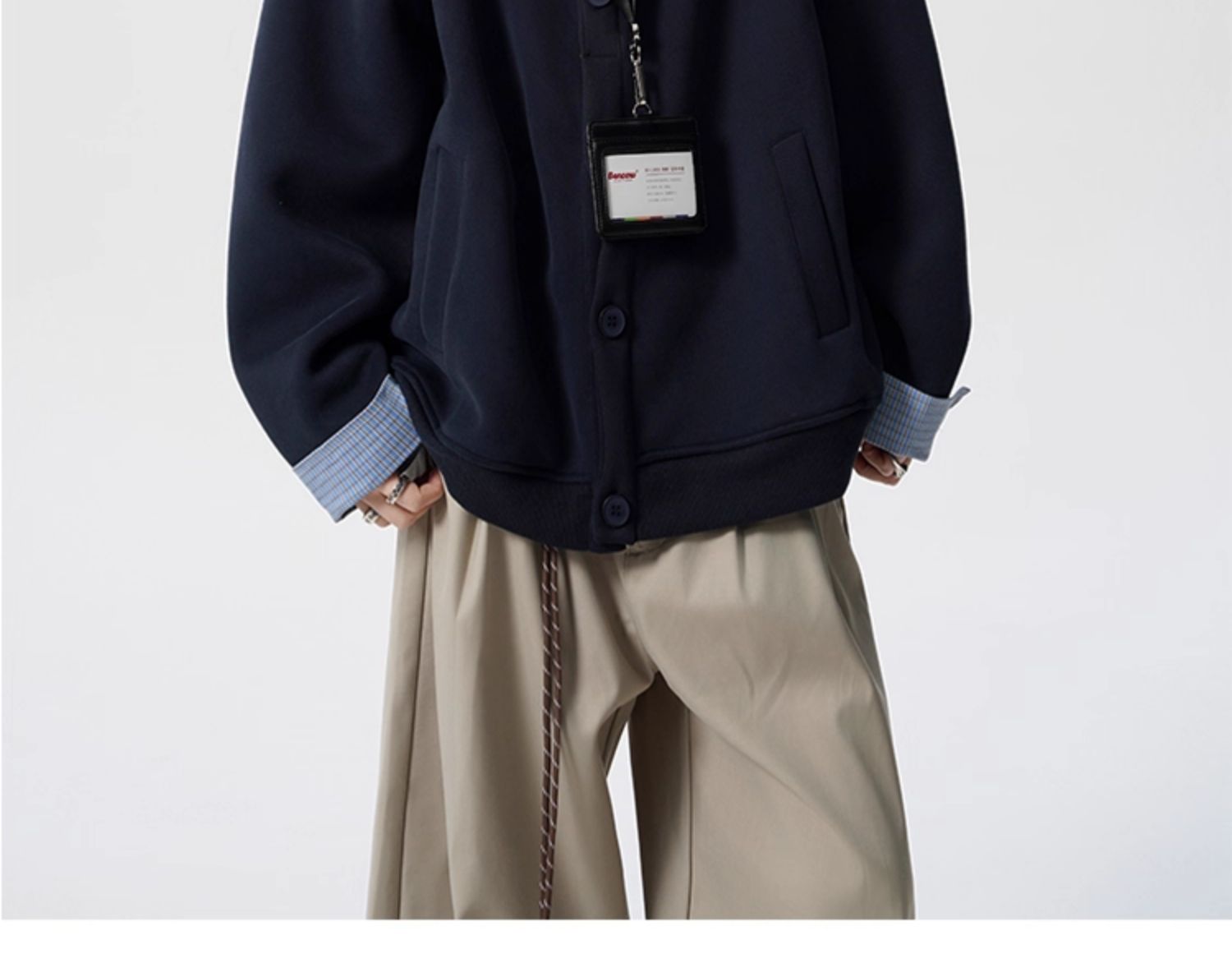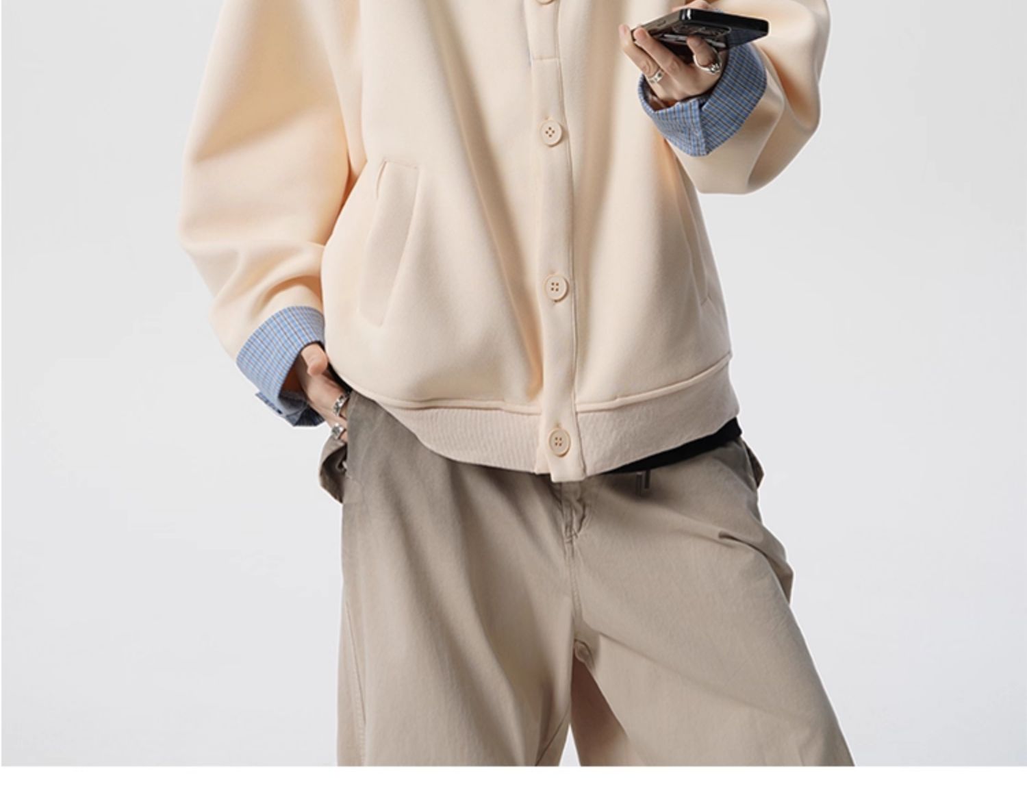 VUUG假兩件復古polo領衛衣男春秋季美式新款開衫休閒男生寬松外套