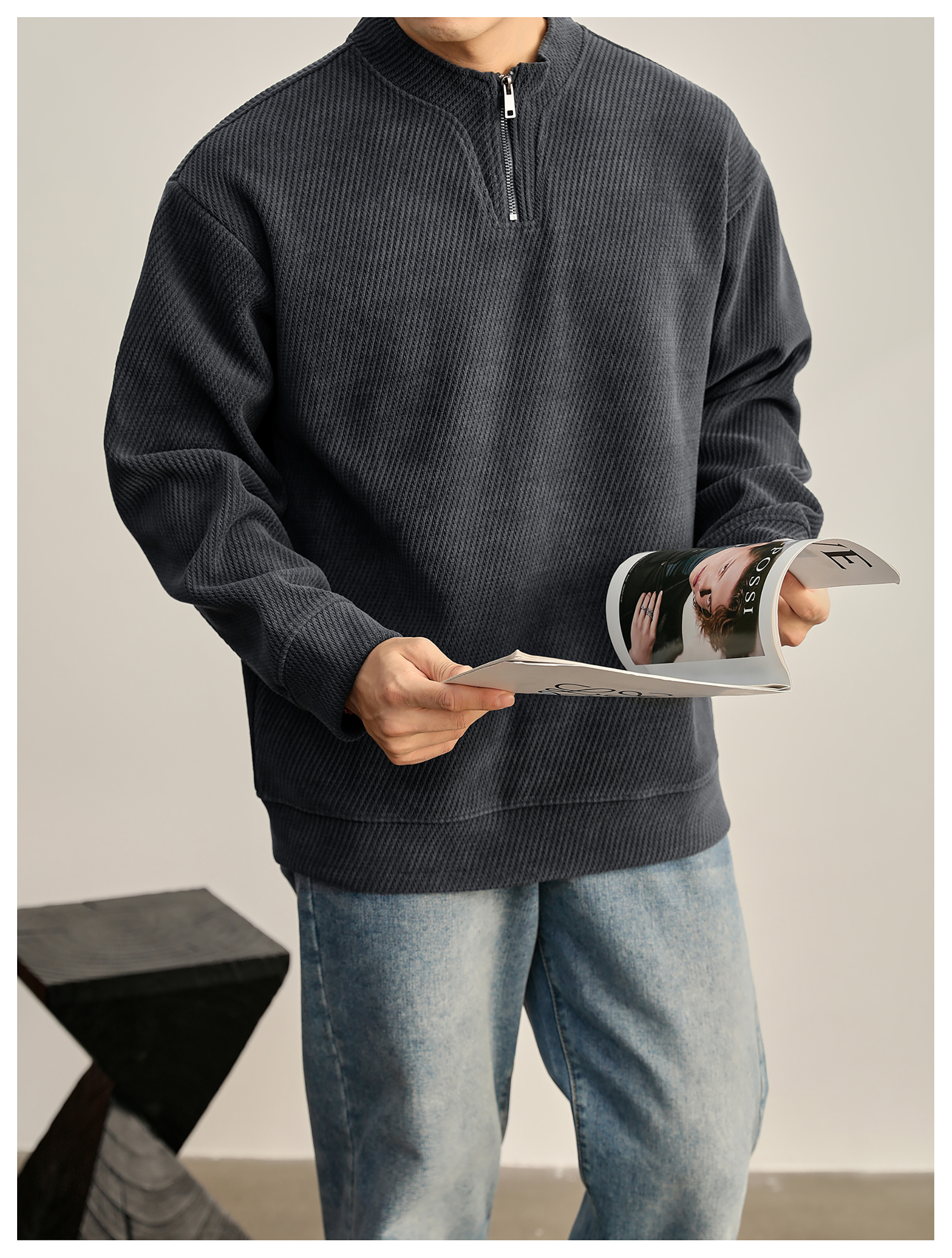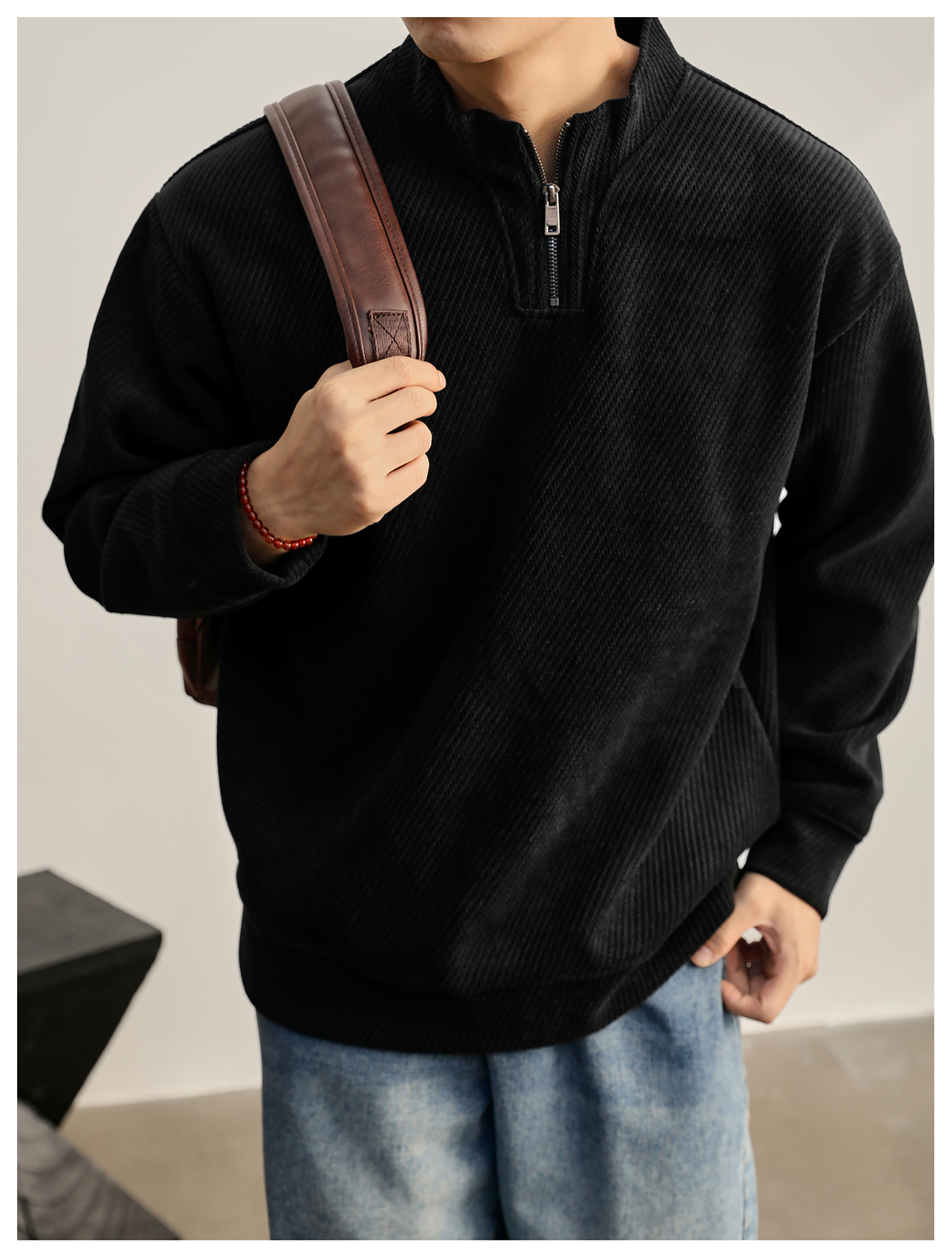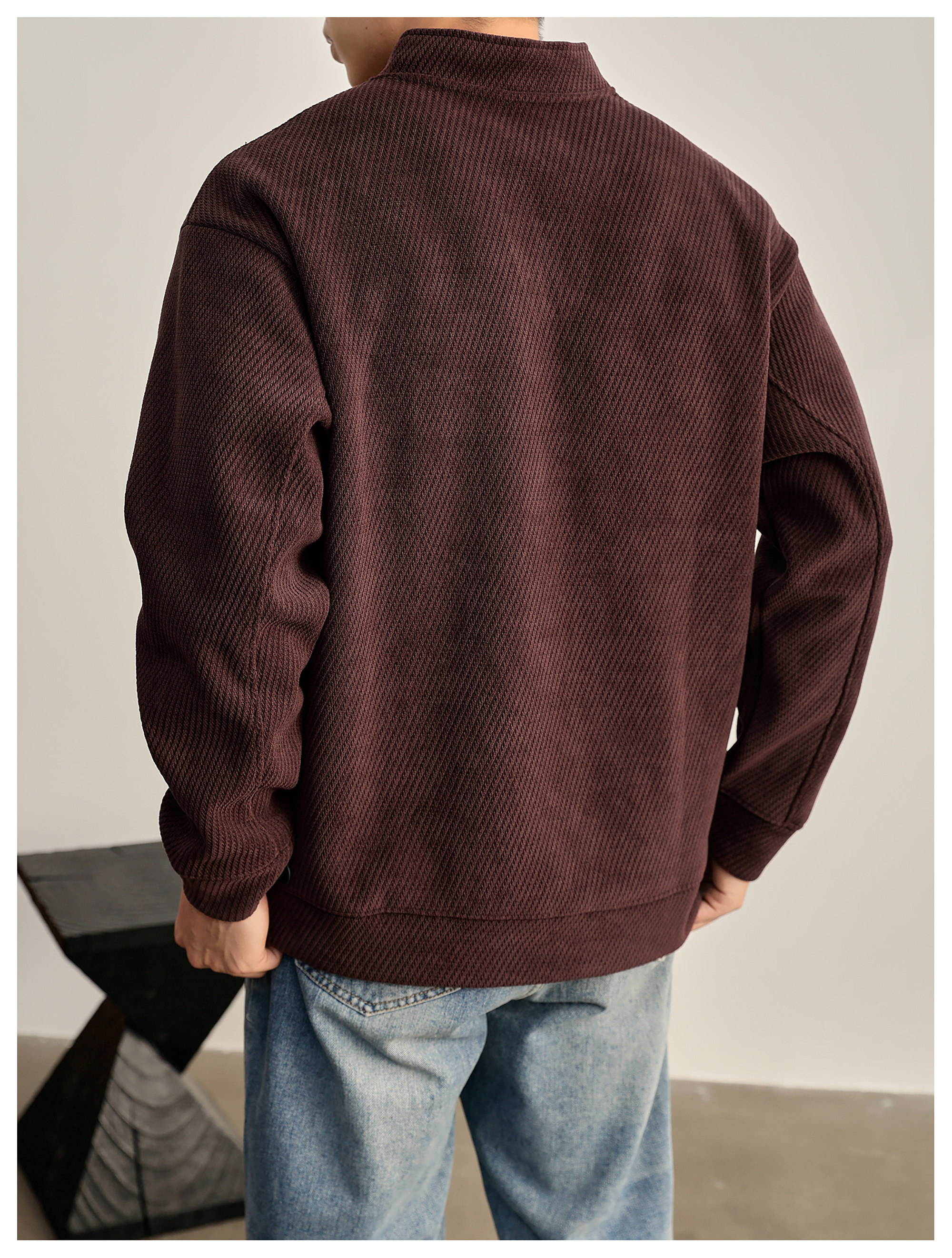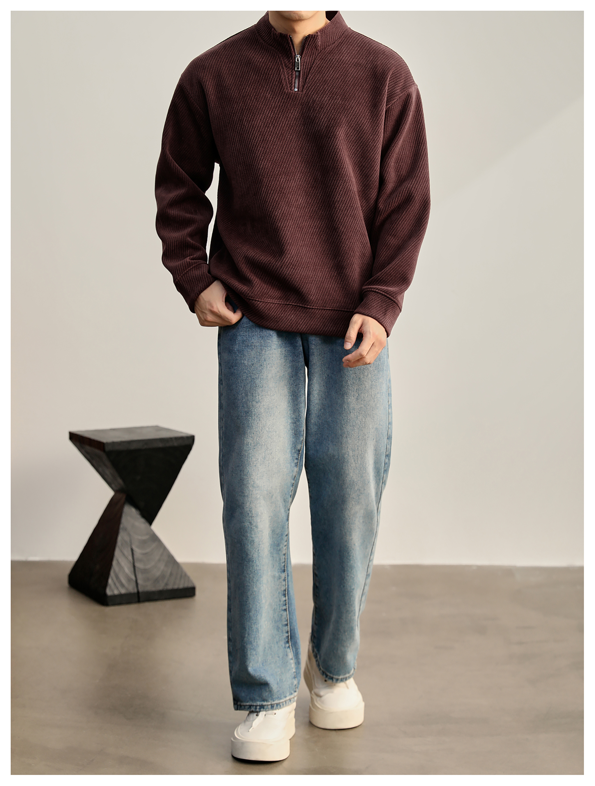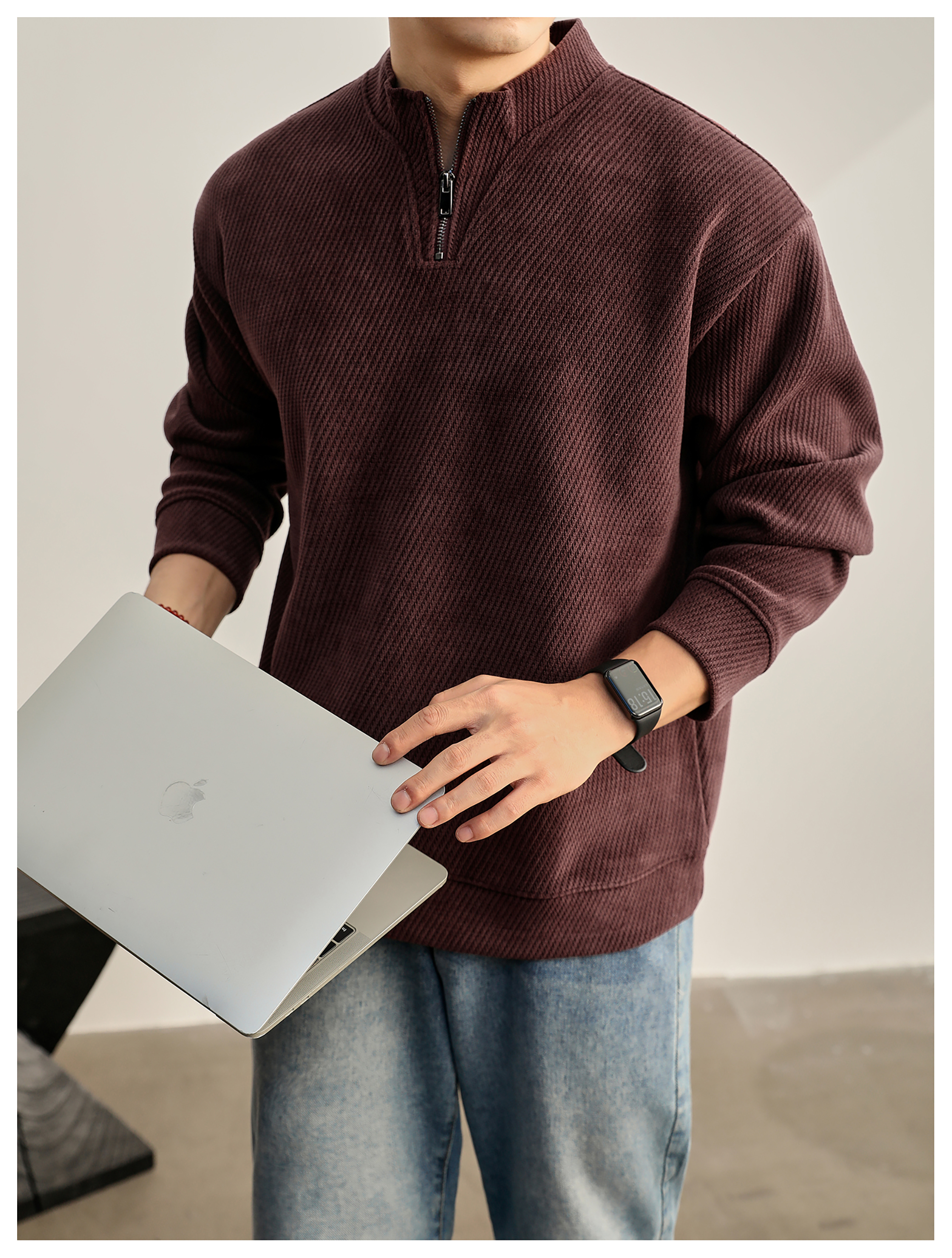 LUUD 復古老錢風男士棗紅色斜紋立領衛衣重磅550g半拉鍊長袖上衣