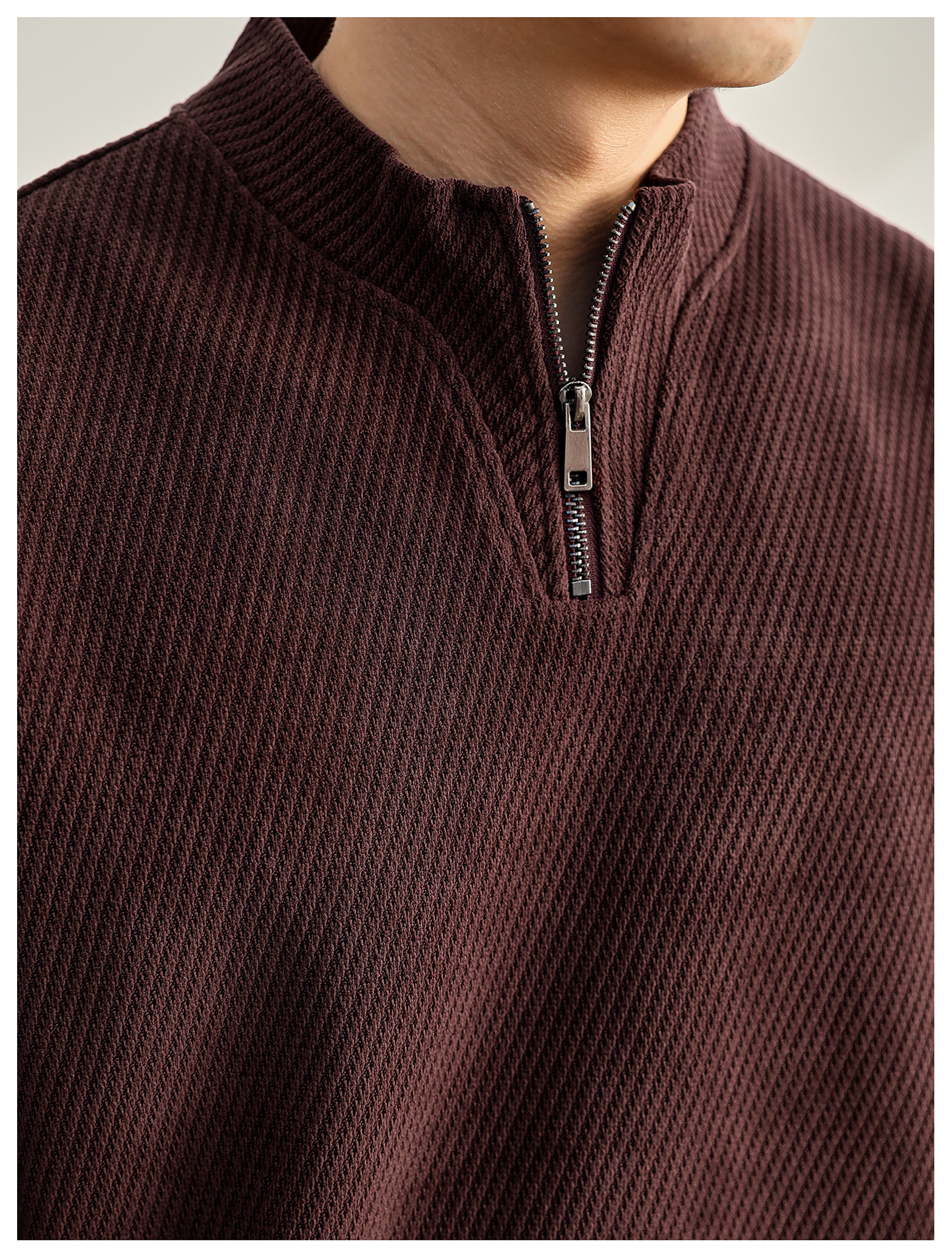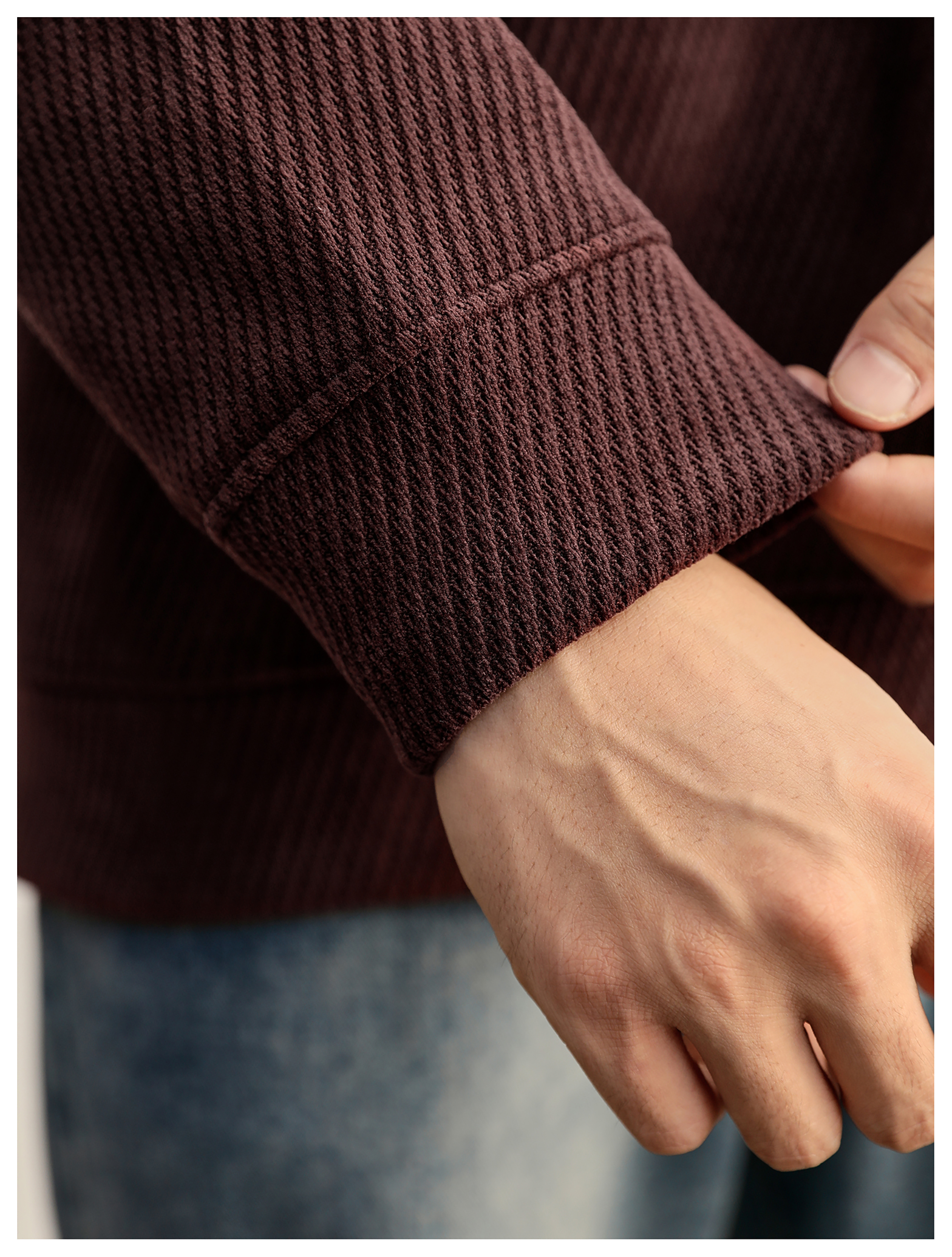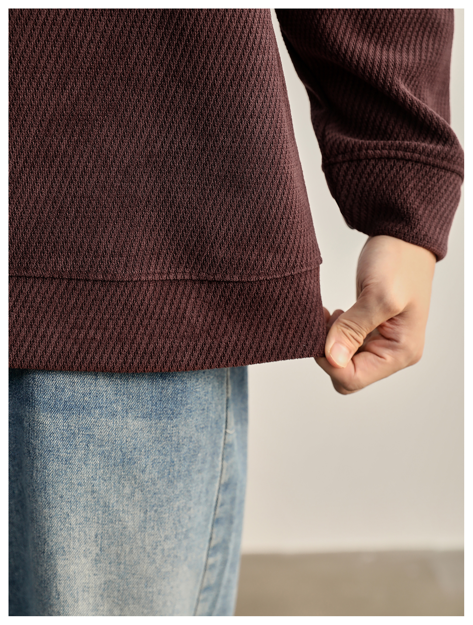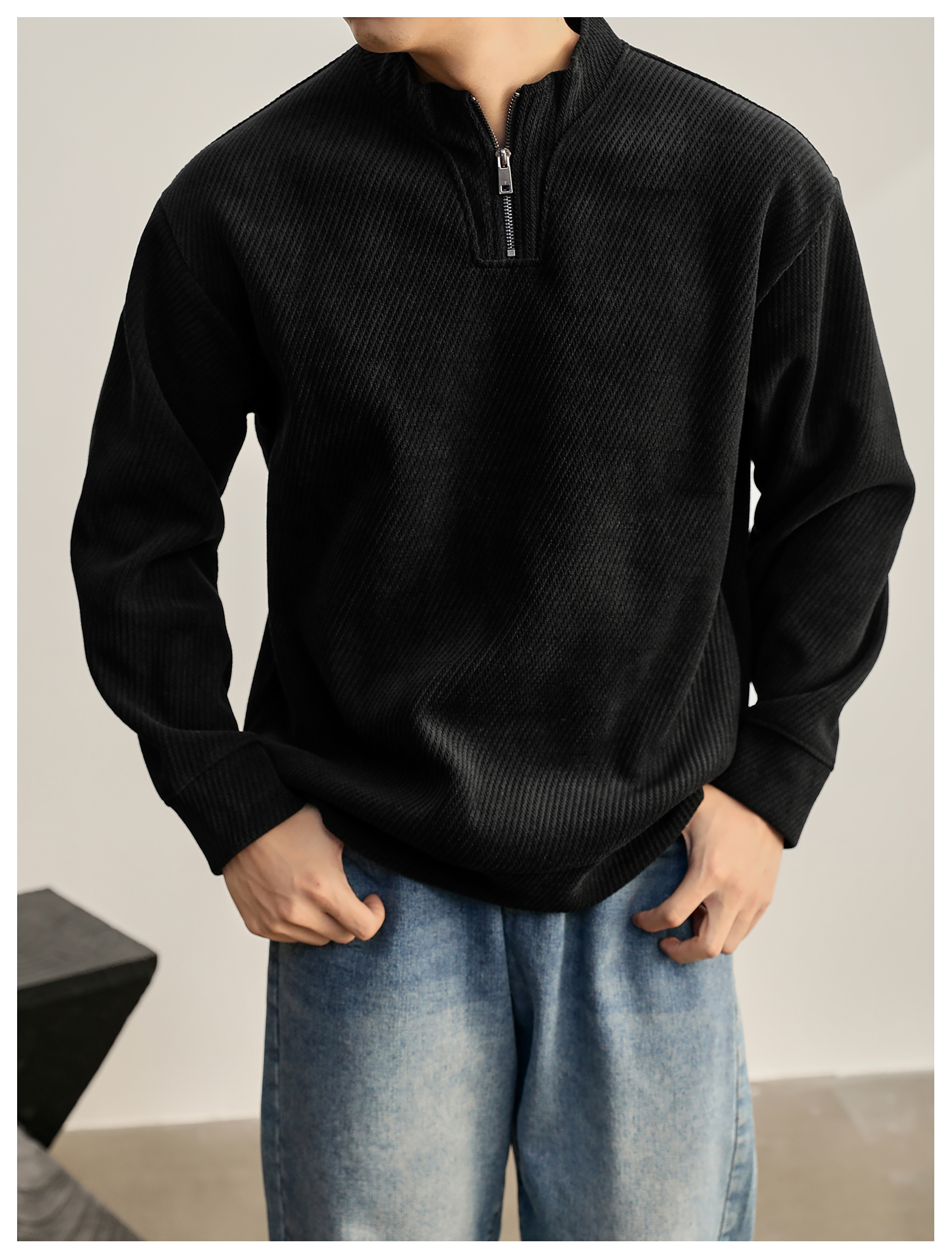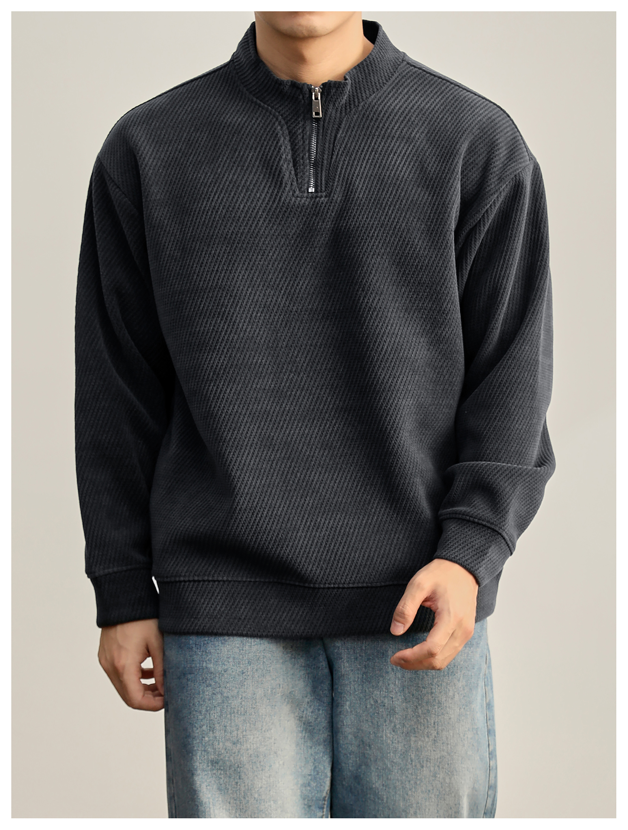 LUUD 復古老錢風男士棗紅色斜紋立領衛衣重磅550g半拉鍊長袖上衣