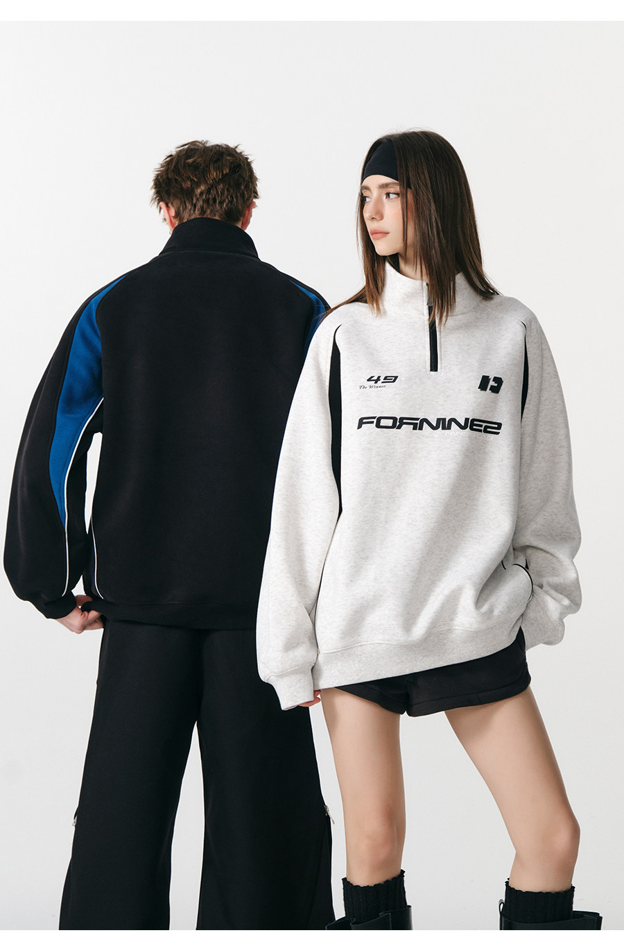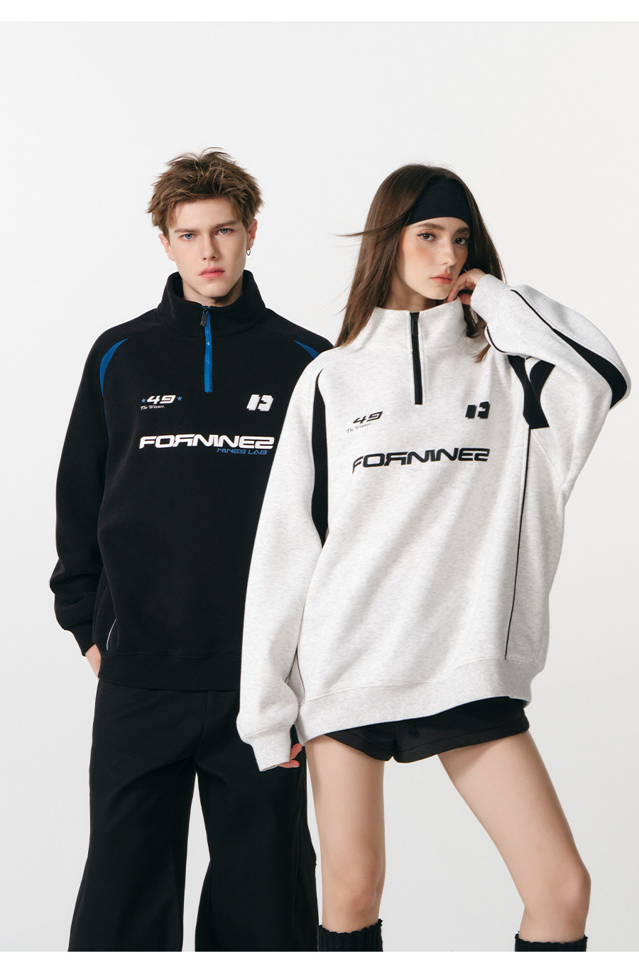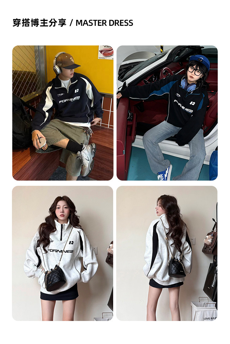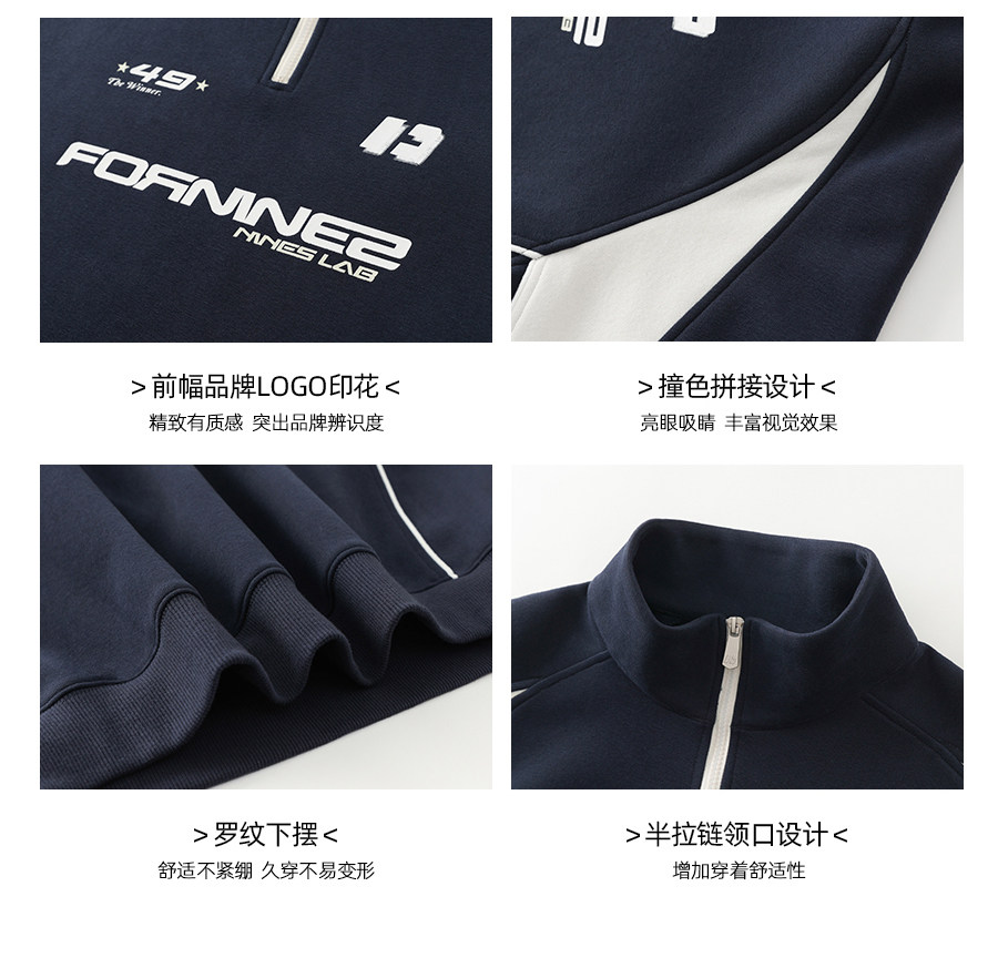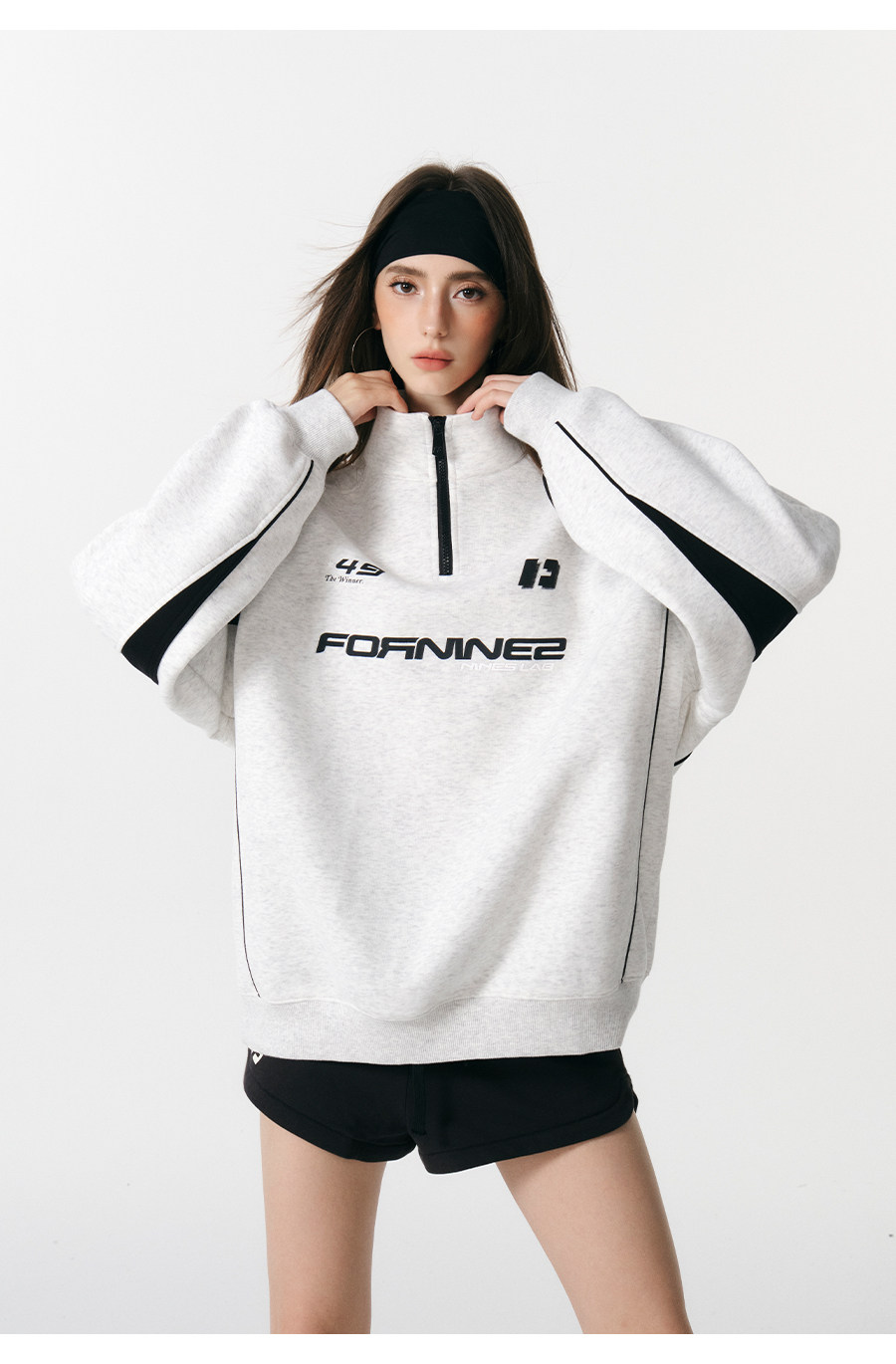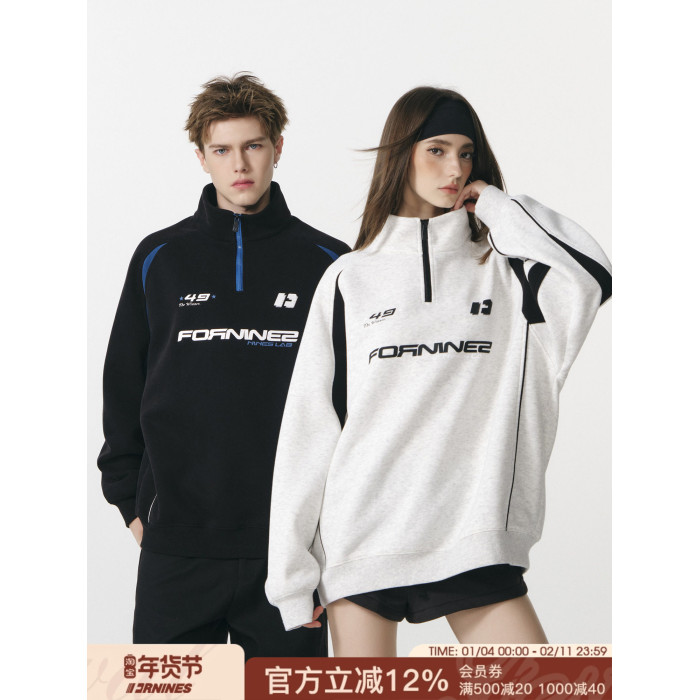 FORNINES半拉鍊立領衛衣男生潮牌春秋重磅上衣寬鬆休閒美式外套女