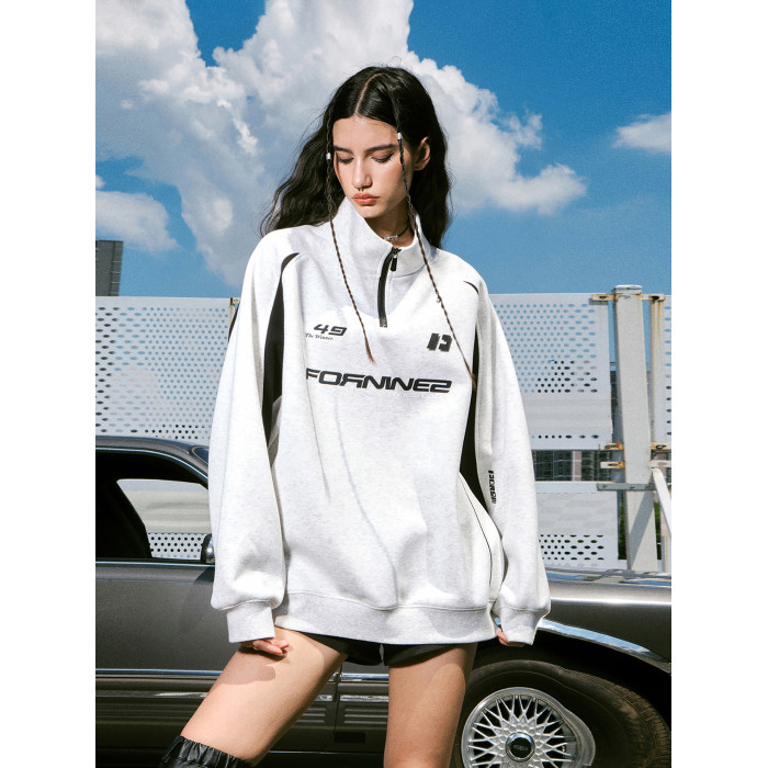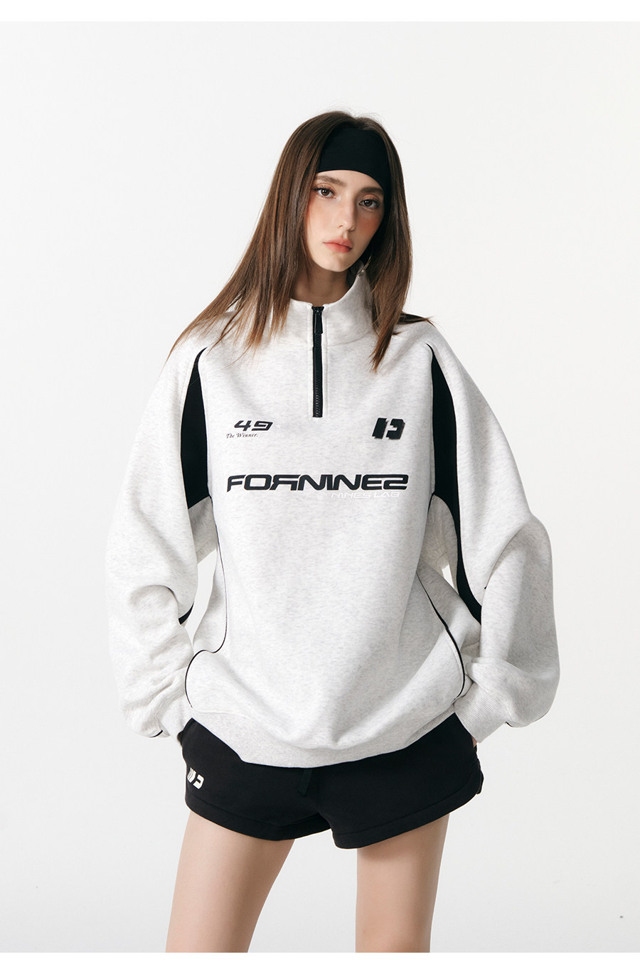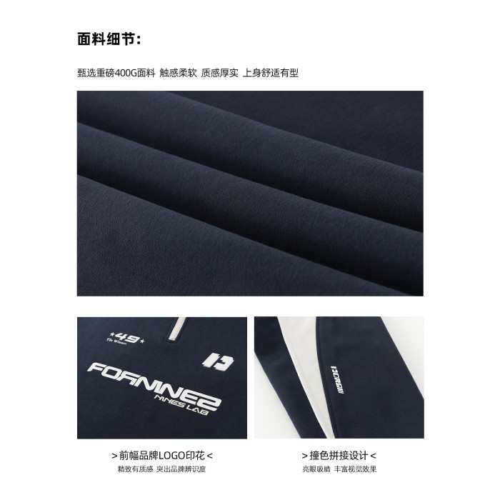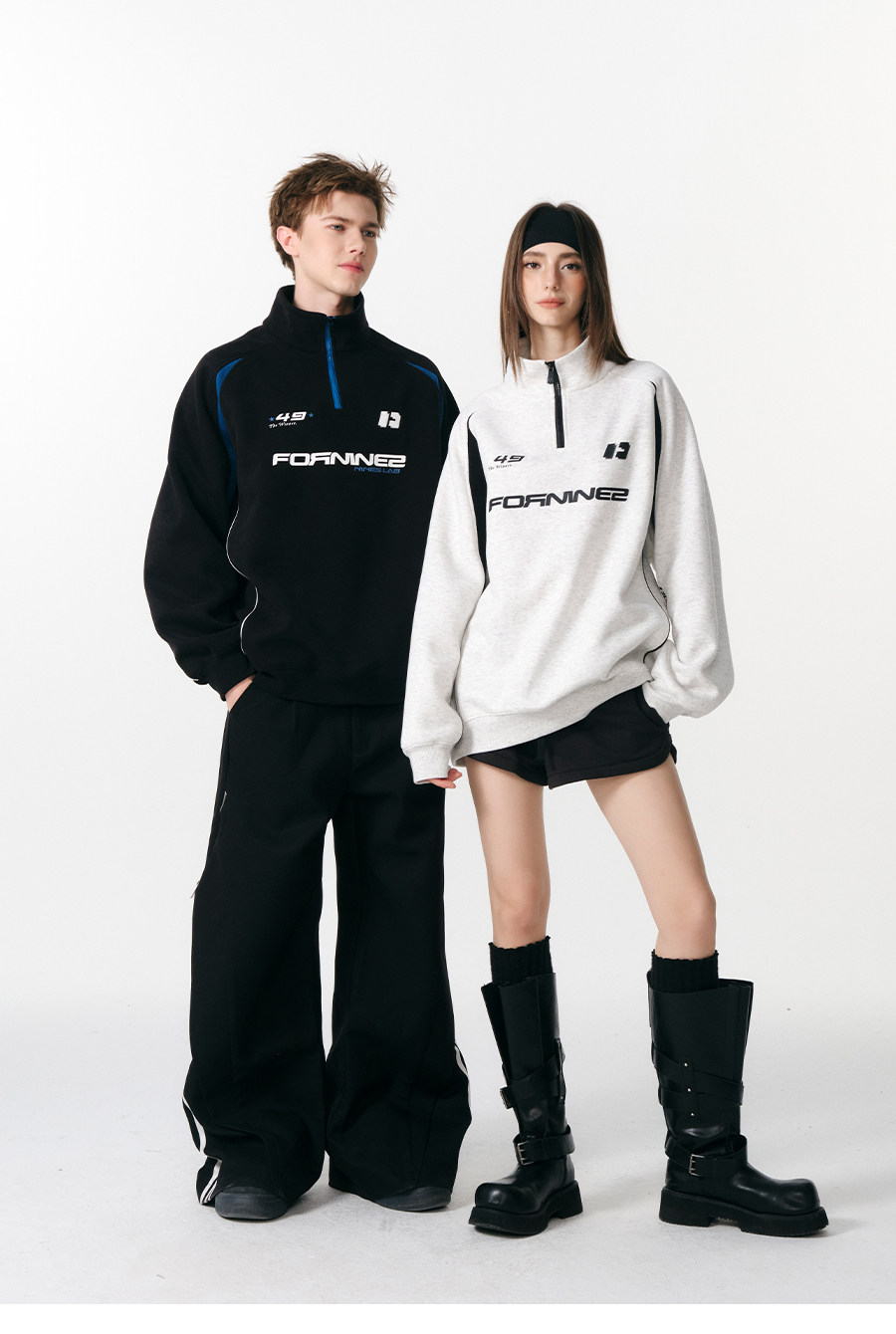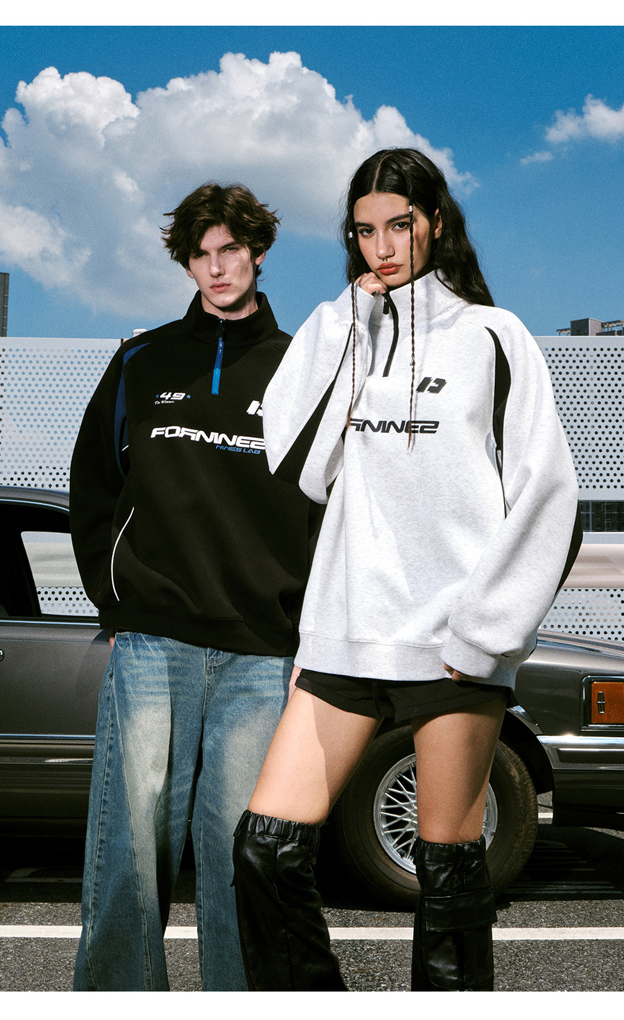FORNINES半拉鍊立領衛衣男生潮牌春秋重磅上衣寬鬆休閒美式外套女