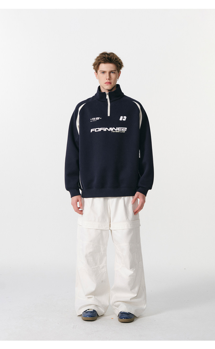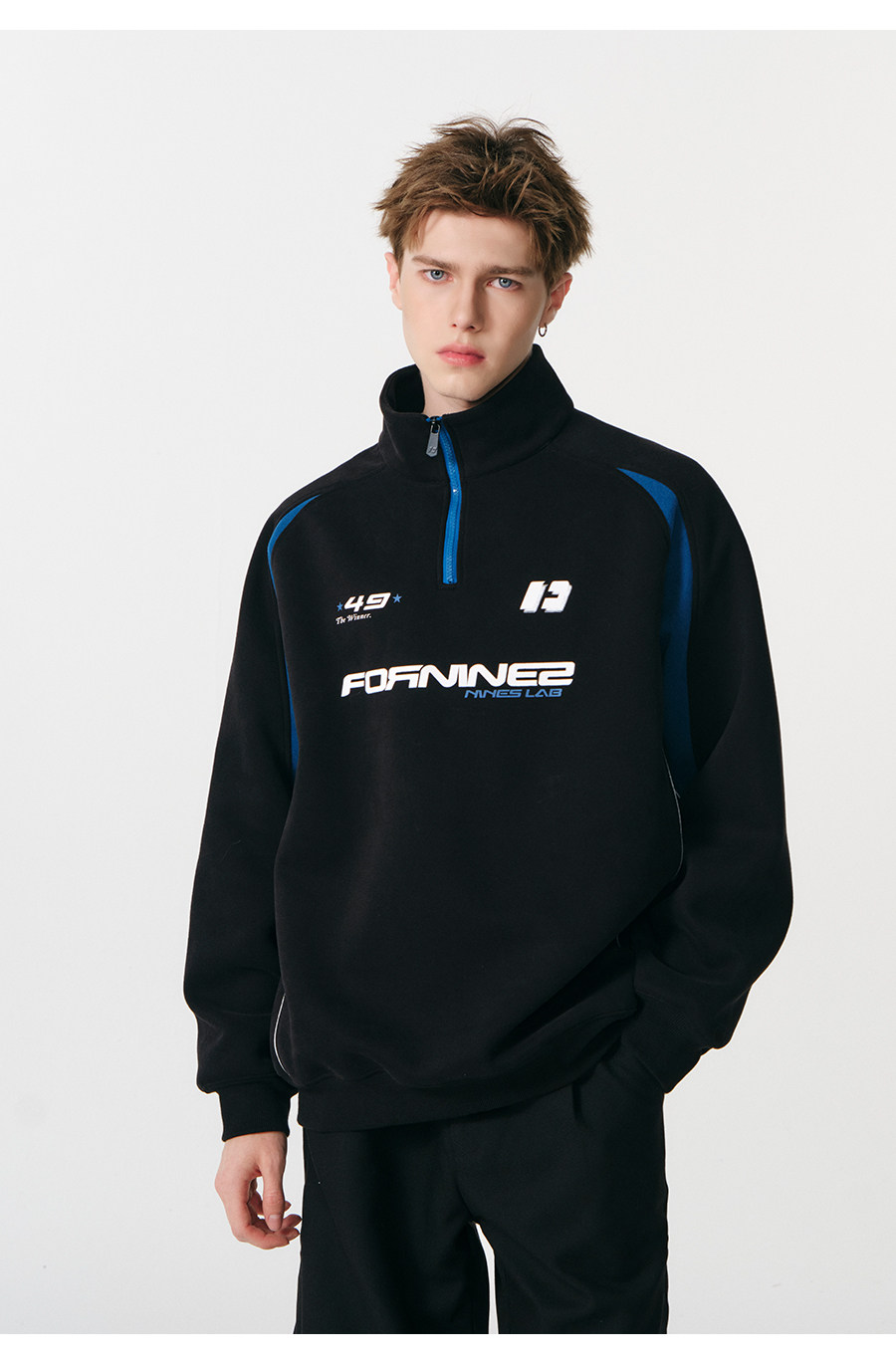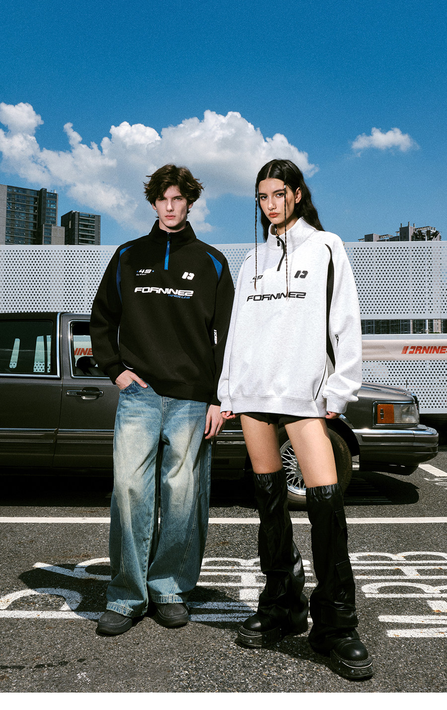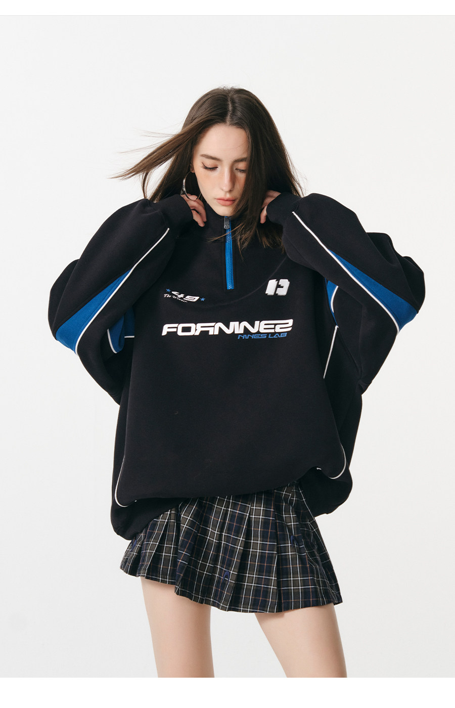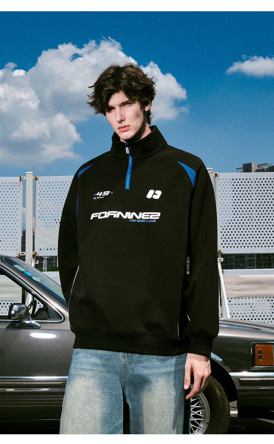 FORNINES半拉鍊立領衛衣男生潮牌春秋重磅上衣寬鬆休閒美式外套女
