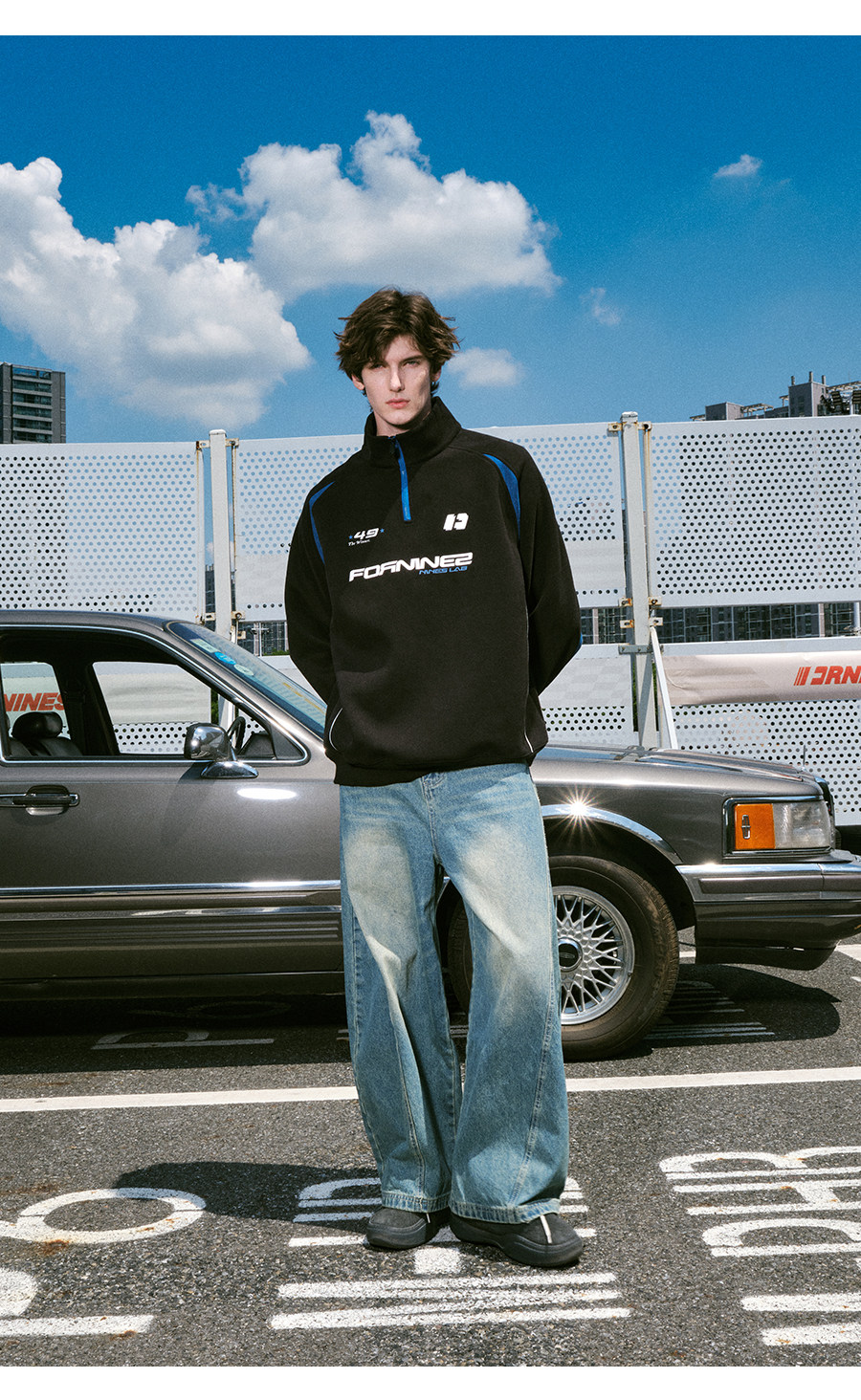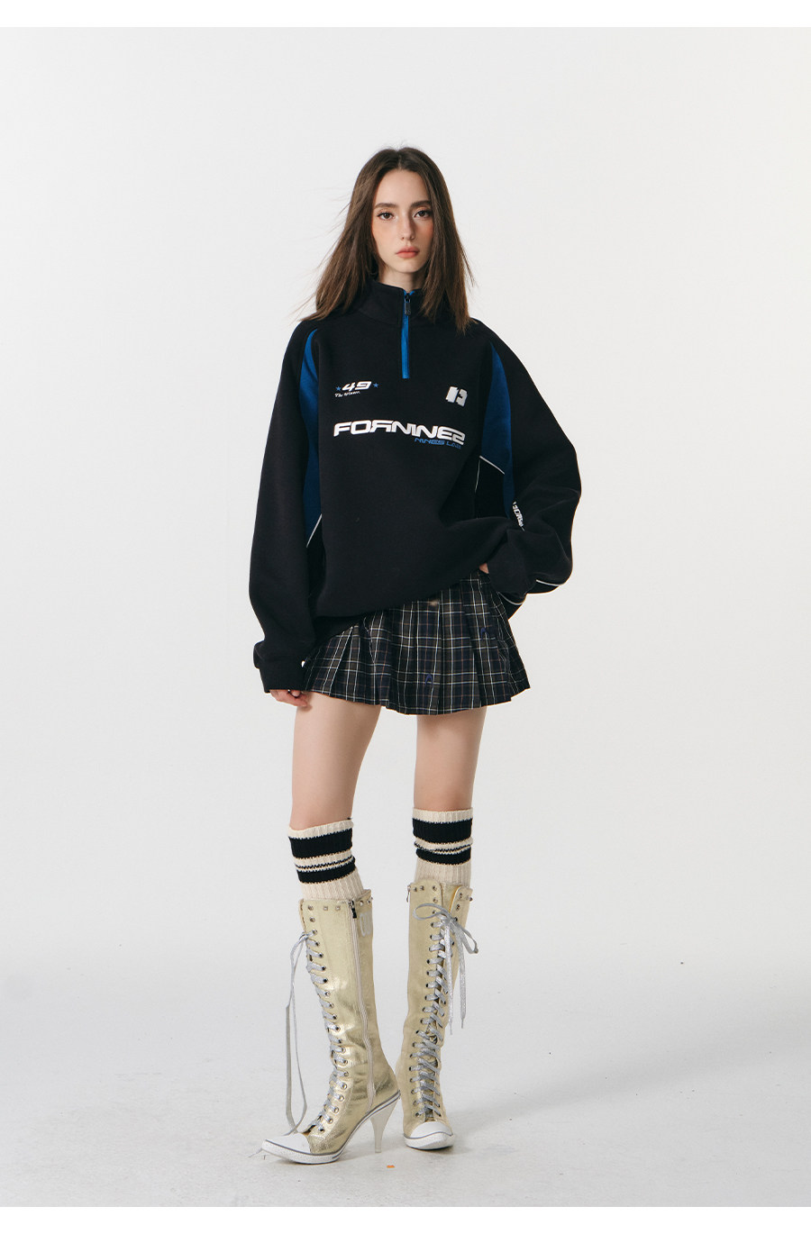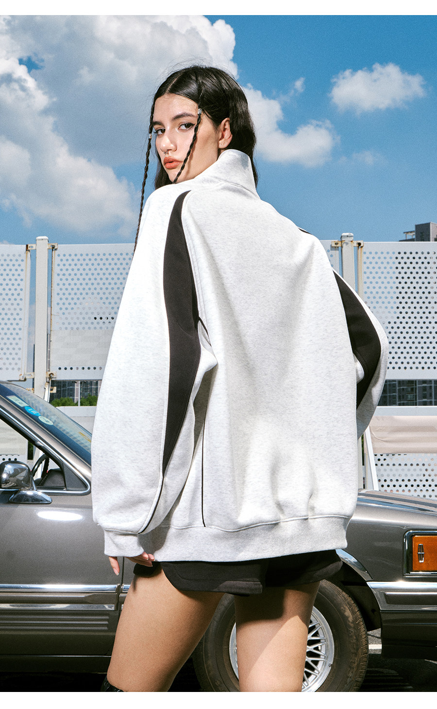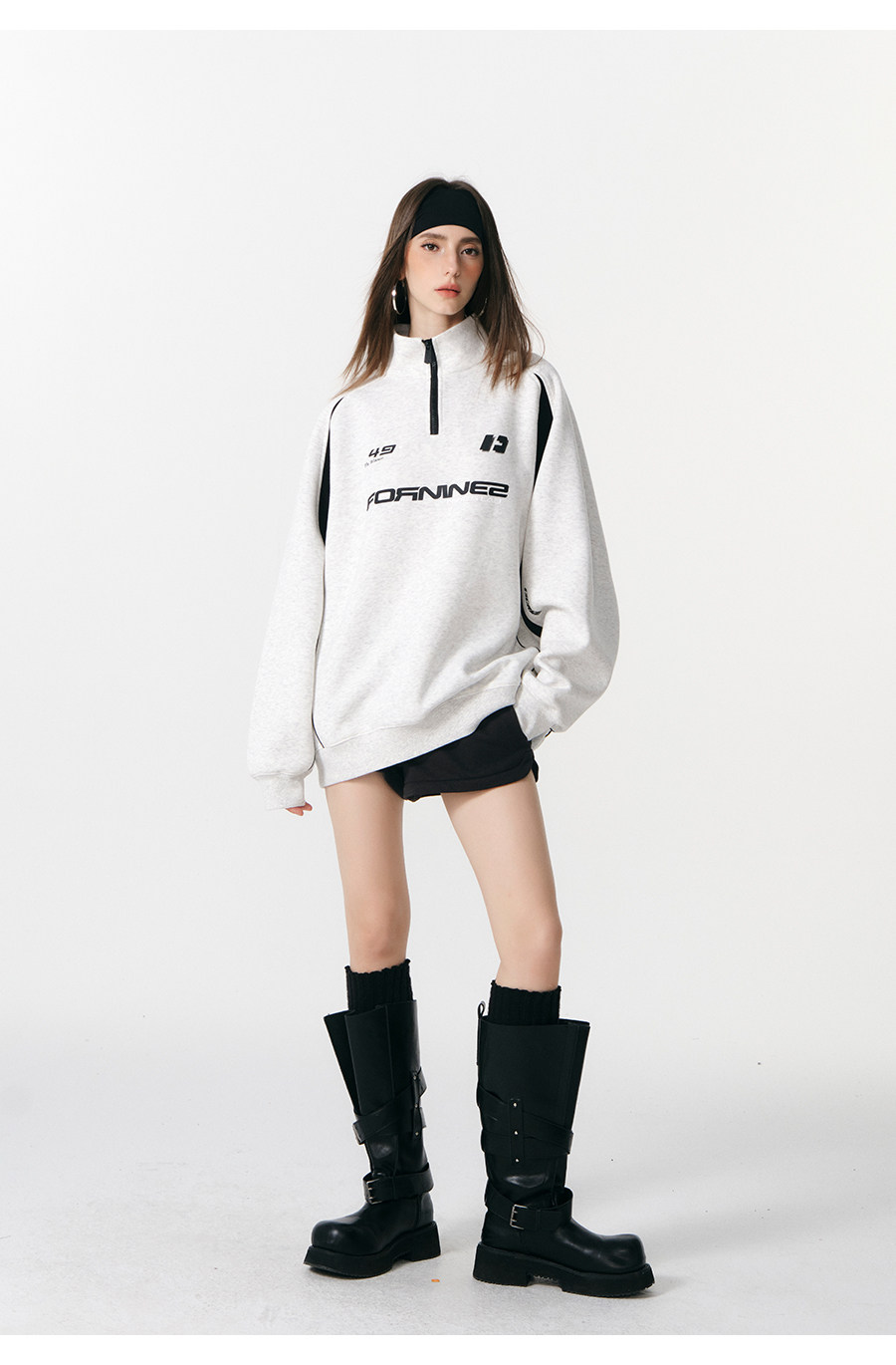 FORNINES半拉鍊立領衛衣男生潮牌春秋重磅上衣寬鬆休閒美式外套女