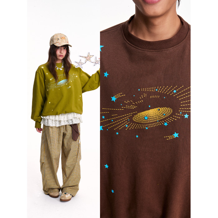 江南先生NewJNXS恒溫暖皮雙層絨感粗針星星綉花衛衣秋季寬松上衣