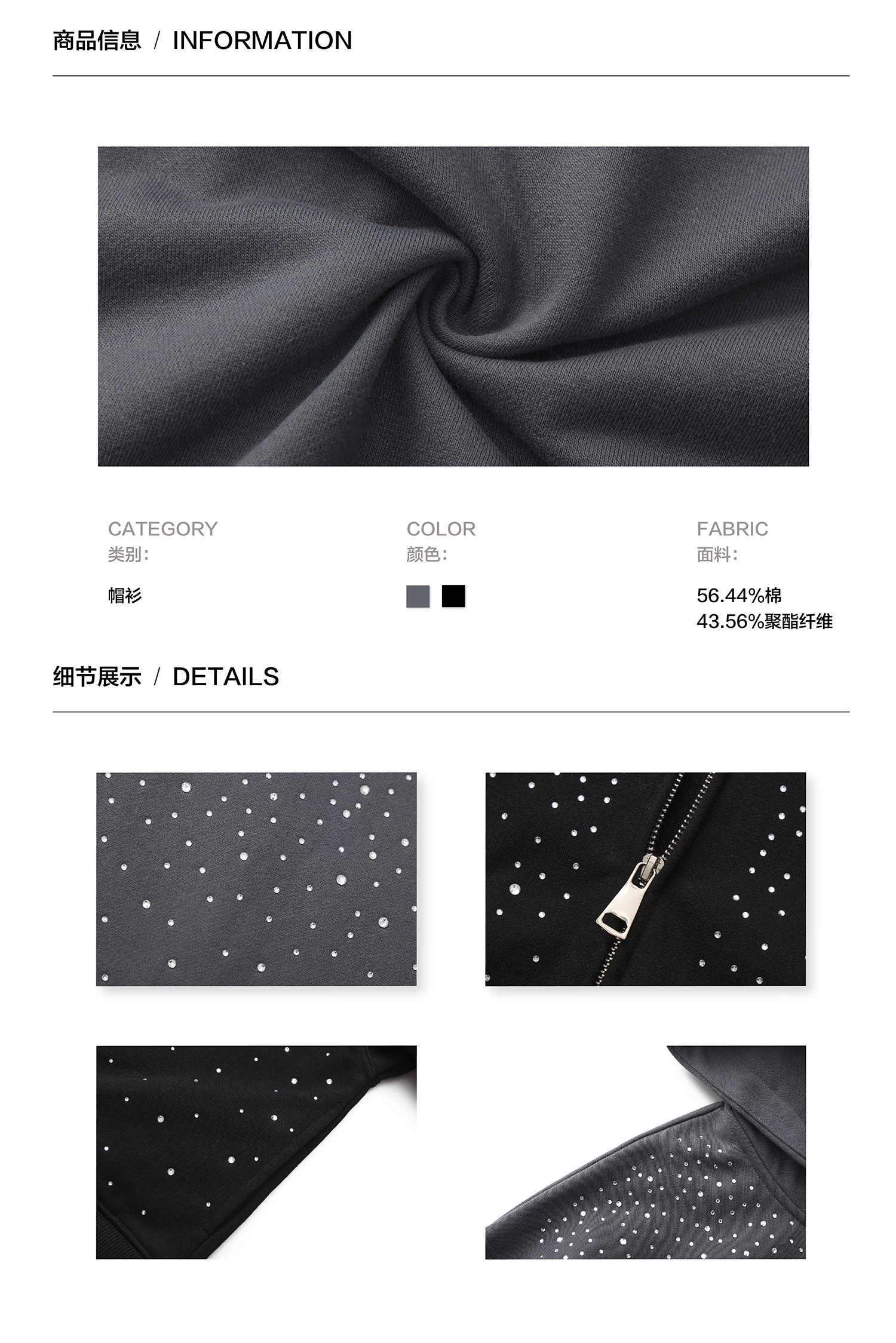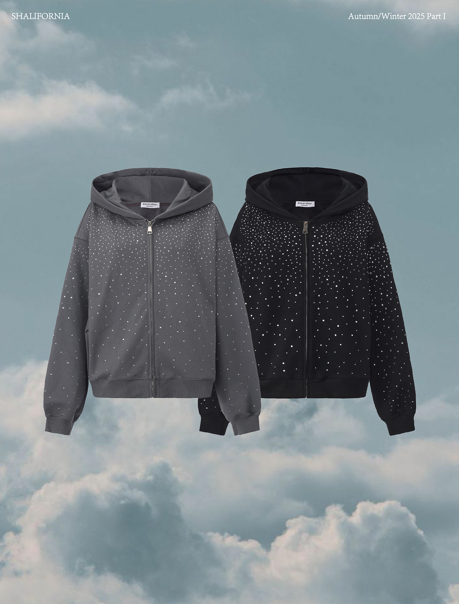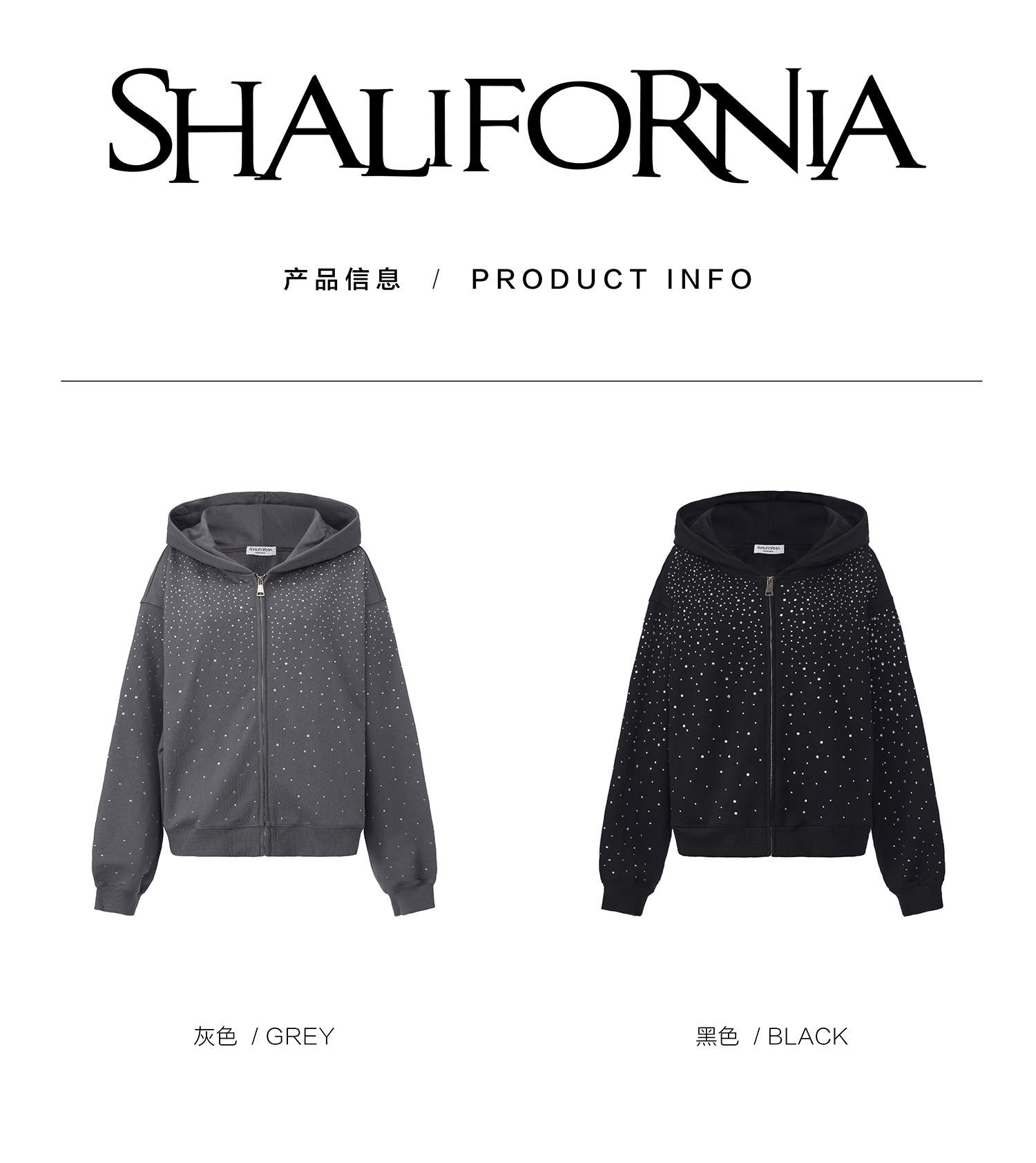 SHALIFORNIA 滿天星帽衫亮閃寬松拉鍊外套百搭星空高級感美式水鑽